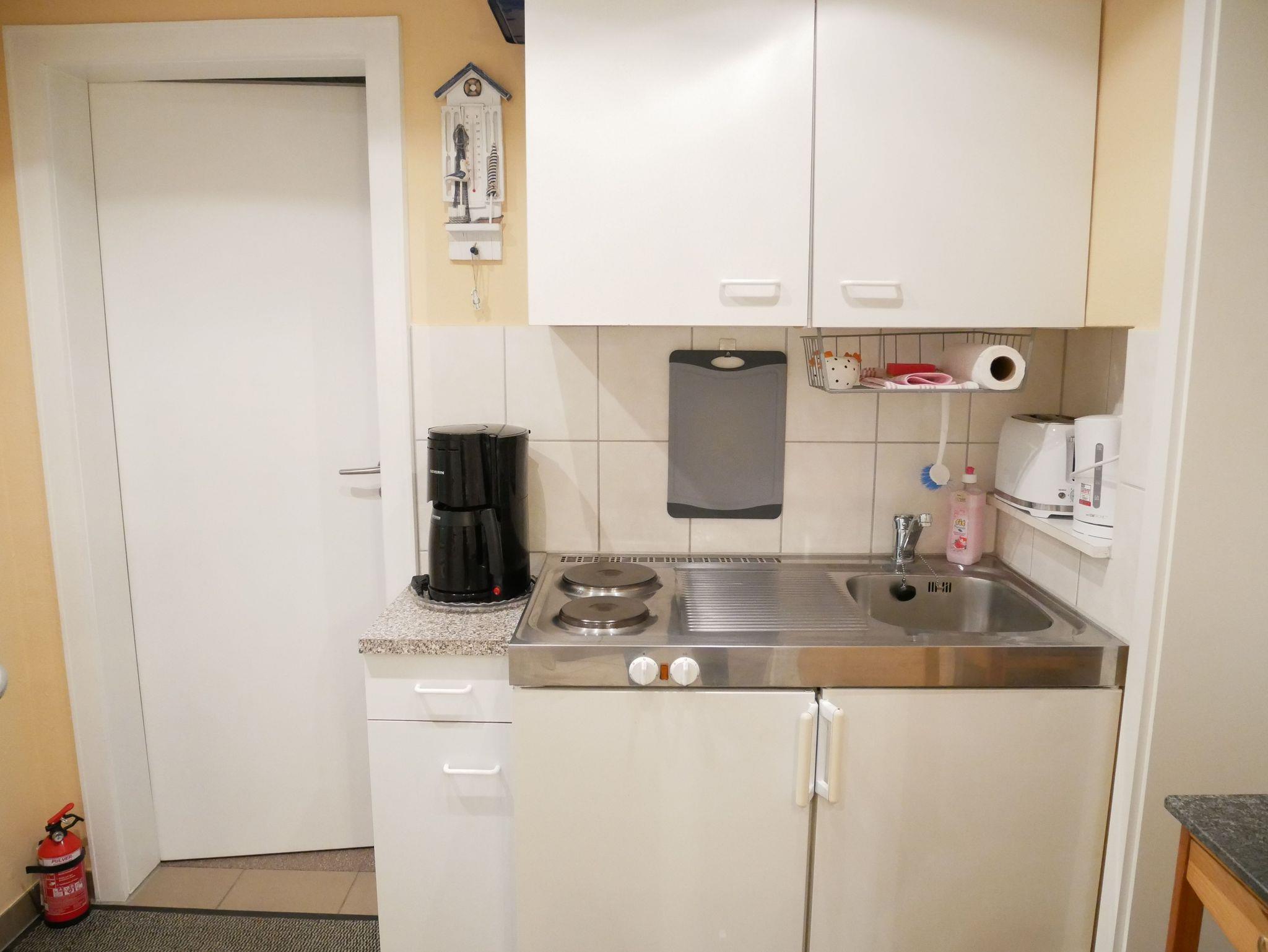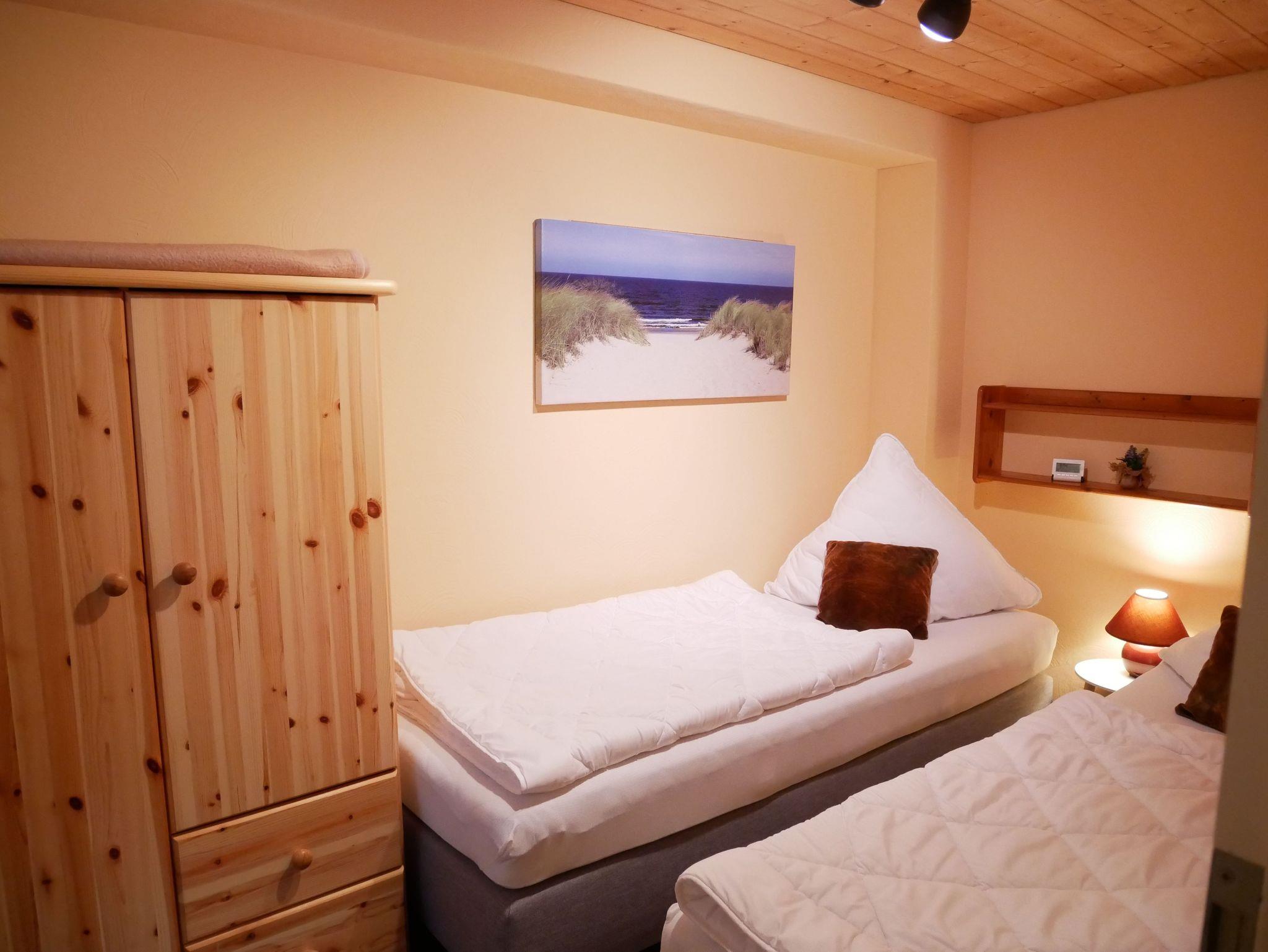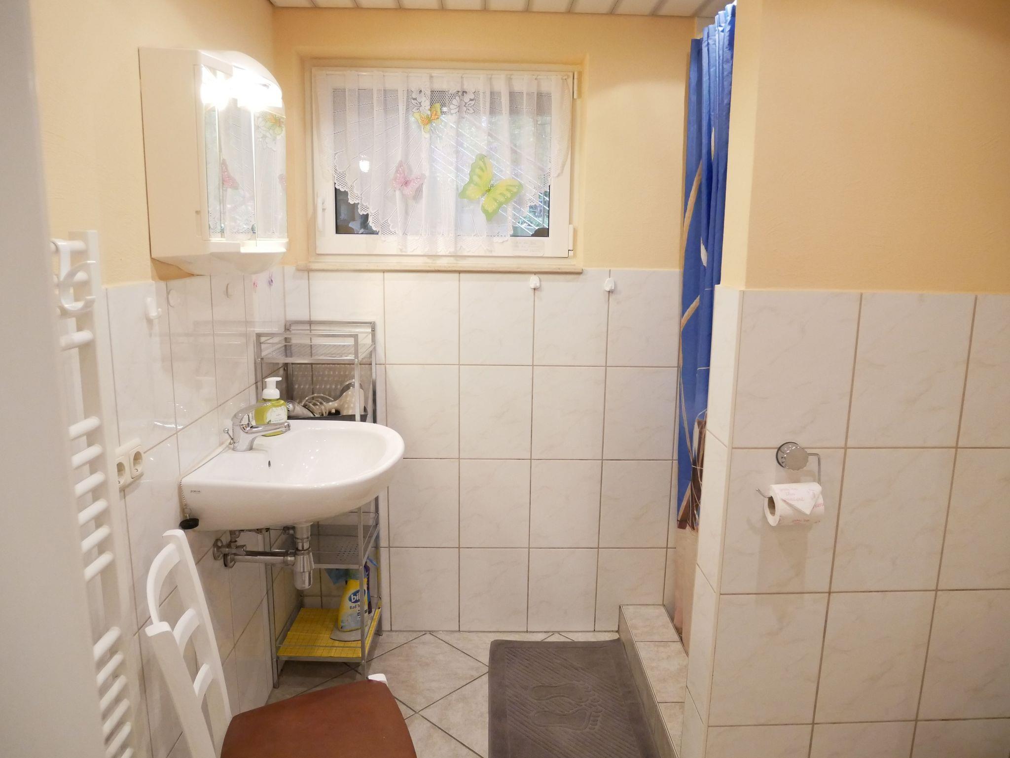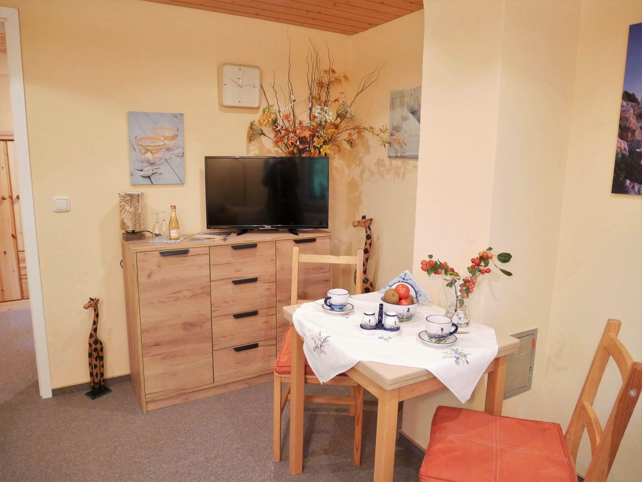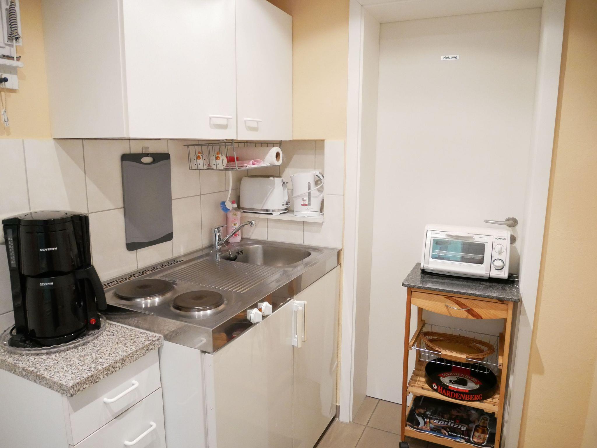 Die gemütliche und modern eingerichtete Ferienwohnung befindet sich im Erdgeschoss. Sie verfügt über ein Schlafzimmer mit 2 getrennten Boxspringbetten und einem Kleiderschrank. Im Wohnzimmer gibt es eine Couch (ausziehbar 140 x 200) mit Tisch, TV, Radio mit CD-Player und einen Essplatz mit 2 Stühlen. Im Dielenbereich befindet sich ein Pantry-Küche mit 2 Platten Herd und Kühlschrank mit Gefrierfach, sowie ein Minibackofen. Ein großes Tageslichtbad mit Dusche/WC und Fön. Eine Sitzecke im Garten, neben der Ferienwohnung lädt zum Verweilen ein. Ein Parkplatz steht kostenfrei auf dem Grundstück zur Verfügung. Nebenkosten inklusive. Bettwäsche kann mitgebracht werden oder gegen Gebühr dazugebucht werden. Bei Anreise liegt eine Erstausstattung Seife, Toilettenpapier, Spülmittel und ein Geschirrhandtuch für Sie bereit.