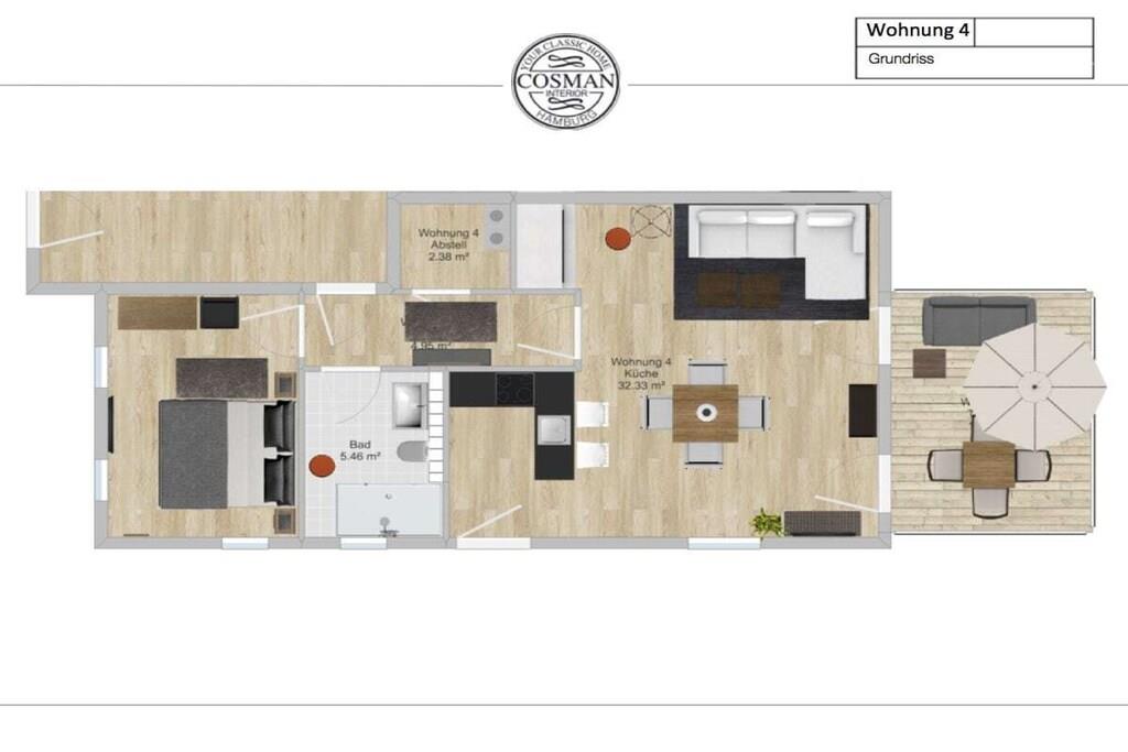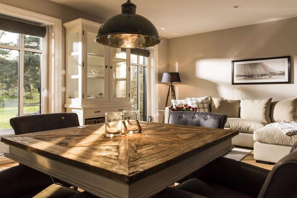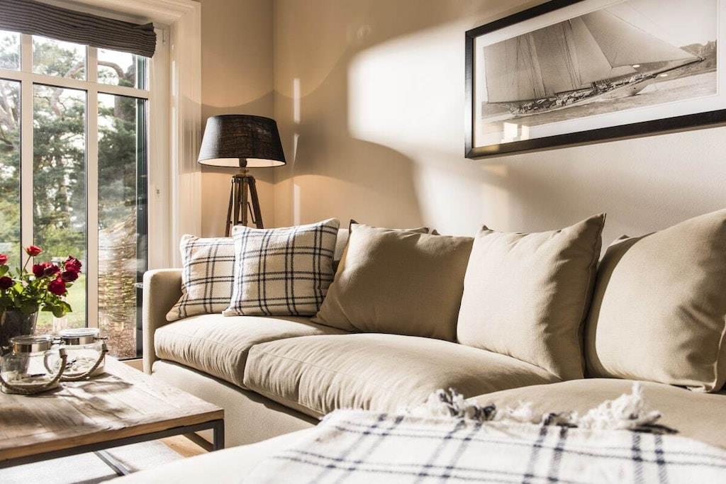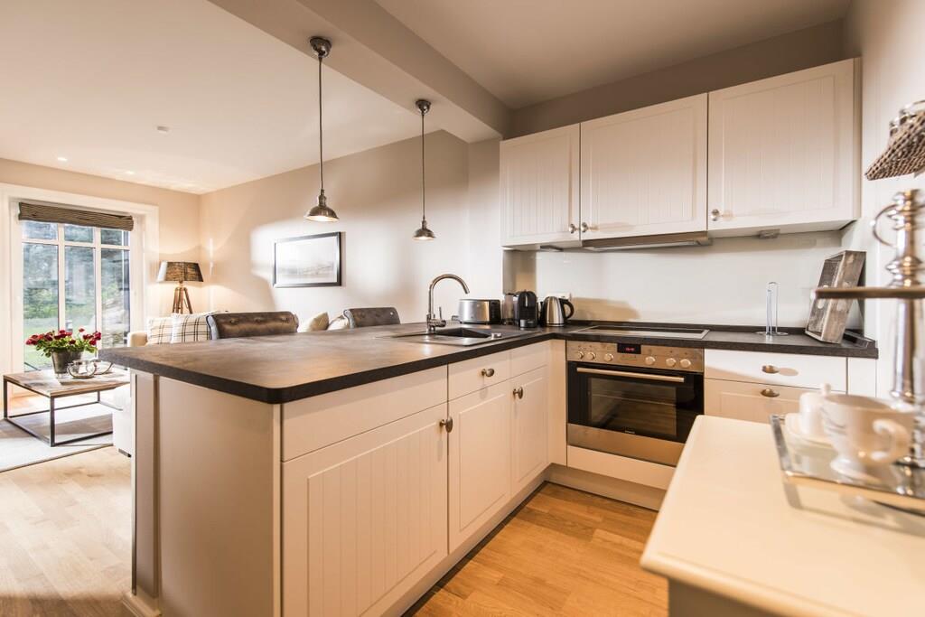 Kamphof-ferielejligheden er stilfuldt indrettet med terrasse og delvis udsigt til vandet og byder på plads til 2 personer plus yderligere 2 personer i opholdsstuen. Nu tildelt 5 stjerner af DTV (for 2 personer)! Hele opholdsområdet er indrettet med møbler af høj kvalitet, planlagt med sans for detaljer, hvilket skaber en luksuriøs, men alligevel hjemlig feriestemning, der ikke lader noget tilbage at ønske. En hyggelig pejs lover romantiske aftener, badeværelset er en wellness-oase. Særlige funktioner: Nyd din ferie og slap af! Vi sørger for rengøringen. En daglig service sørger for renligheden i din ferielejlighed