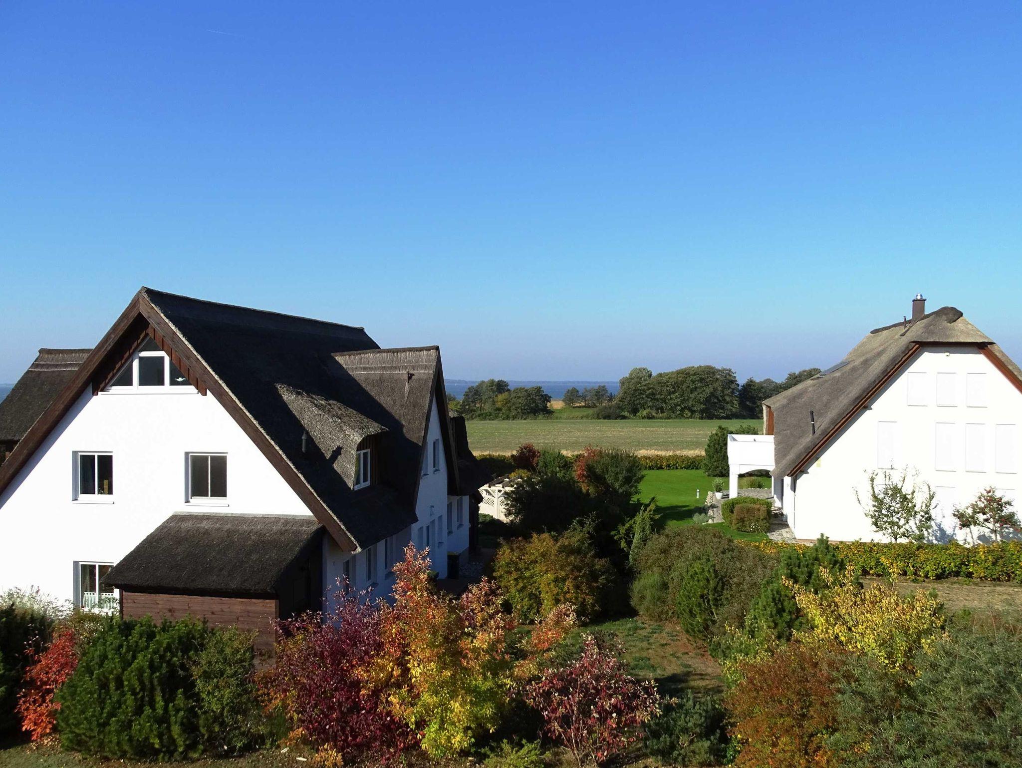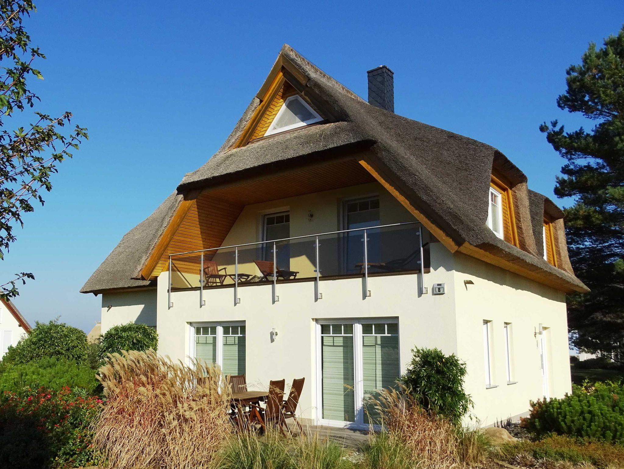 Herzlich Willkommen in unserer hochwertigen, komfortabel eingerichteten Ferienwohnung in einem neu erbauten reetgedecken Ferienhaus mit zwei Wohnungen in traumhafter, guter Wohnlage mit Blick auf das Achterwasser im Seebad Loddin. Die Wohnung ist für maximal vier Gäste geeignet. Entspannen Sie sich auf einer der beiden sonnigen Terrasse oder auf dem Balkon im ersten Stock mit herrlichem Blick in Richtung Achterwasser.
