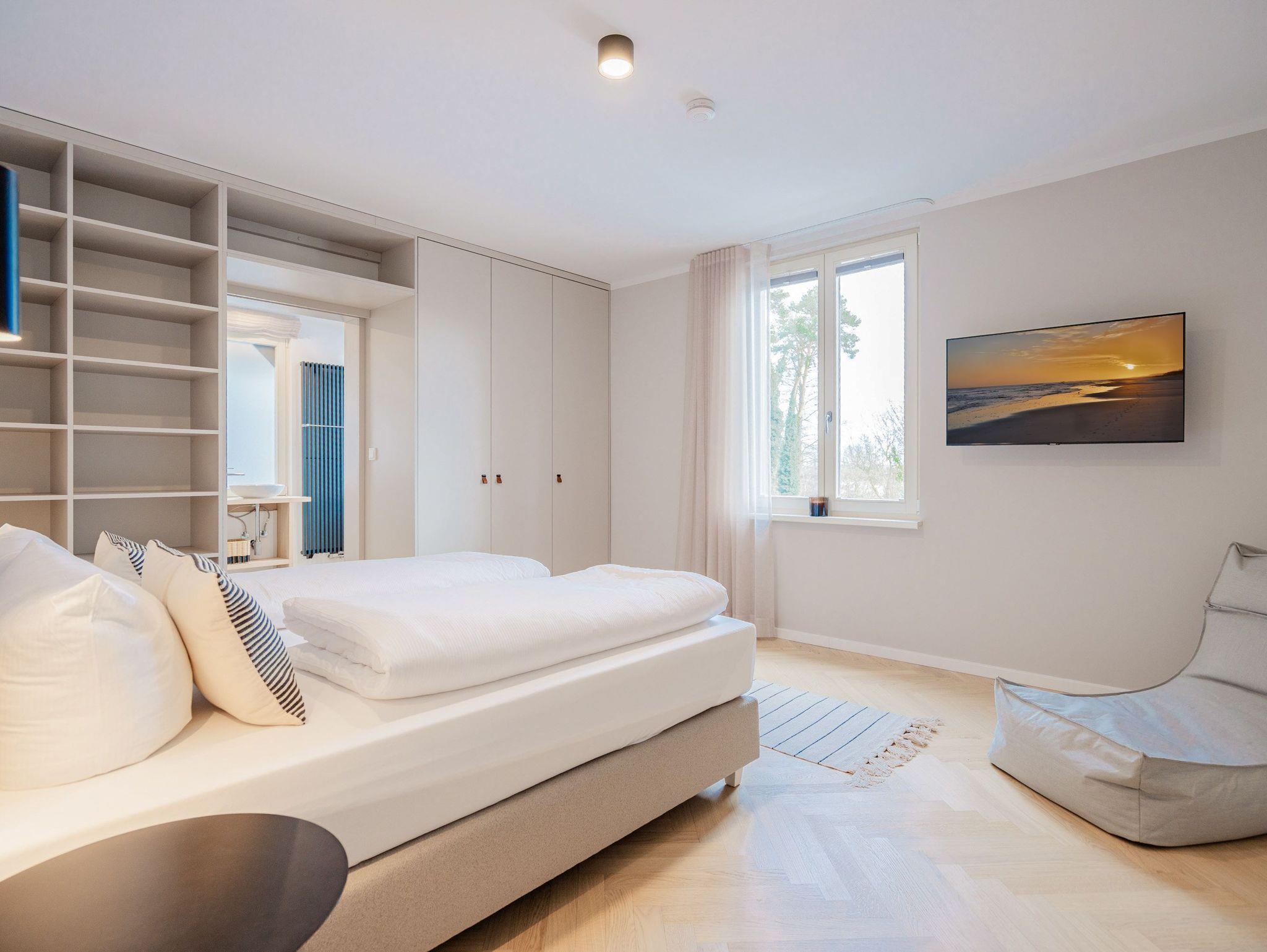 Das großzügige Ferienhaus Beatus ille im Seebad Kölpinsee bietet mit ca. 300?m² Platz für bis zu 14 Personen und zwei Kleinkinder. Die liebevoll sanierte Villa mit 7 Schlafzimmern, 6 Bädern und eigenem Wellnessbereich mit Sauna vereint stilvoll den Charme vergangener Zeiten mit hochwertiger, moderner Ausstattung. Die voll ausgestattete Küche, ein großer Essbereich, Kaminofen sowie eine sonnige Terrasse mit Platz für alle Gäste machen das Haus zum perfekten Ort für Familienurlaube oder entspannte Auszeiten mit Freunden. Strand, Wald und Natur sind nur wenige Schritte entfernt ? ein besonderes Feriendomizil für alle, die Ruhe, Stil und Gemeinschaft schätzen.