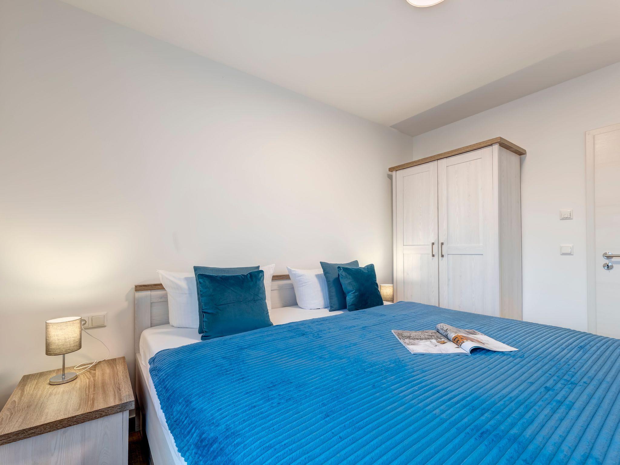 Die Ferienwohnung 1(64 m²) im Erdgeschoss verfügt über eine großzügige Terrasse mit Südwest-Ausrichtung, ideal für sonnige Nachmittage und gemütliche Abende. Die angrenzende offene Küche ist voll ausgestattet und lädt zum gemeinsamen Kochen ein. Zwei komfortable Schlafzimmer bieten Platz für bis zu vier Personen, auf Wunsch kann zusätzlich ein Babybett bereitgestellt werden.
