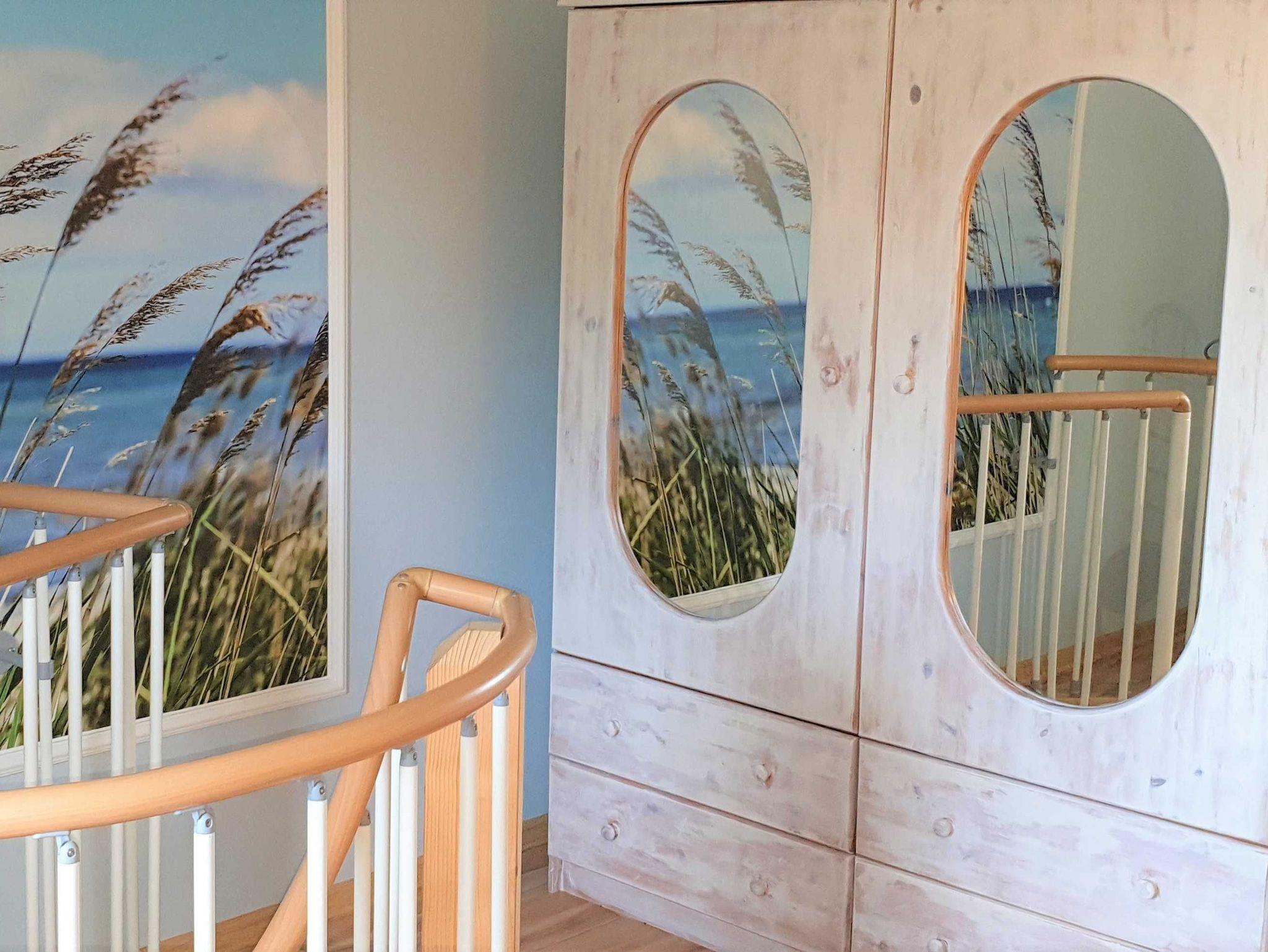 Das zweite Schlafzimmer (mit Doppelbett) ist über eine Wendeltreppe zu erreichen.