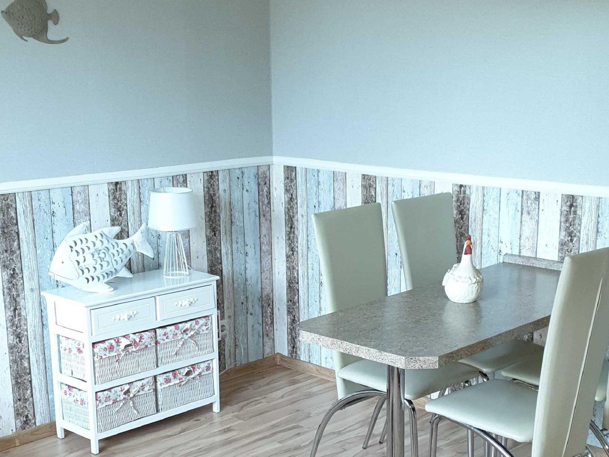 Die Ferienwohnung befindet sich in einer Doppelhaushälfte (letzte Renovierung 2024) in ruhiger Waldrandlage am Ortsrand des Seebades Loddin. Über ihre eigene Terrasse erreichen sie den Eingang ihrer Ferienwohnung. Im Erdgeschoss gibt es einen Wohn/Essbereich mit einer gut ausgestatteten Küche, ein Bad mit bodengleicher Dusche und mit WC. Ein kleines Schlafzimmer mit einem Etagenbett für 2 Personen befindet sich ebenfalls imErdgeschoss. Das zweite Schlafzimmer mit Doppelbett erreichen sie über eine Wendeltreppe. Unsere Ferienwohnung ist maritim und gemütlich ausgestattet. Haustiere sind im eigenen Körbchen herzlich willkommen.