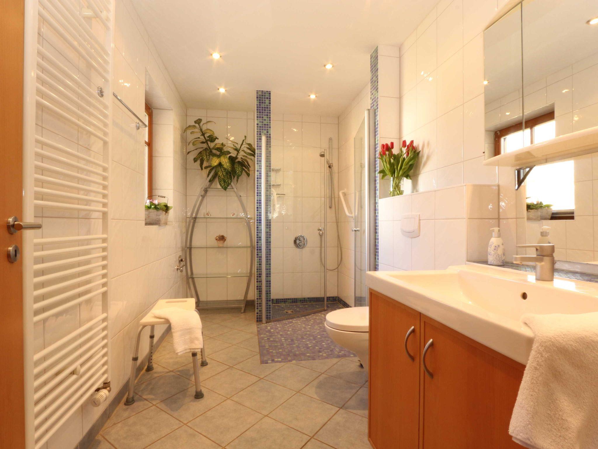 • Die Wohnung besteht aus 2 Zimmern (Wohn-Esszimmer,1 Schlafzimmer), Flur und Bad. Sie ist behindertenfreundlich ausgestattet. Die Zimmertüren haben ein Breite von 90 cm. Das Badezimmer, hat Dusche mit Bodenablauf, WC, Waschtisch, Handtuchtrocknerheizkörper und ist mit dem Rollstuhl befahrbar.