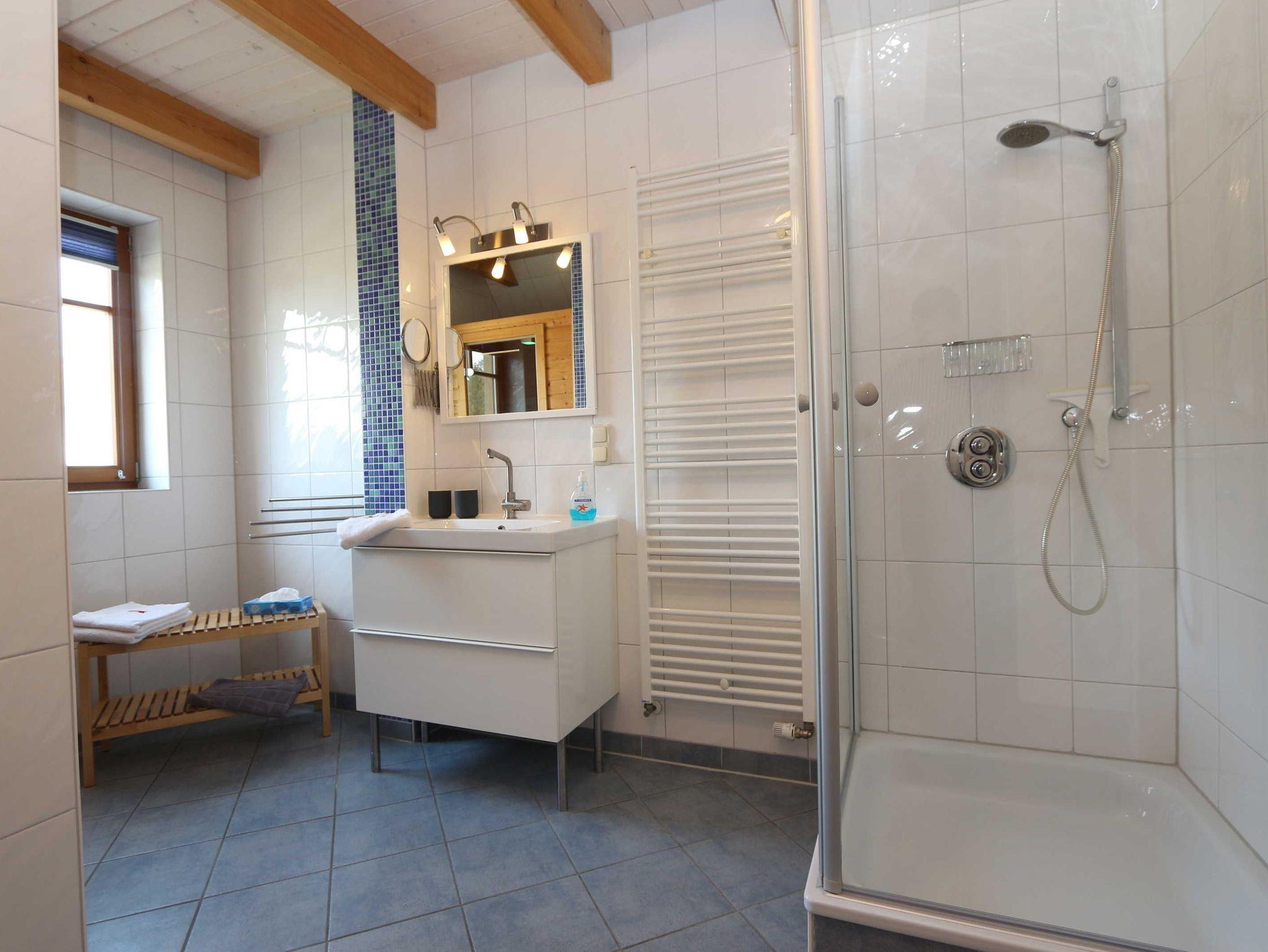 - das Bad verfügt über ein Waschbeckecken, ein WC, ein Handtuchtrockenheizkörper, eine Dusche und eine Infrarot-Wärmekabine;