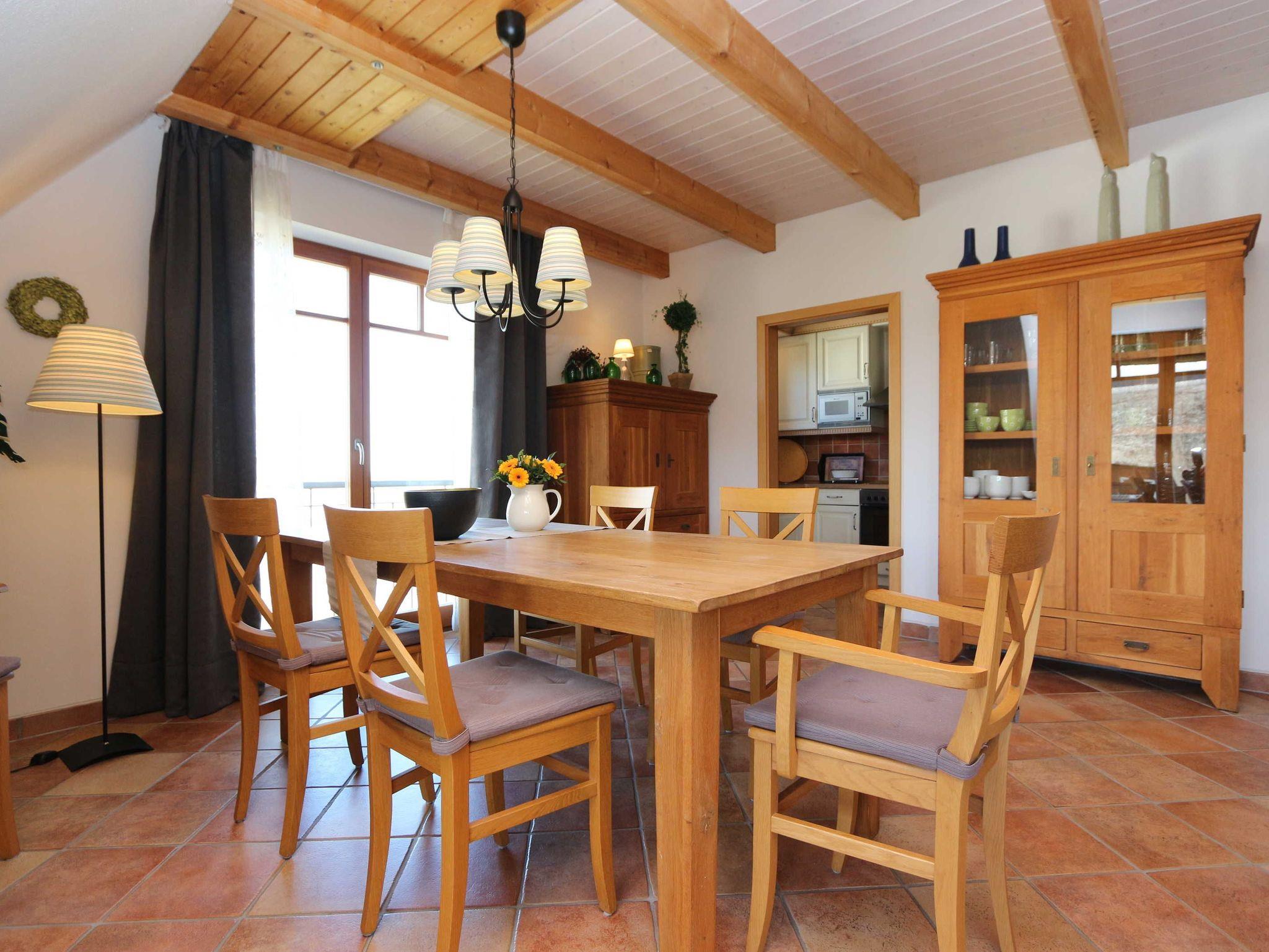 Wir bieten Ihnen hier eine herrliche Ferienwohnung im 1.Obergeschoss für 2 bis 4 Personen. Zur Wohnung gehört 1 Bad inkl. Infrarot-Wärmekabine, 1 Schlafzimmer, 1 Wohnzimmer mit Essecke, 1 Küche inkl. Einbauküche, 1 großer überdachter Balkon und 1 KFZ-Stellplatz.