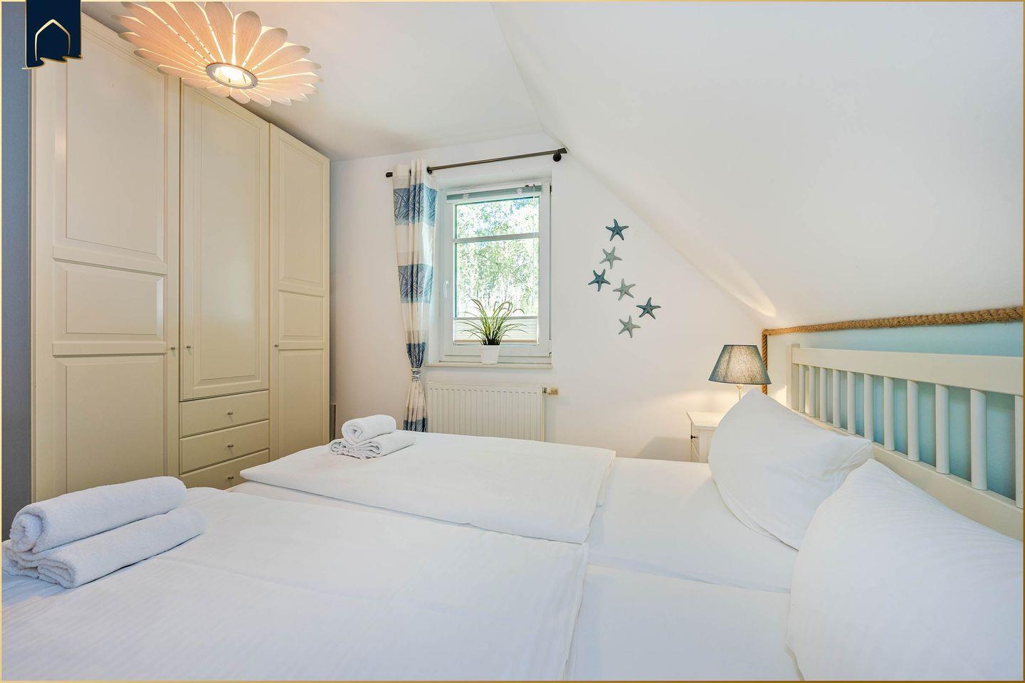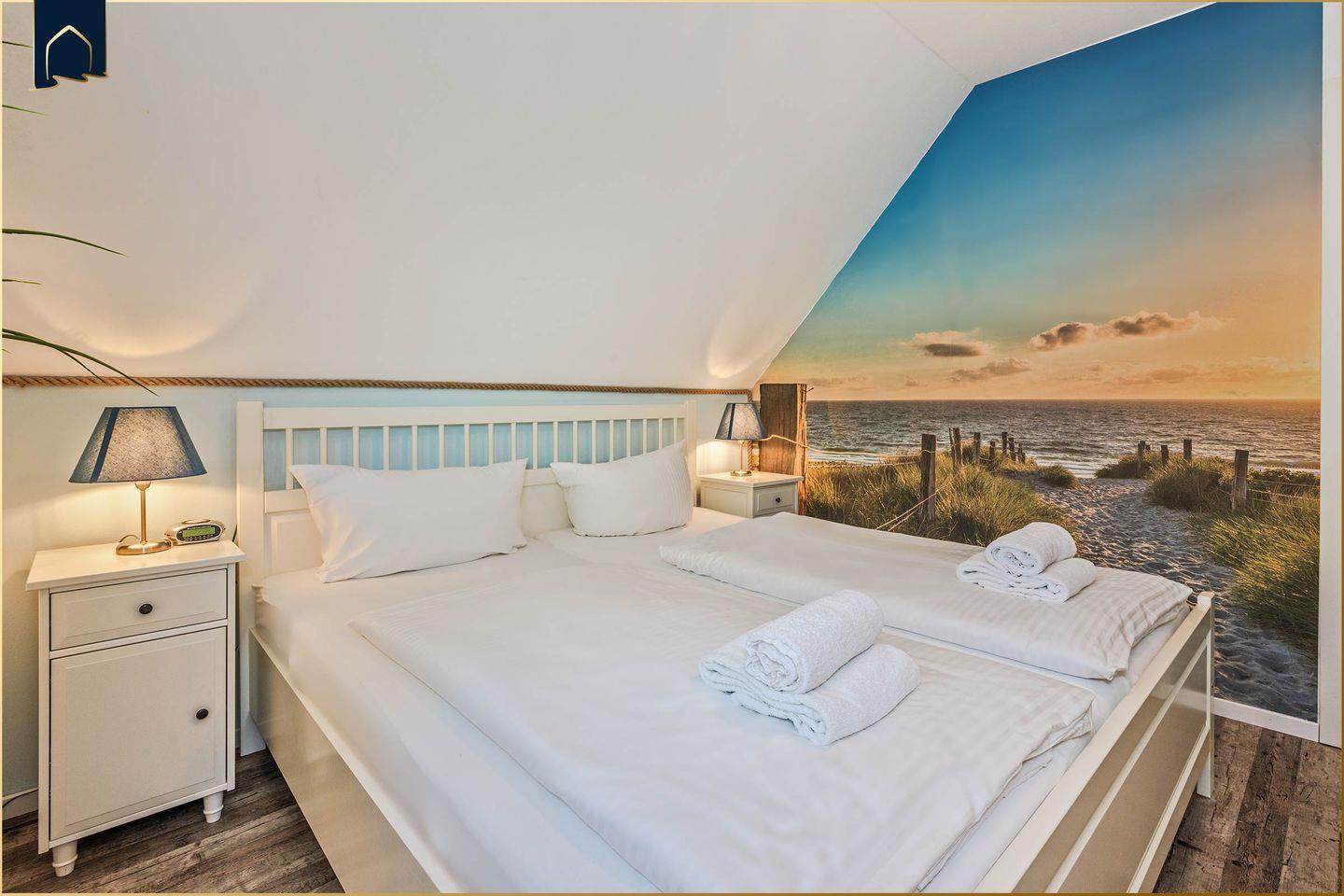 In zwei Schlafzimmern finden bis zu fünf Personen bequem Platz. Das gemütliche Wohnzimmer lädt mit Sofaecke, TV und einer Auswahl an Büchern und Spielen zum Verweilen ein. Die voll ausgestattete Küche – mit Backofen, Herd, Spülmaschine, Mikrowelle, Kaffeemaschine, Wasserkocher und vielem mehr – lässt keine Wünsche offen. Der Essbereich ist freundlich gestaltet, ideal für gemeinsame Mahlzeiten. Im Badezimmer erwartet Sie eine Dusche sowie moderne Sanitärausstattung inkl. Haartrockner und Kosmetikspiegel. Für zusätzlichen Komfort sorgen Waschmaschine, WLAN, Sichtschutz an allen Fenstern, Fliegengitter und Ganzkörperspiegel.