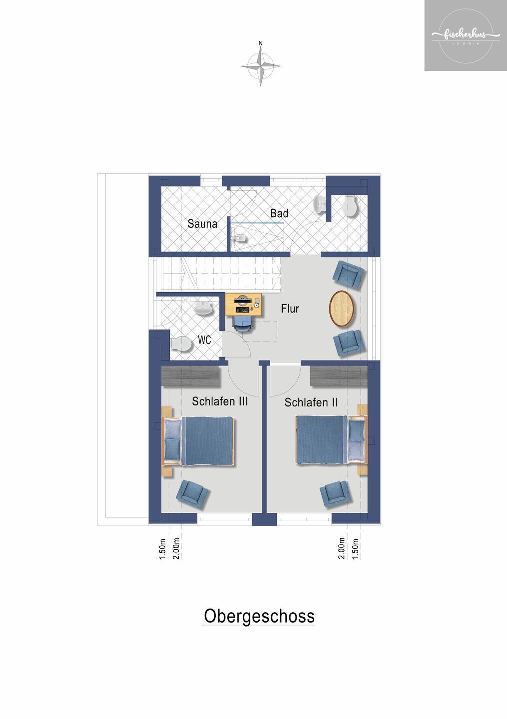 Im Obergeschoss gibt es zwei Schlafzimmer für je 2 Personen mit hochwertigen Doppelbetten, welche für einen angenehmen Schlafkomfort sorgen. Ein internetfähiger Sat-TV ist in jedem der Schlafzimmer vorhanden. Bei Ihrer Anreise sind die Betten natürlich bezogen und die Handtücher (Erstausstattung) liegen für Sie bereit. Außerdem finden Sie ein separates WC und ein Wellness-Badezimmer mit großer Walk-In-Dusche und Premium-Sauna. Die exklusive KLAFS-Sauna aus Hemlockholz mit mehrfarbiger Sunset-Beleuchtung sowie Bluetooth-Audiosystem lässt kühle Herbst- und Wintertage zu einem einzigartigen Wellnesserlebnis werden.