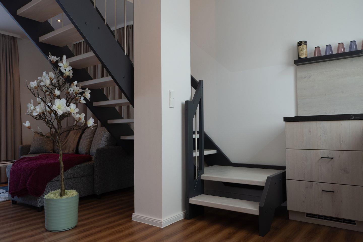 Mit zwei liebevoll eingerichteten Schlafzimmern bietet die Sandwelle Platz für bis zu vier Gäste. Die Räume sind durchdacht gestaltet, ruhig gelegen und sorgen mit hochwertigen Matratzen und verdunkelbaren Fenstern für erholsame Nächte. Das elegante Duschbad mit ebenerdiger Dusche wird durch eine eigene Sauna ergänzt – perfekt, um nach einem langen Tag an der Ostsee neue Energie zu tanken. Ein zusätzliches Gäste-WC rundet das Raumangebot harmonisch ab.