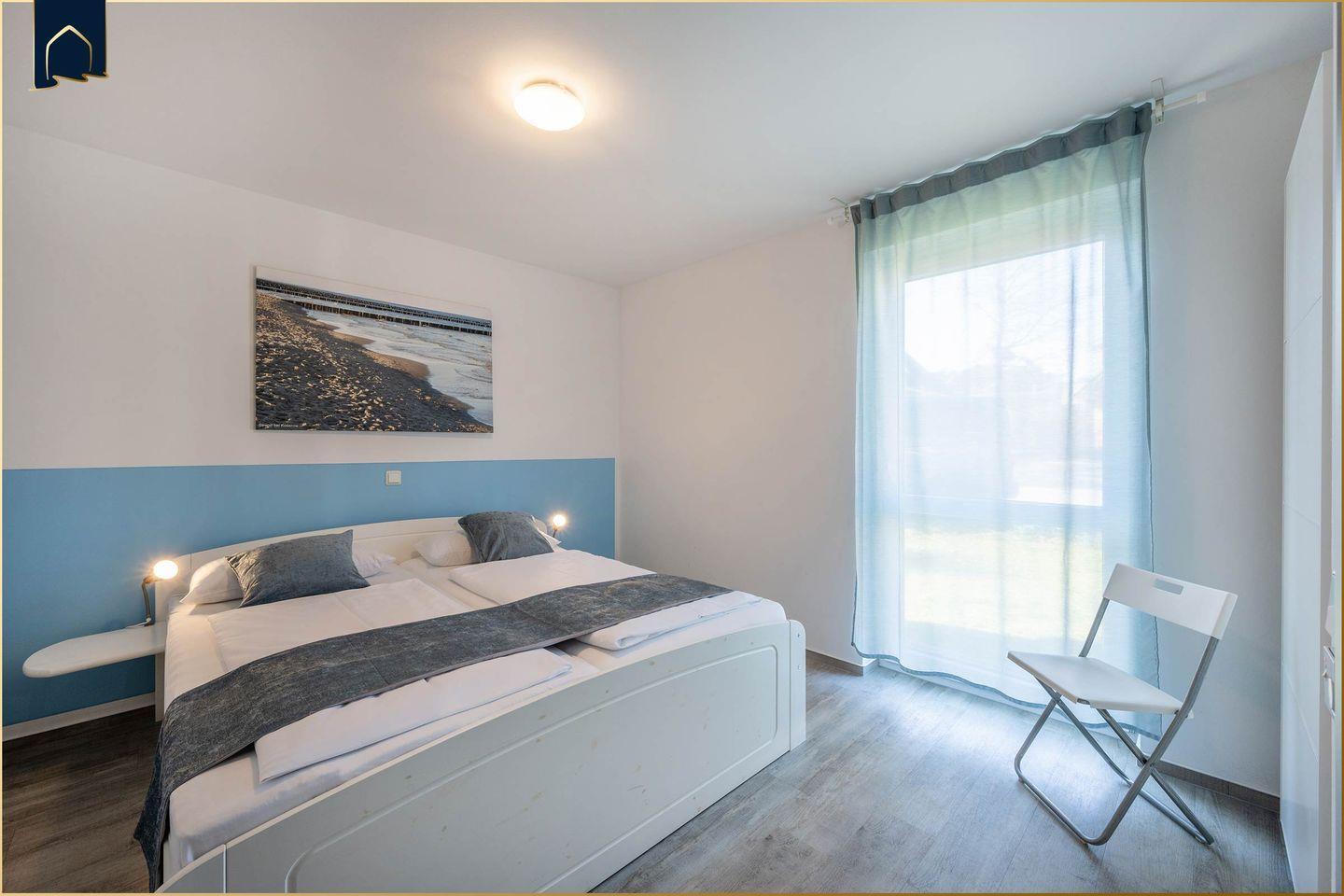 Das Herzstück der Wohnung ist der helle Wohn- und Essbereich mit bequemer Sitzecke, Esstisch, Smart-TV und Zugang zur überdachten Terrasse. Für gemütliche Stunden steht eine private Sauna zur Verfügung – ideal nach einem langen Strandspaziergang oder Ausflug. Die offene Küche ist mit Spülmaschine, Kühlschrank, Gefrierfach, Mikrowelle, Backofen, Cerankochfeld, Kaffeemaschine, Wasserkocher und Mixer bestens ausgestattet. Das Badezimmer verfügt über eine moderne Dusche, Haartrockner und Fußbodenheizung. Zwei Schlafzimmer bieten bequeme Schlafmöglichkeiten, viel Stauraum und hochwertige Bodenbeläge.