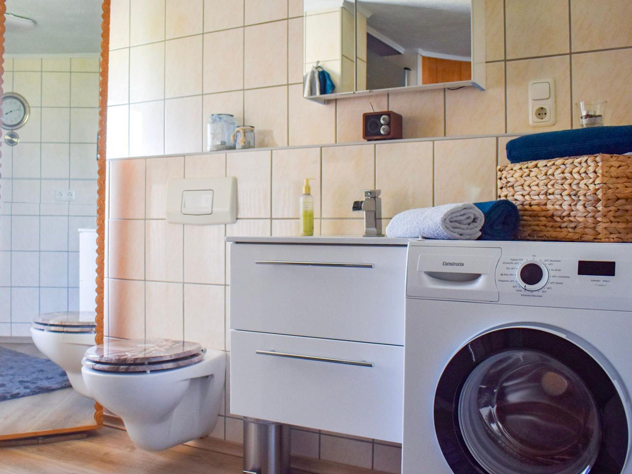 gibt zwei Bäder. Das Bad im Erdgeschoss verfügt über WC und Dusche.