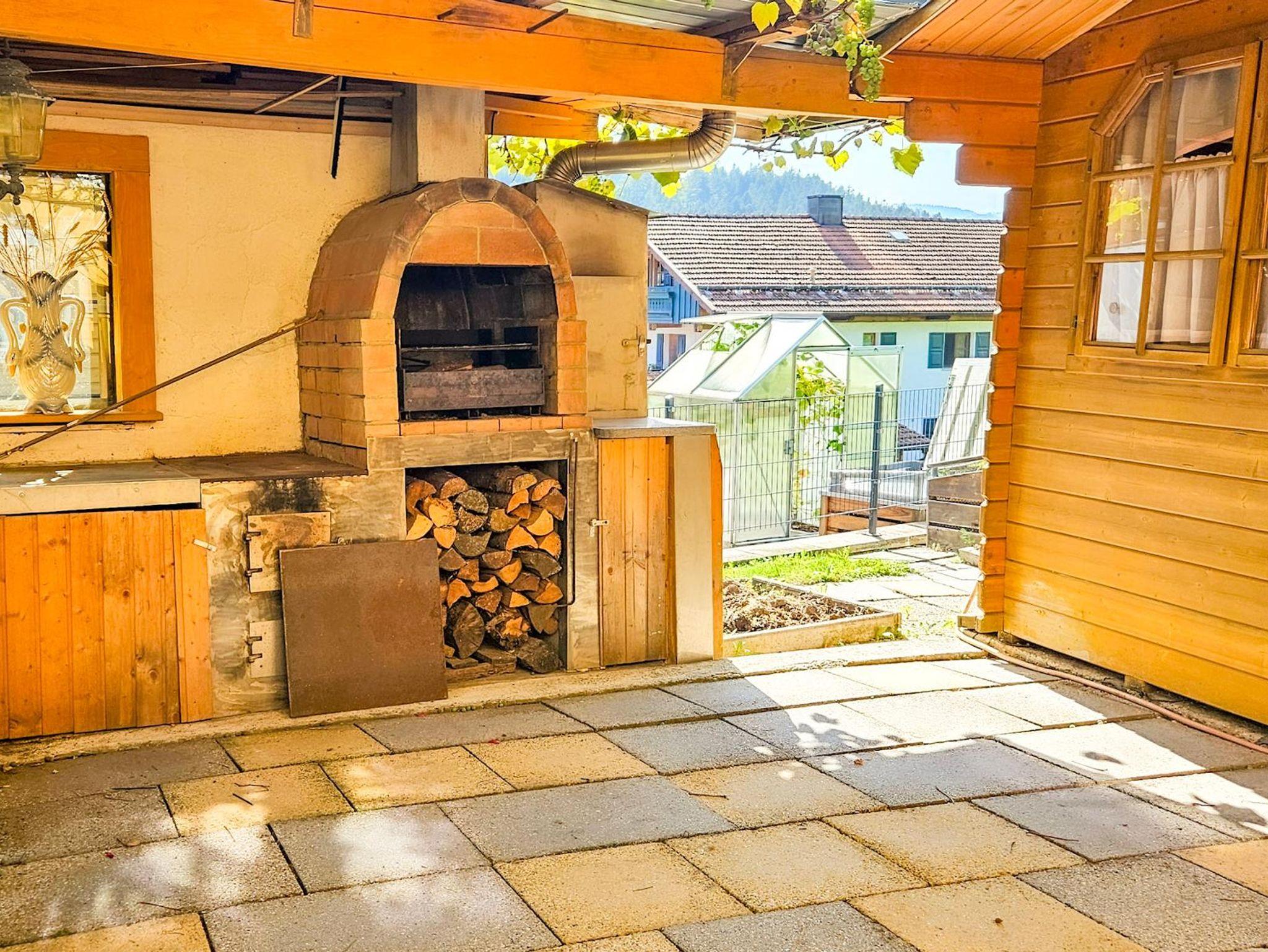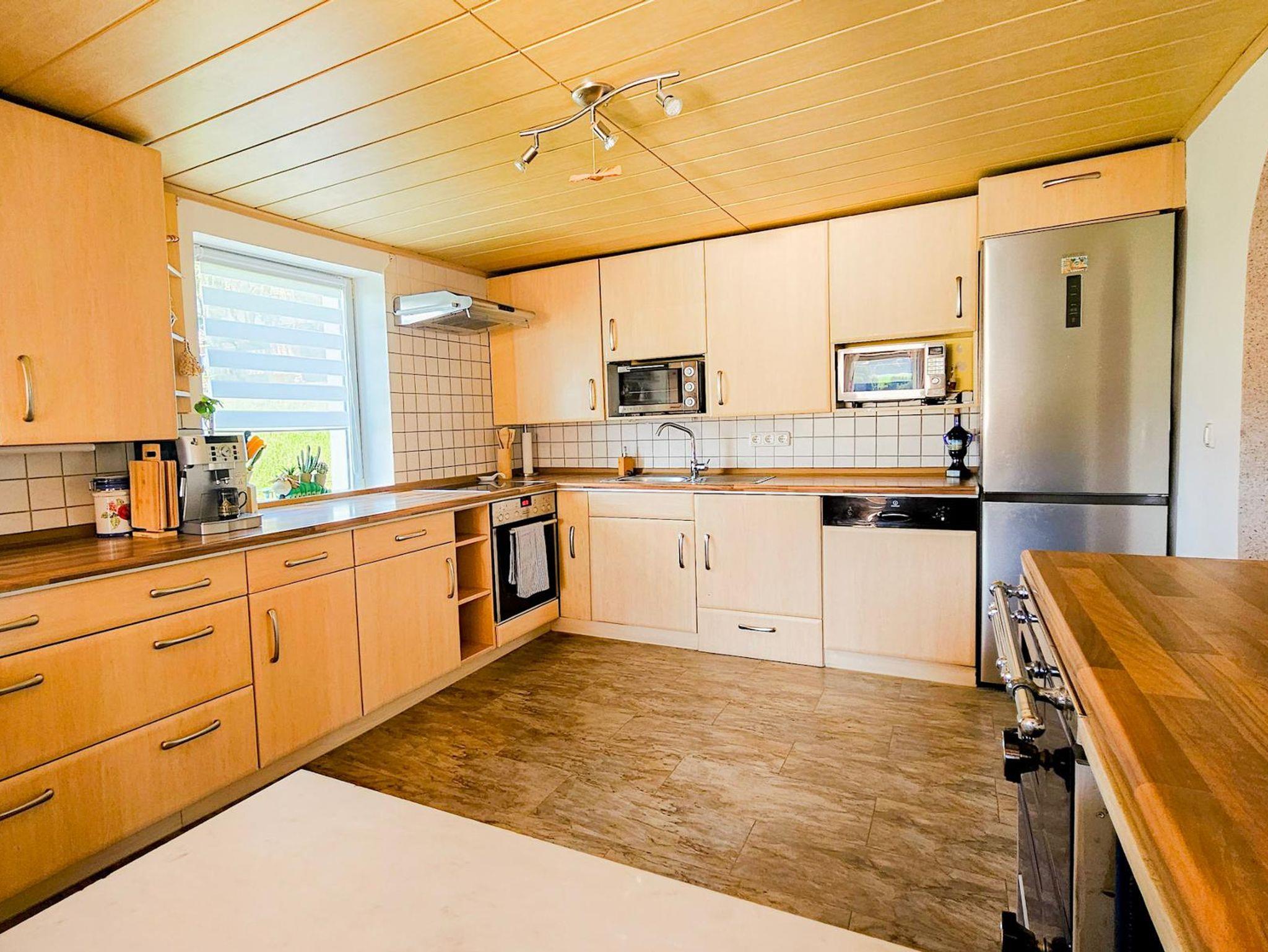 Die Küche ist voll ausgestattete mit Cerankochfeld, Backofen, Holzbackofen,