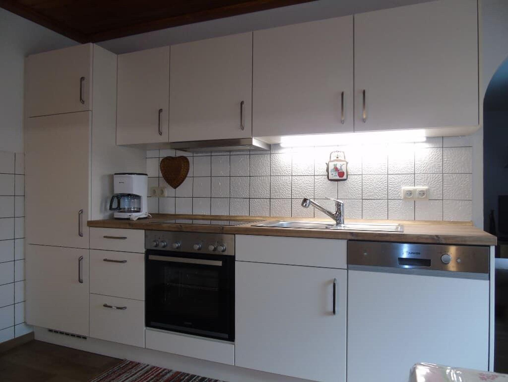 FEWO für 3 Pers. mit sep. Eingang, 1 DZ, 1 EZ, Küchenzeile mit Geschirrspüler und Essecke, WZ mit Sat-TV, große Nasszelle mit WC und Waschmaschine, 1 sep. WC, Abstellraum für Fahrräder und Ski