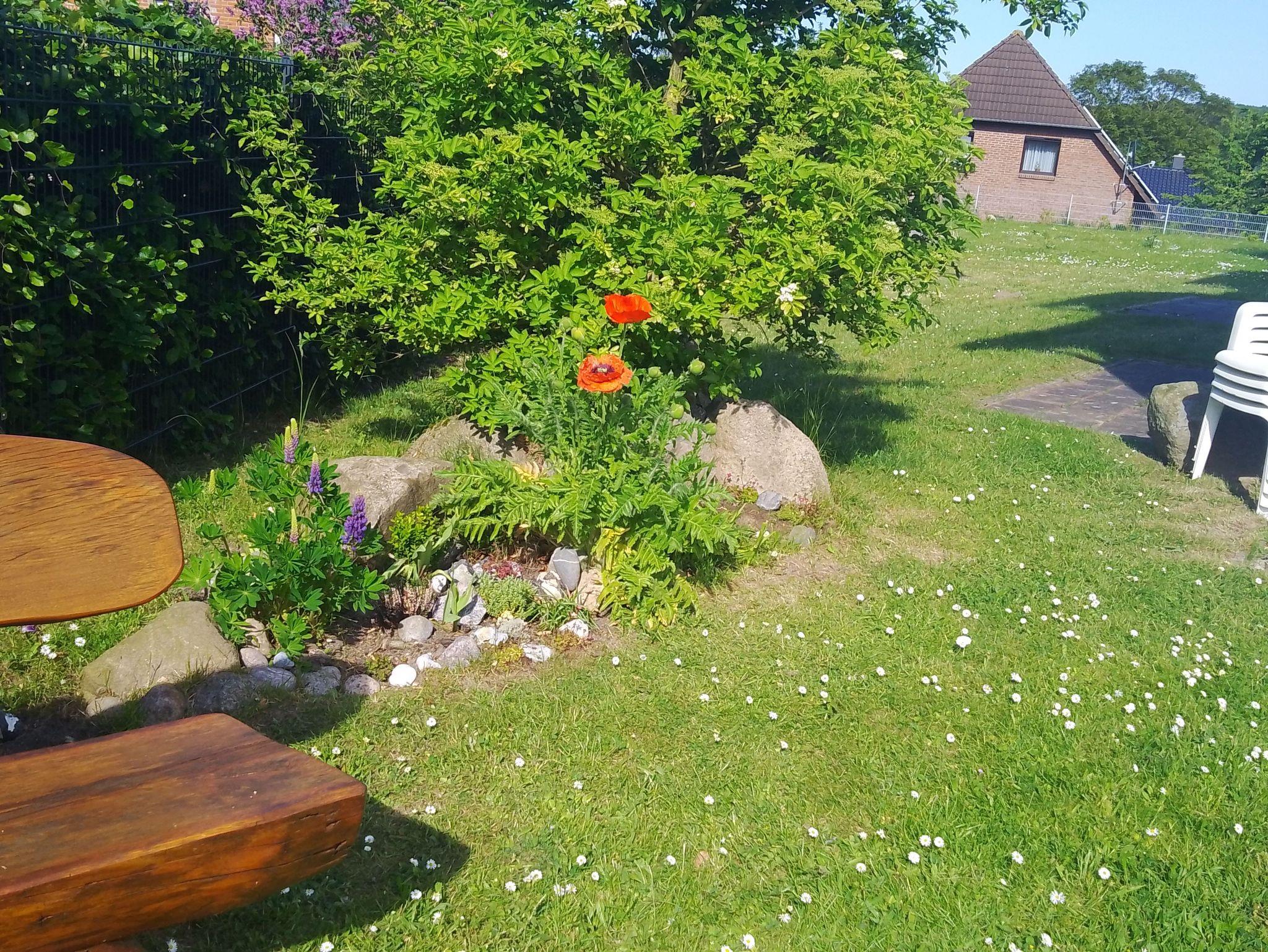 Dem Wohnzimmer ist eine gut ausgestattete Küchenzeile und ein Essplatz angeschlossen sowie ein Schlafsofa für bis zu 2 Personen.Im Schlafzimmer steht ein Doppelbett (1,80x2,00). Der Garten hinter den beiden Ferienhäusern steht allen Gästen gemeinsam zur Verfügung. Gartenmöbel im Treppenhaus und im Keller können genutzt werden.