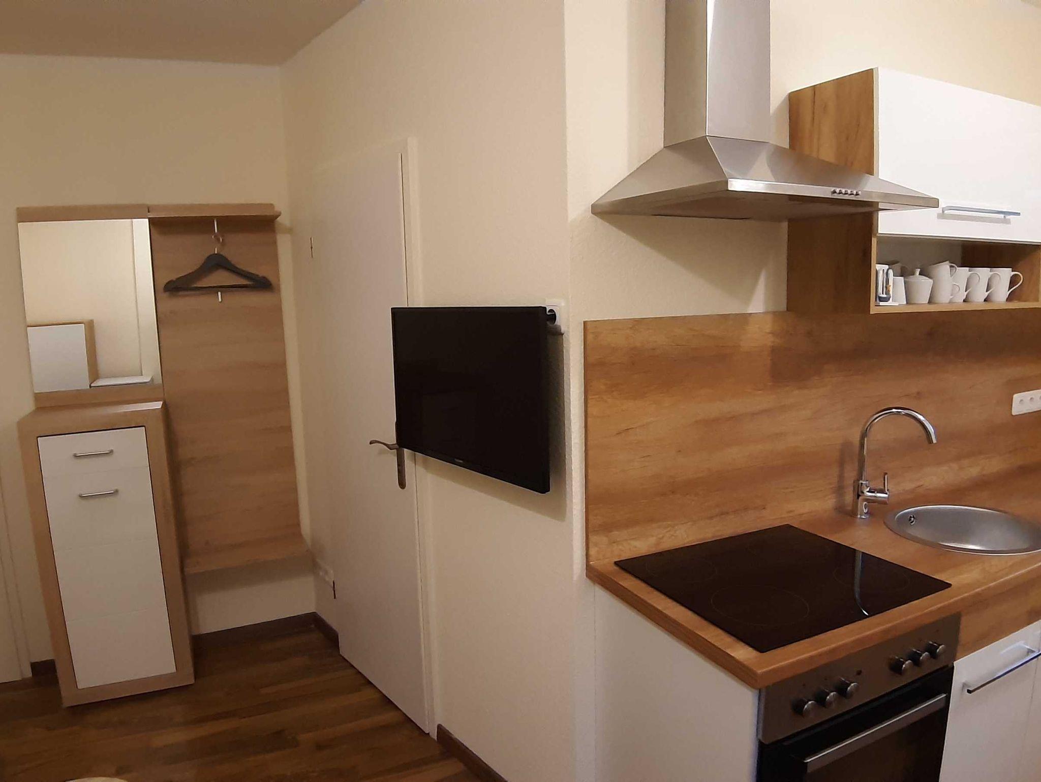 23 qm Ferienwohnung mit eingezäunten Garten (der Garten wird von 2 Ferienwohnungen genutzt).