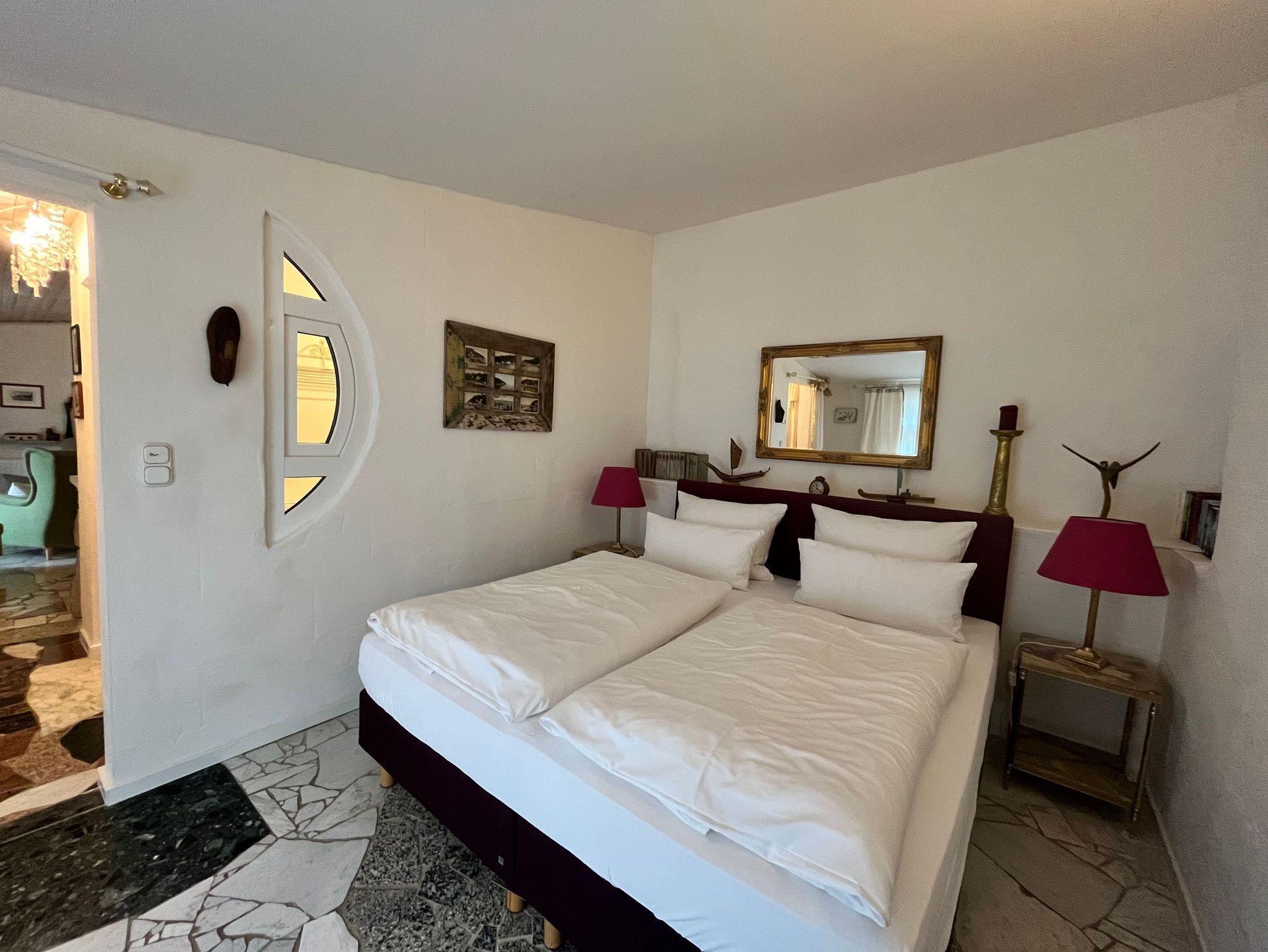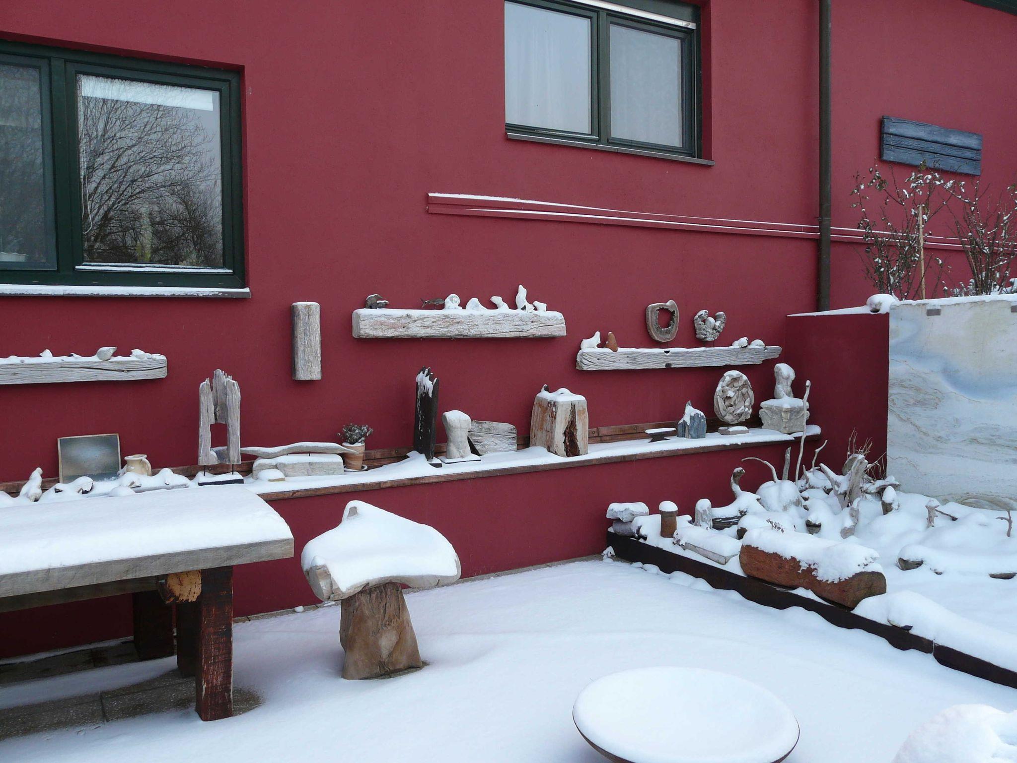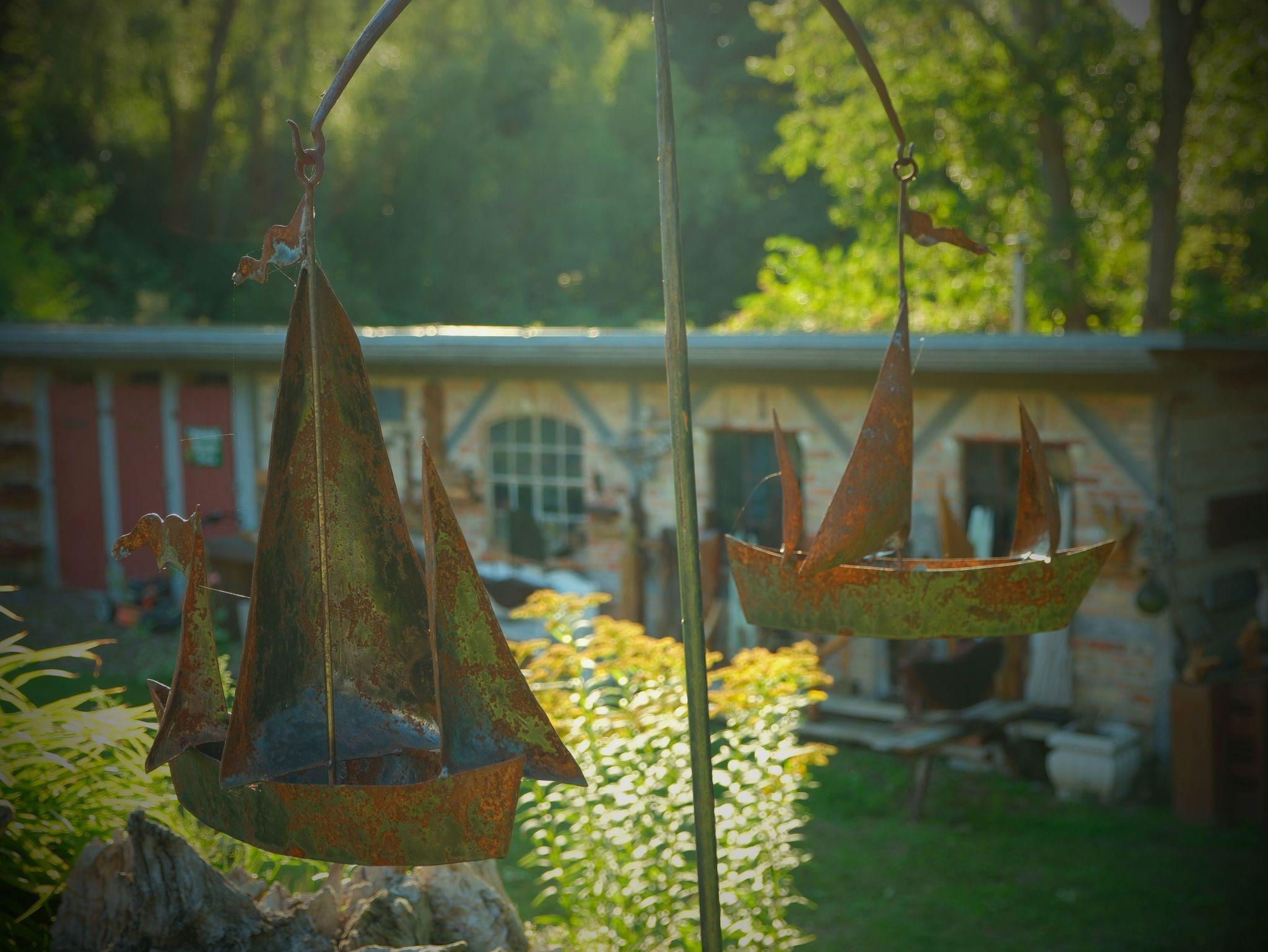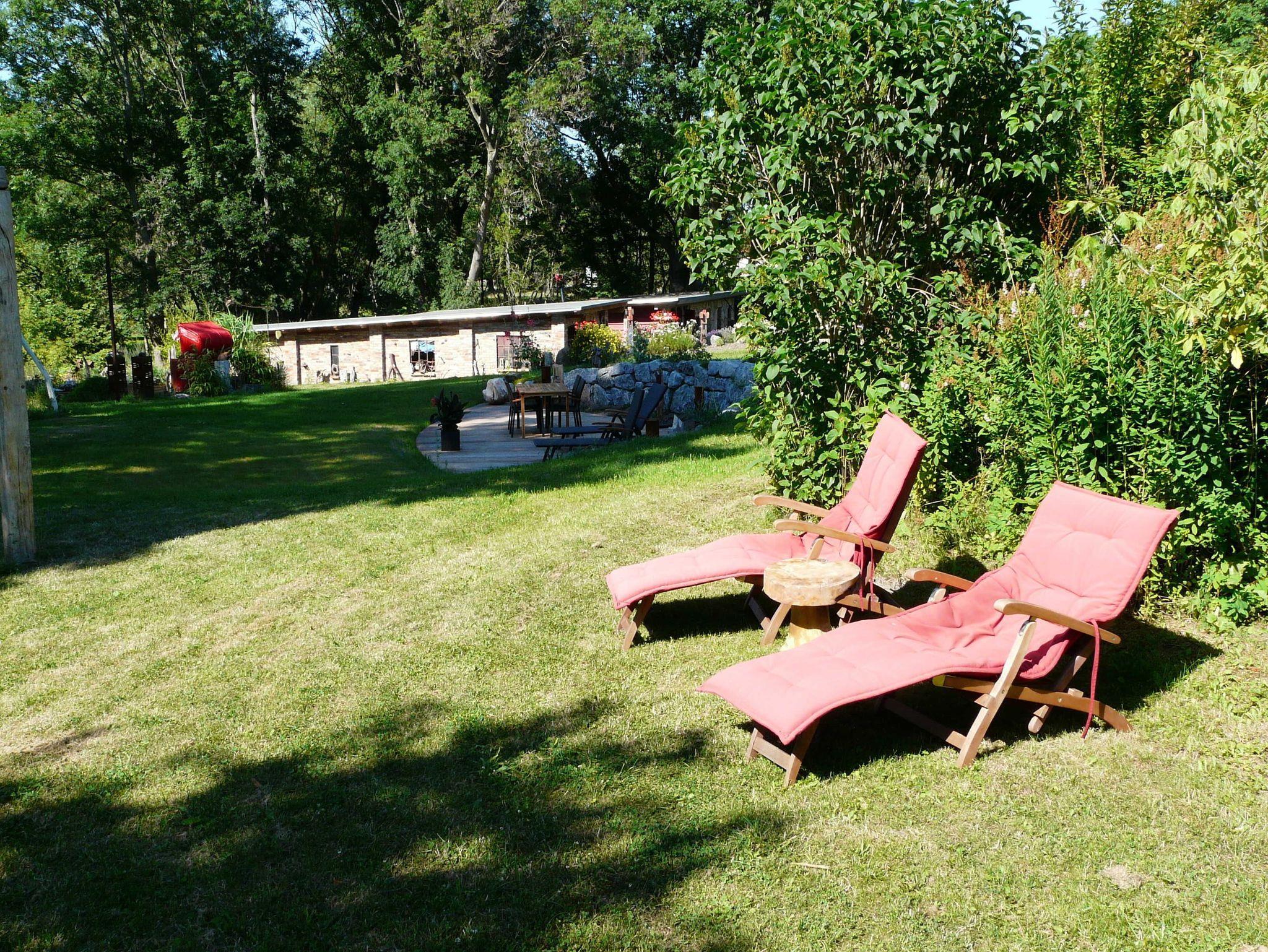 Zu jeder Wohnung gehört eine Außenterrasse mit Gartenmöbeln, Sonnenschirm und Grillmöglichkeit. Darüber hinaus finden Sie bei uns einen großen Natur- und Nutzgarten, in dem Sie neben vielfältig angelegten Beeten auch noch Wegrandblumen und Heilpflanzen sowie verschiedene Ruhezonen mit Sitzgruppen und Liegen zum Entspannen finden. Manchmal ganz offensichtlich, bisweilen recht versteckt können Sie im Garten Kunstobjekte des Hausherren entdecken und bei Gefallen käuflich erwerben.