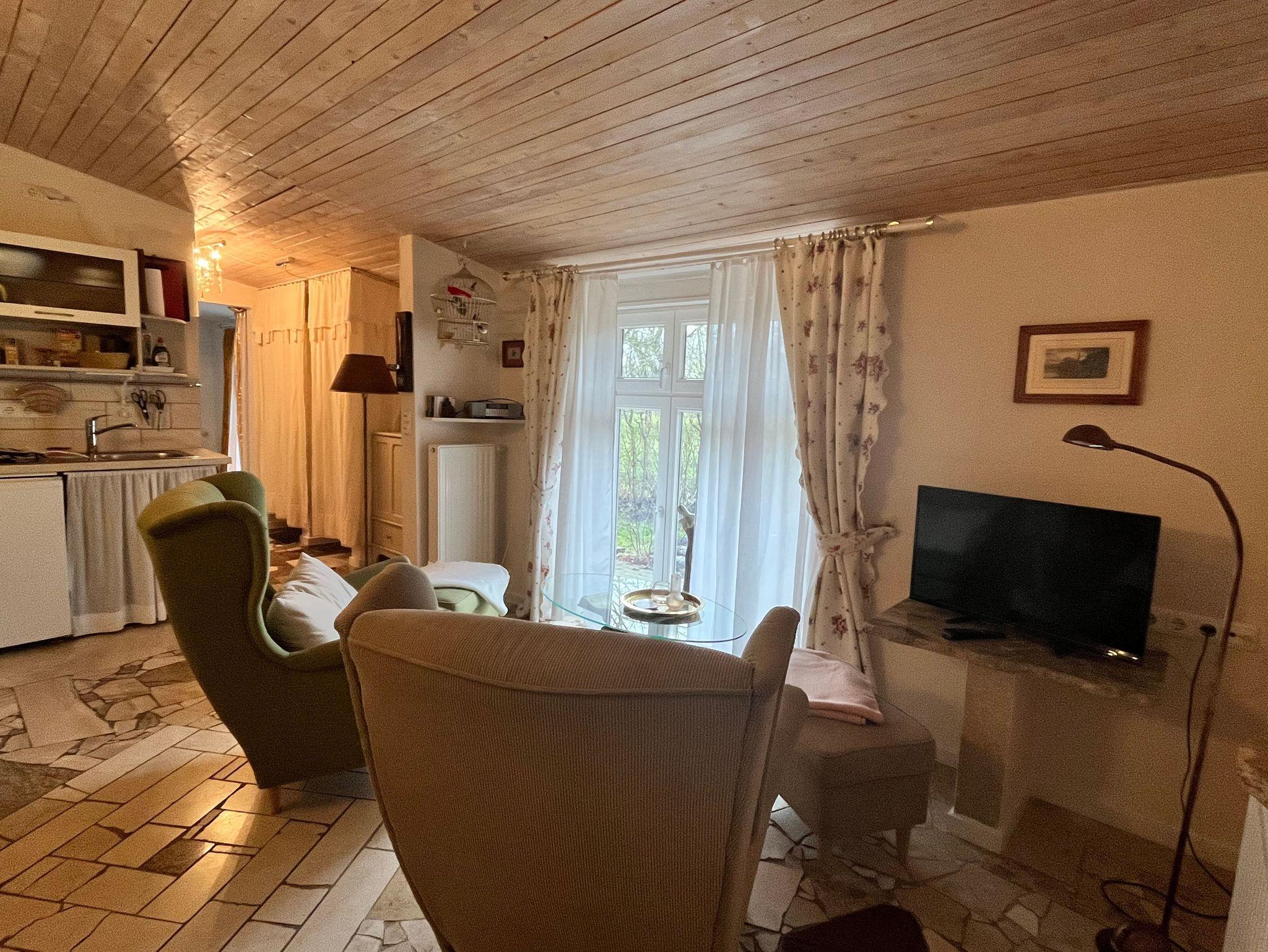 Die Ferienwohnung Sommernachtstraum ist eine 40 qm große 2-Raum-Wohnung für 1 - 2 Personen und besteht aus einem Wohnraum mit integriertem Küchenbereich, Schlafzimmer, Bad, Terrasse (16 qm).