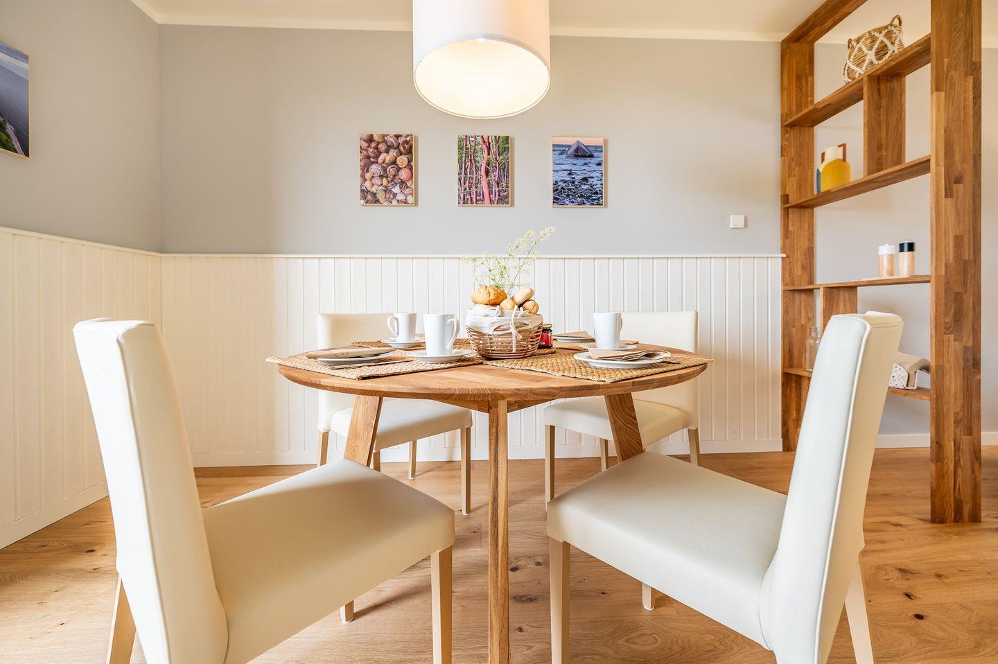 Die 2023 frisch renovierte Ferienwohnung Arkonablick im Appartementhaus FORE auf Schloss Ranzow bietet Ihnen einen fantastischen Ausblick auf den Nationalpark und die Ostsee - inklusive Kap Arkona. Die Wohnung, verteilt auf ca. 72 qm Wohnfläche, verfügt über zwei Balkone. Auf einem schaut man in den Nationalpark und kann wunderbar Frühstücken, auf dem anderen blickt man auf das Kap Arkona und kann die Abendsonne genießen. Der lichtdurchflutete Wohn- und Essbereich ist großzügig geschnitten und lädt zum Verweilen ein. Die vollständig ausgestattete Küchenzeile mit neuen Geräten ermöglicht Ihnen, Ihre eigenen Mahlzeiten zuzubereiten. Die warmen Töne und vielen Akzente aus Holz schaffen eine gemütliche Atmosphäre, die durch geschmackvolle Fotoarbeiten mit Impressionen aus der unmittelbaren Umgebung ergänzt wird. In diesem bezaubernden Appartement für bis zu 4 Personen stehen Ihnen zwei Schlafzimmer zur Verfügung, von denen das eine mit einem gemütlichen Doppelbett und das andere mit zwei bequemen Einzelbetten ausgestattet ist. Das moderne Duschbad mit WC bietet eine atemberaubende Aussicht auf den Golfplatz und das funkelnde Blau der Ostsee. Ein Glasfaser basierter Internetanschluss und eine separate Abstellkammer mit Platz für das Gepäck bieten Ihnen zusätzlichen Komfort. Ein zugehöriger Stellplatz ist ebenfalls vorhanden. Das Appartement ist die ideale Basis für einen abenteuerlichen Urlaub, der sich zwischen der Ostsee, einem Golfplatz und den Wäldern des Nationalparks Jasmund abspielt. Hier sind Sie bestens aufgehoben, um sich zu erholen und gleichzeitig Spannendes zu erleben. Die Voraussetzungen dafür könnten nicht besser sein.