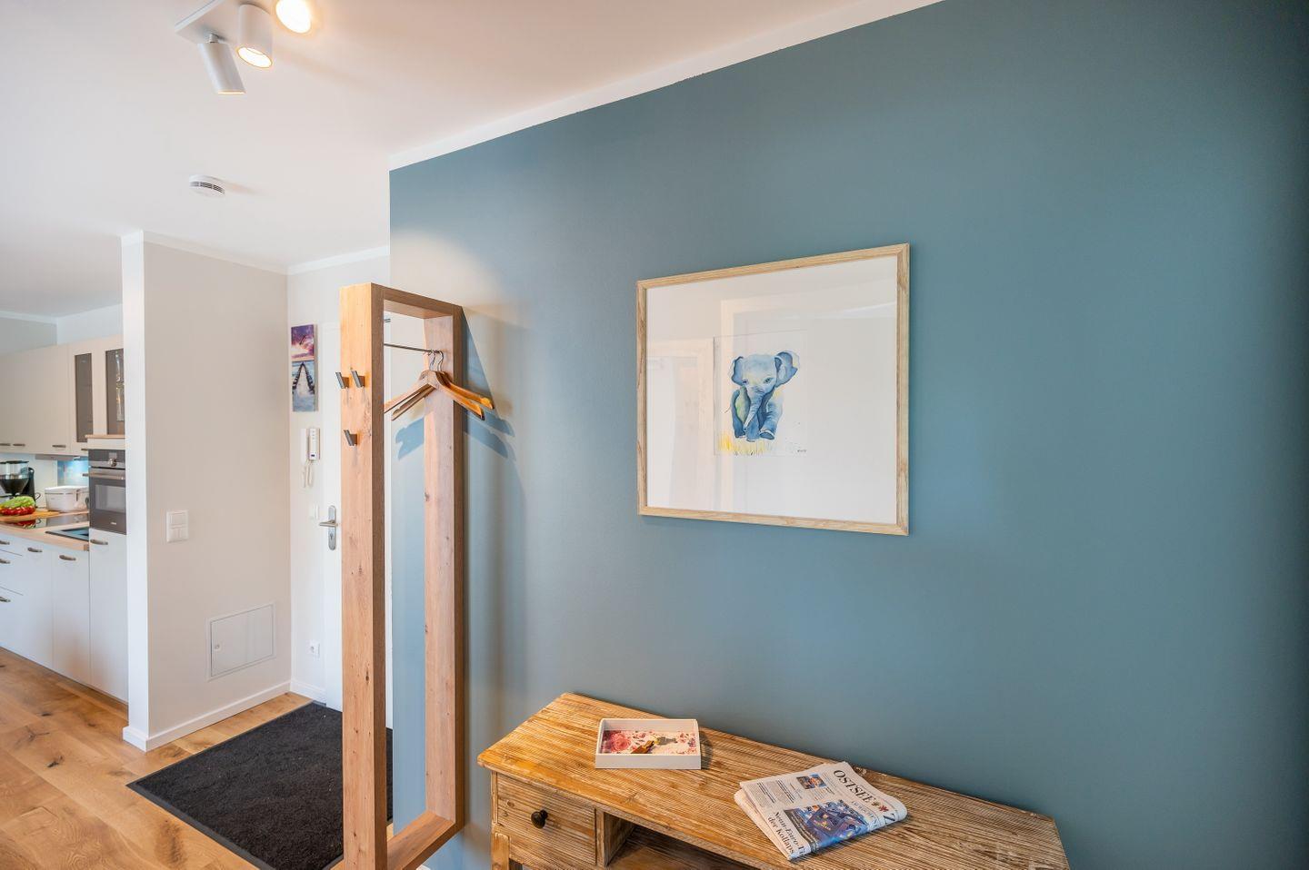 Unter dem Motto Sand & Meer begrüßt Sie diese stilvolle Erdgeschoß Ferienwohnung in der 2022 neu erstellten Villa Schlossblick am Golfplatz Schloss Ranzow und direkt am bekannten UNESCO Nationalpark der Insel Rügen. Unter der Prämisse und Einhaltung der umgebenen Natur wurde sie dieser getreu, aber in höchster Qualität, im maritimen Flair eingerichtet. Zarte Blau- und warme Sandtöne sowie maßangefertigtes Holz Mobiliar sorgen für entspannte Atmosphäre - Urlaubsatmosphäre.