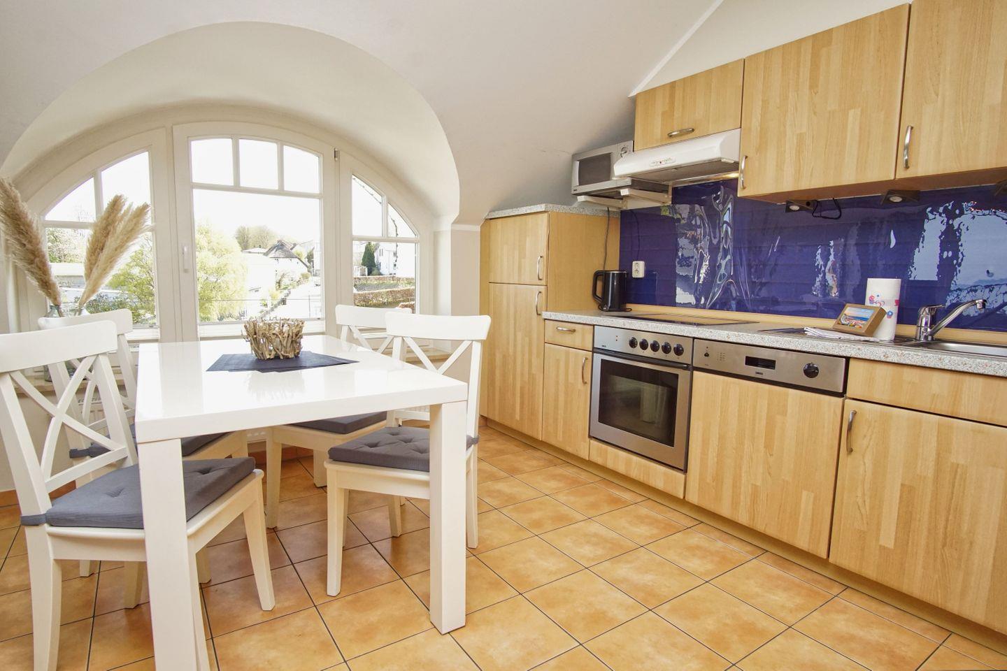 KÜCHE // offen Küche, 4-Platten Ceranherd, Spülmaschine, Kühlschrank mit Gefrierfach, Backofen, Kaffeemaschine, reichlich Besteck, Geschirr und Küchenutensilien ++