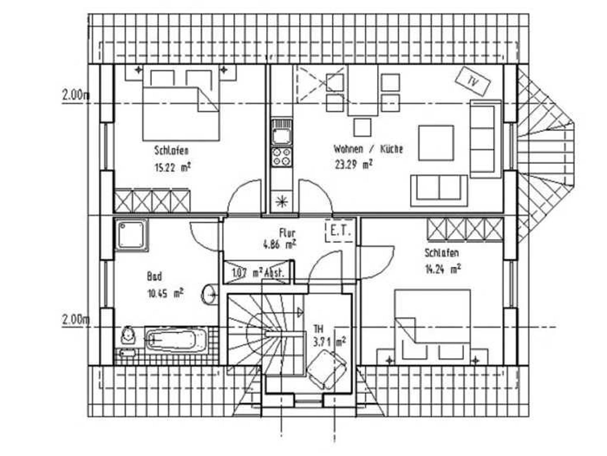 2 Schlafräume mit je einem Doppelbett 1,80m x 2,00m,