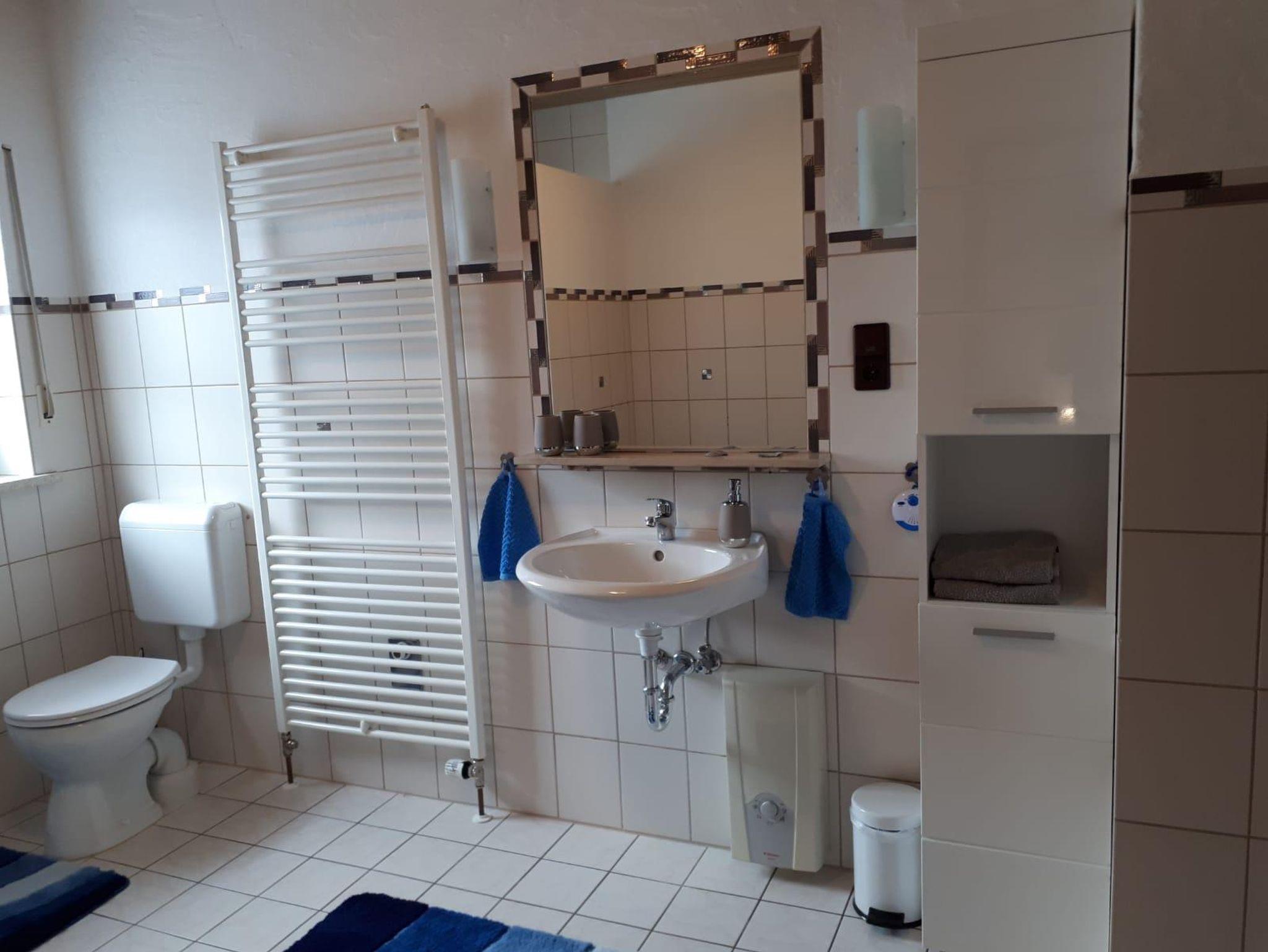 Großes Wohn-/Esszimmer, neue Küche (Backofen, Herd, Kühlschrank mit kleinem Gefrierfach, Geschirrspüler, Toaster, Kaffeemaschine), 2 Schlafzimmmer mit 2 Doppelbetten, Badezimmer mit Badewanne, Dusche/WC, weiteres kleines Badezimmer mit Dusche und WC, TV, Radio.