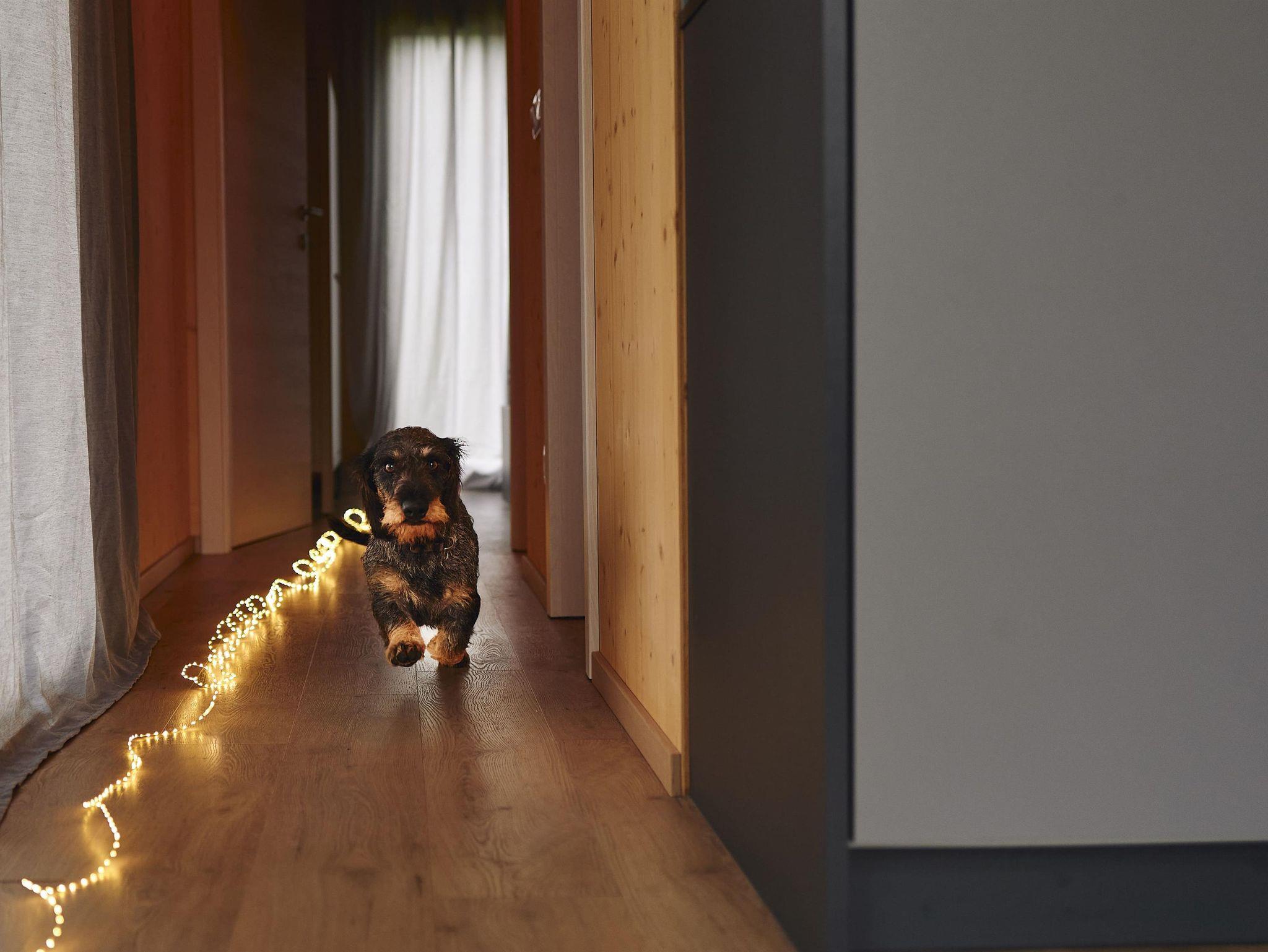 Exclusiv für uns entworfen, bieten unsere Tiny Houses auf fast 35 Quadratmetern Platz für vier Personen in zwei Schlafbereichen. Sie haben ein geräumiges Duschbad und einen Küchenbereich mit Induktionskochfeld und Spülmaschine. Eine große Glasschiebetür öffnet sich zur eigenen Holzterrasse. Im Sommer sorgt die Klimaanlage bei Bedarf sicher für Abkühlung. Und wenn es draußen mal kühler sein sollte, dann lässt sich prima auf der gemütlichen Bank vor dem Panoramafenster lümmeln, gewärmt von den Infrarot-Heizpaneelen unter der Decke.