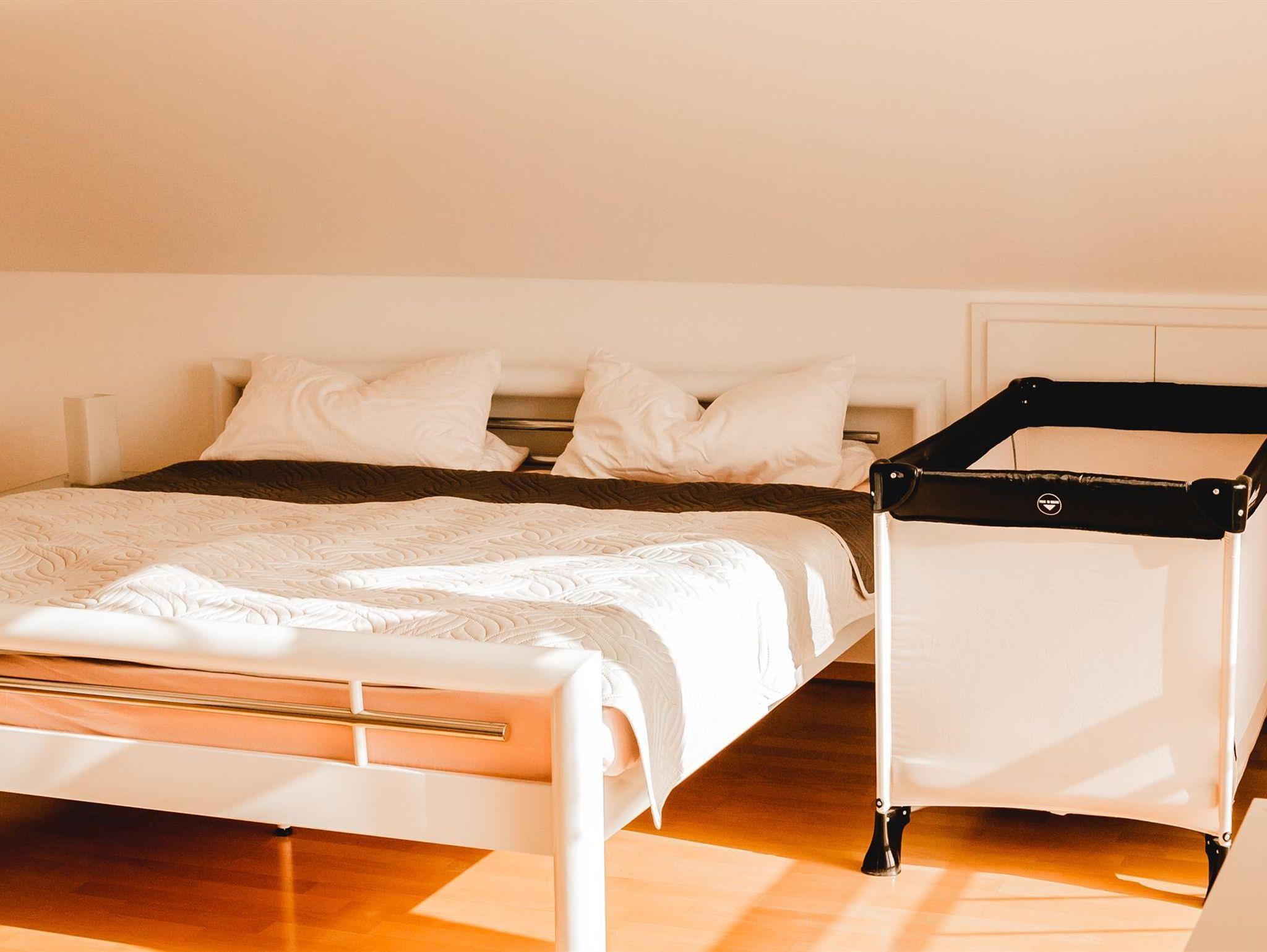 Unsere neue, moderne, helle 80m2 gro0e FeWo liegt im 1.OG mit Südblick ins Grüne. Die neu ausgestattete FeWo verfügt über großzügige Räume, 1 DZ mit Wohnbereich+ 1 Zimmer mit 2 Betten und Wohnbereich, einer komplett ausgestatteten Küche mit Eßzimmer und hellen Dachbalken-Charme, einem Bad mit DU/WC, Balkon mit Sitz- und Grillmöglichkeiten, Abstellraum mit Waschmaschine, Bügelbrett/Eisen, Wlan, SatTV, Stereo, Autostellplatz, wenige Autominuten zum See. Da wir direkt nahe der Einkaufsstraße Haagstraße liegen, erreichen sie alle wichtigen Geschäfte in wenigen Mintuen auch zu Fuß.