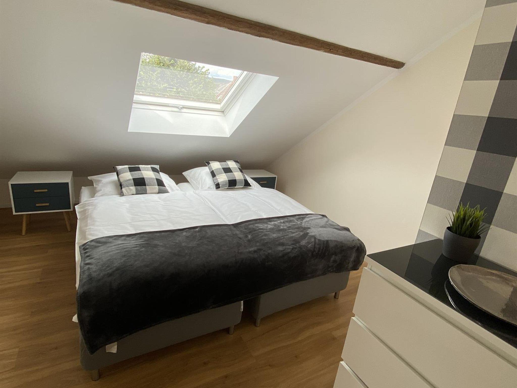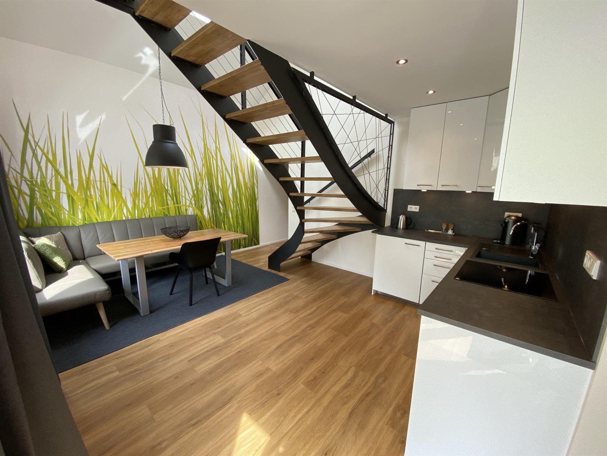 Diese helle 90 m² Maisonette-Wohnung in einem historischen Gebäude bietet Platz für bis zu 4 Personen. Zwei Schlafzimmer mit flexiblen Doppelbetten, ein gemütliches Wohnzimmer mit Smart/Sat-TV und eine hochwertig ausgestattete Küche lassen keine Wünsche offen. Fußbodenheizung sorgt für Komfort, das separate WC für zusätzlichen Luxus. Auf der Terrasse oder im Wellnessgarten mit Sauna & Whirlpool lässt es sich wunderbar entspannen. WLAN & Parkplatz kostenlos.
