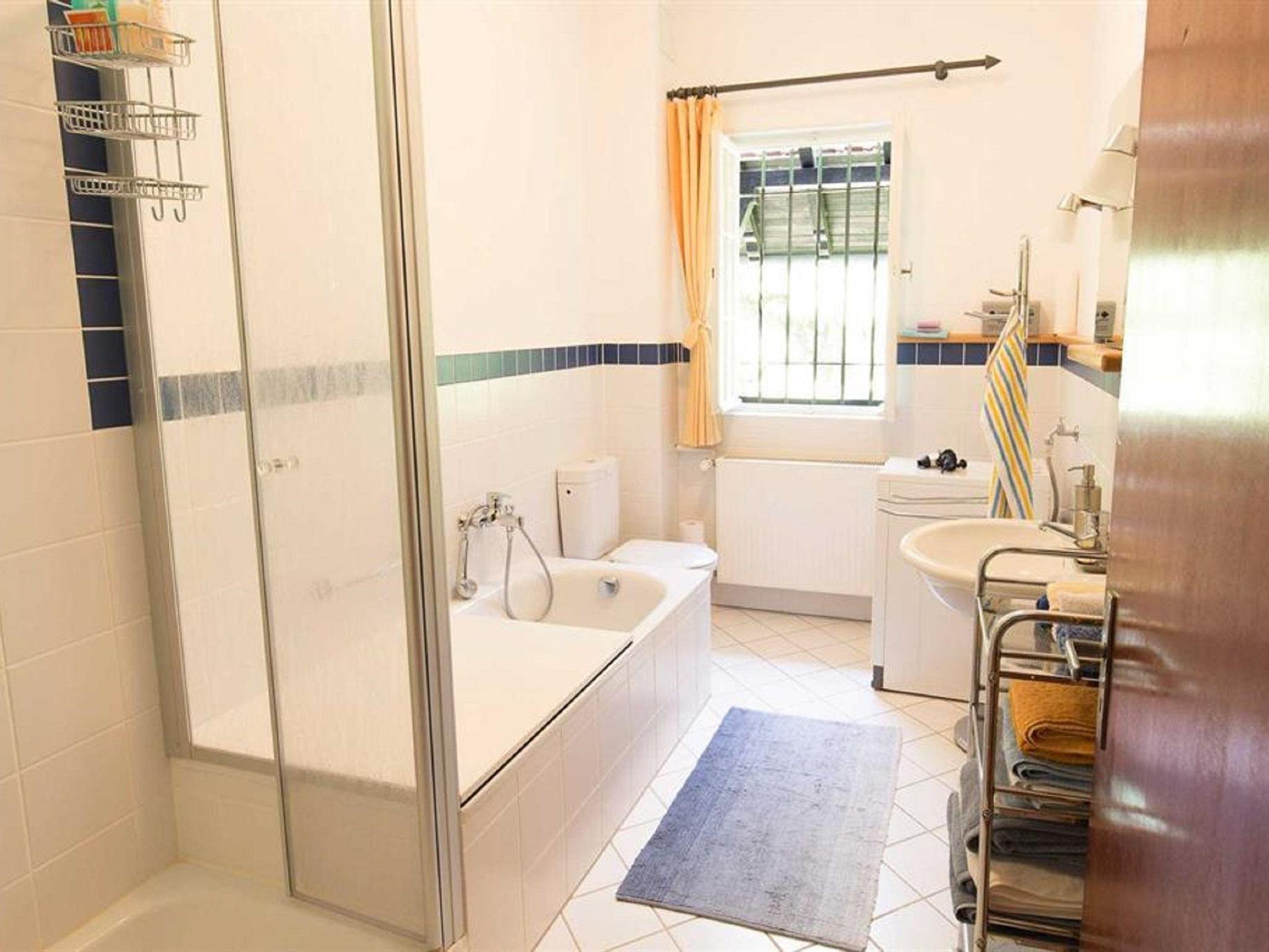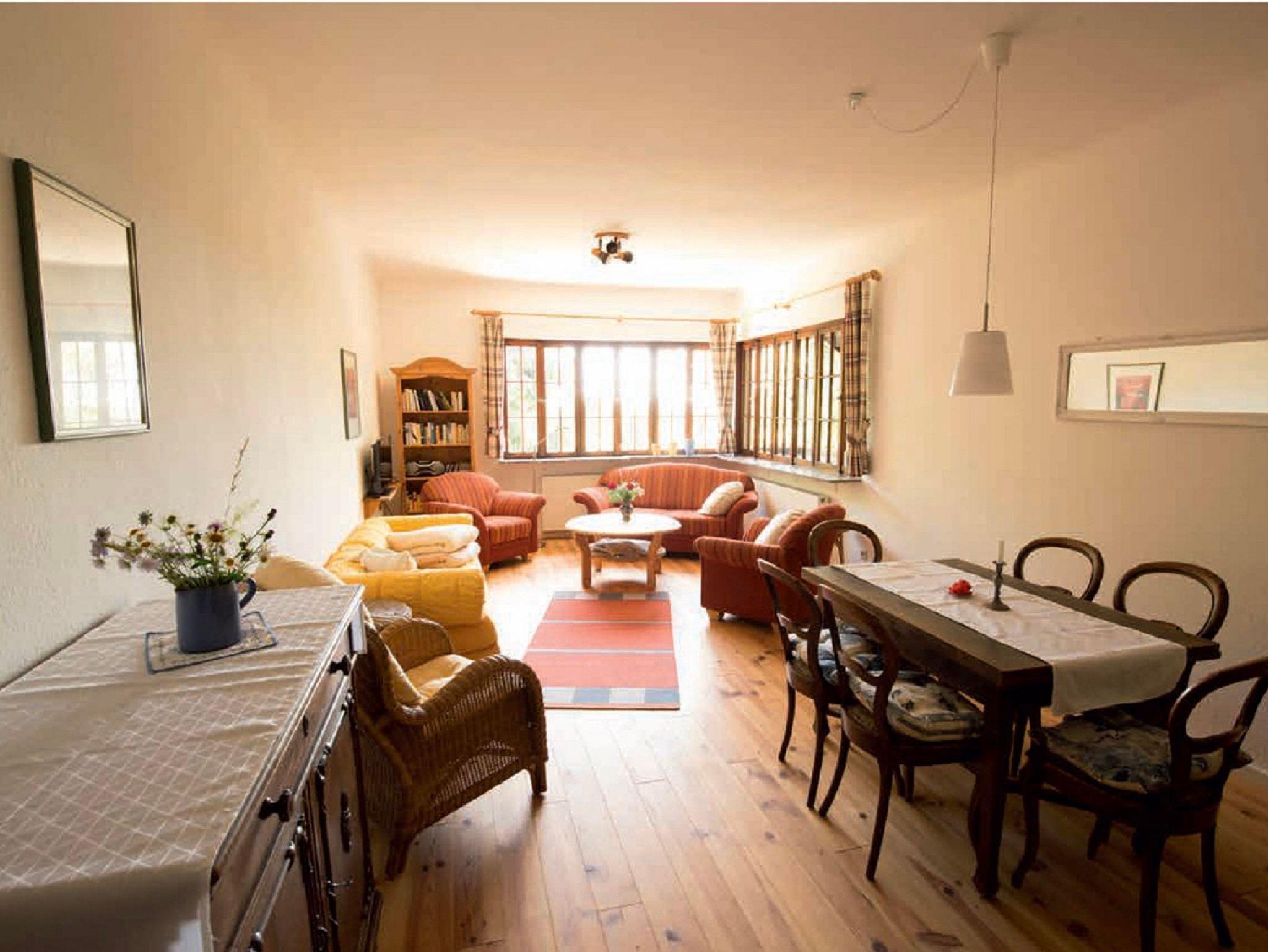 Von hier geht es in eine Diele mit Gästetoilette, ein großes Wohnzimmer mit Fernblick ausgestattet mit SAT-TV, CD-Player, Radio, Büchern, Malsachen für Kinder sowie eine Auswahl an Spielen. Das modern eingerichtete Bad hat eine Toilette, eine Dusche und eine Wanne und Waschmaschine. Im Eingangsbereich ist außerdem ein Trockner zu finden. Handtücher sind inklusive und brauchen nicht mitgebracht werden. Im absolut ruhig gelegenen Schlafzimmer finden zwei Erwachsene und ein Kleinkind Platz zum Schlafen. Die Betten sind frisch bezogen, Sie brauchen keine Bettwäsche mitzubringen. Dank Kleiderschrank und Garderobe ist alles schnell am richtigen Platz. Zusätzliche Schlafmöglichkeiten bietet eine große Schlafcouch im Wohnzimmer.