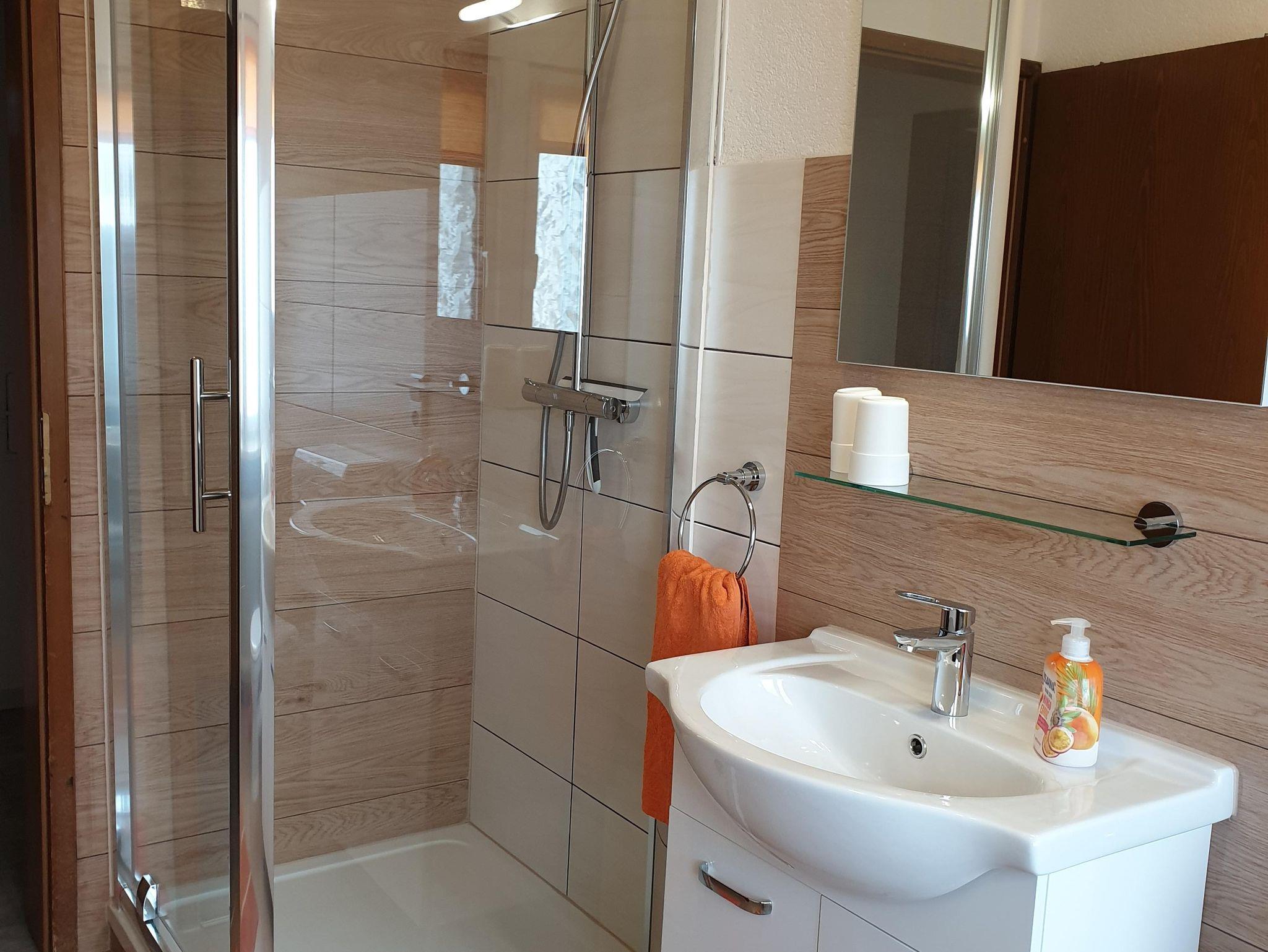 Die Ferienwohnung mit separatem Eingang befindet sich im Dachgeschoss eines Ein- bis Zweifamilienhauses. Das gemütliche Appartement verfügt über ein Schlafzimmer mit Doppelbett, ein Wohnzimmer sowie eine voll ausgestattete Einbauküche mit Elektroherd und Backofen, Toaster, Mikrowelle, Kühlschrank mit Gefrierfach und Kaffeemaschine. Auf Anfrage kann ein zusätzliches Kind auf der Couch im Wohnzimmer übernachten. Das Badezimmer ist mit einer Dusche und einem WC ausgestattet. Der großzügige Balkon lädt zum Verweilen ein. Ein PKW-Stellplatz steht direkt vor dem Haus zur Verfügung.