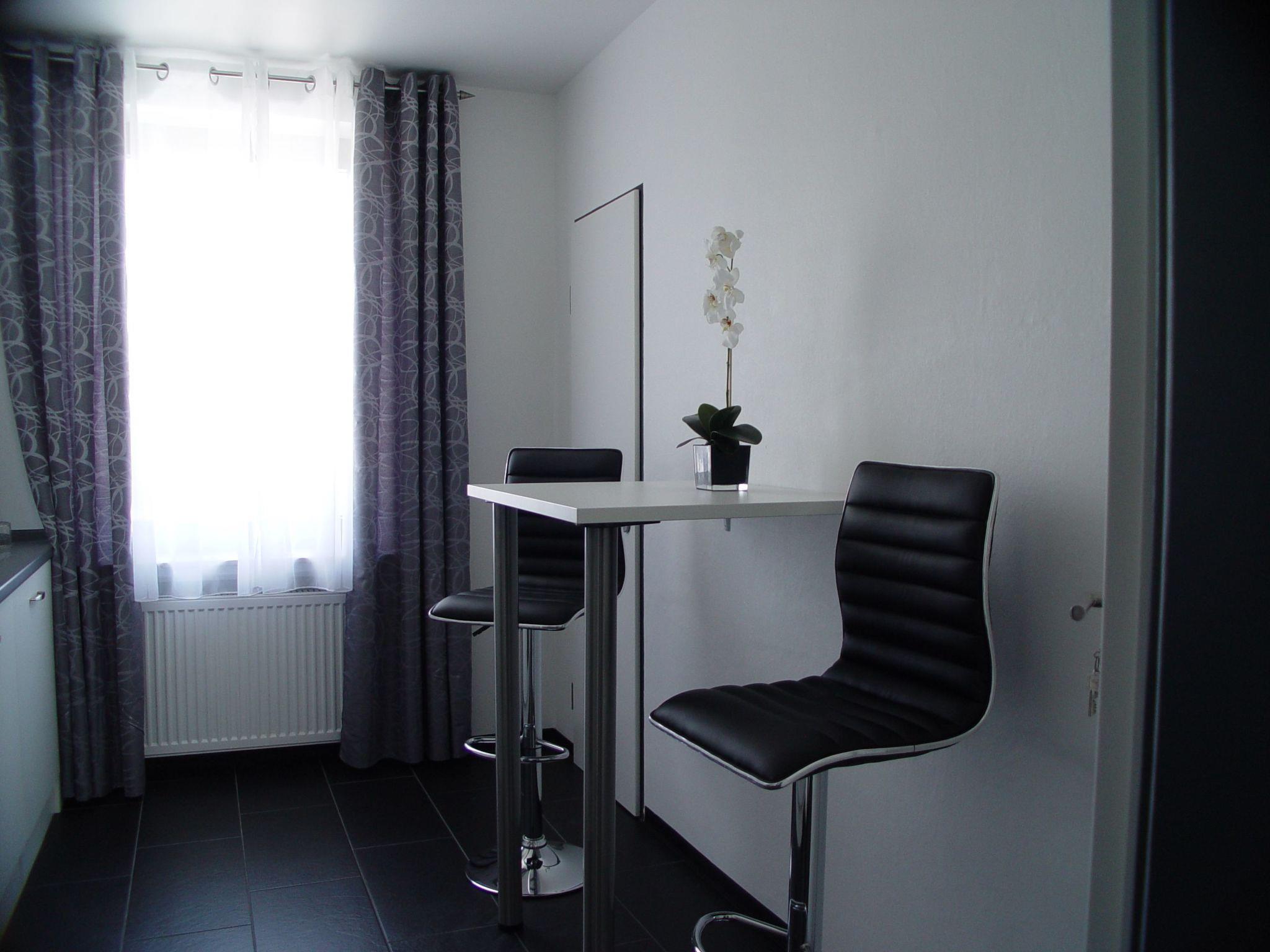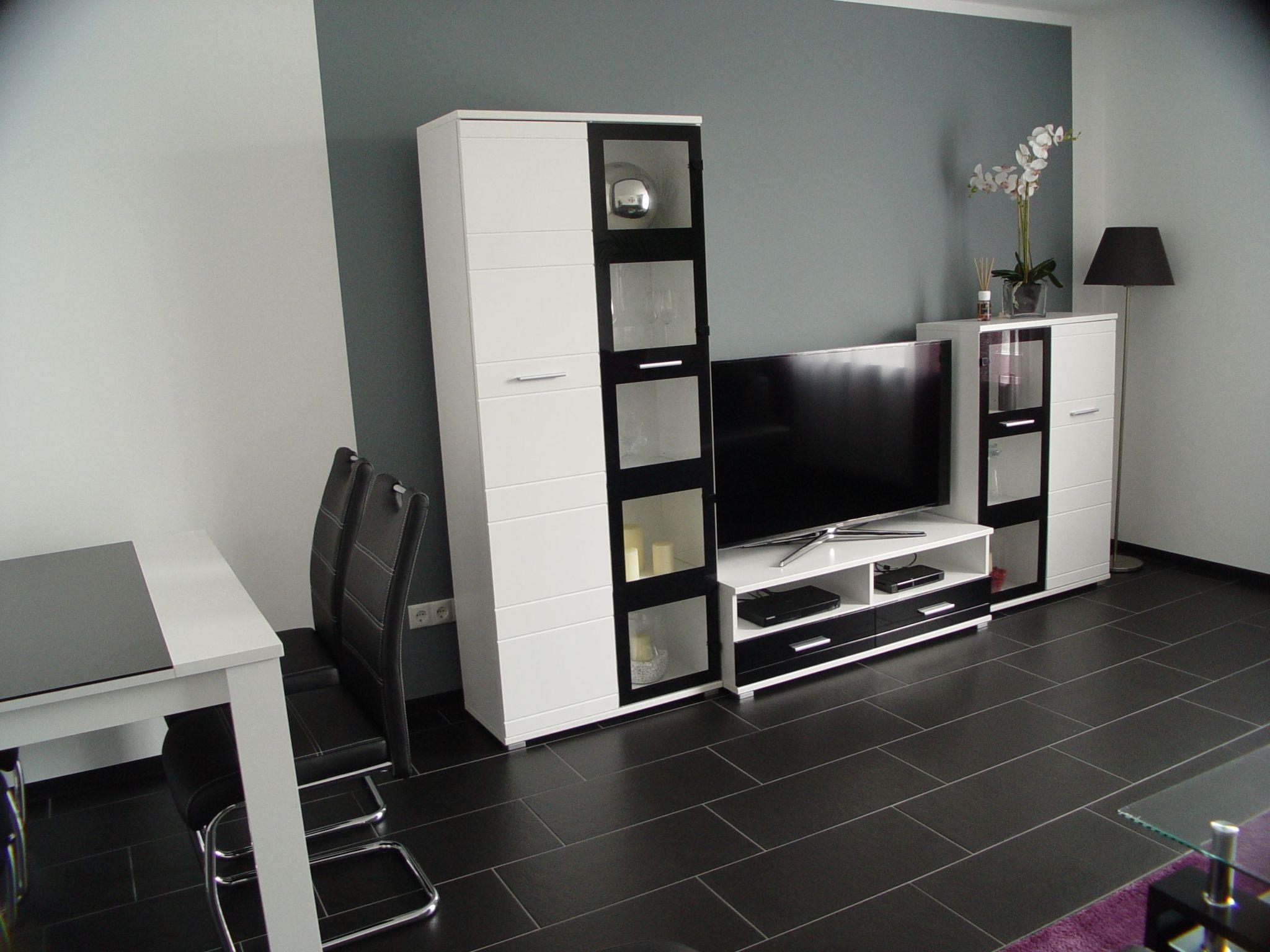 Inside, the flat offers a spacious living ambience with 2 rooms, kitchen and bathroom (2 bedrooms) for two people plus a maximum of two additional guests. The approx. 30 sqm living room, with an approx. 6 sqm discreet open office/work area, is equipped with a 50? flat screen, SAT TV, a BluRay 3D player and an LED system that allows you to set the colour of your choice. A cosy couch, which can be converted into a large bed if required, and a 900 x 1,400 mm dining table with comfortable swivel chairs complete the offer. The fully equipped kitchen with approx. 9 square metres offers standard elements such as a fridge, oven and microwave as well as a dishwasher. A pantry directly accessible from the kitchen offers additional storage space.