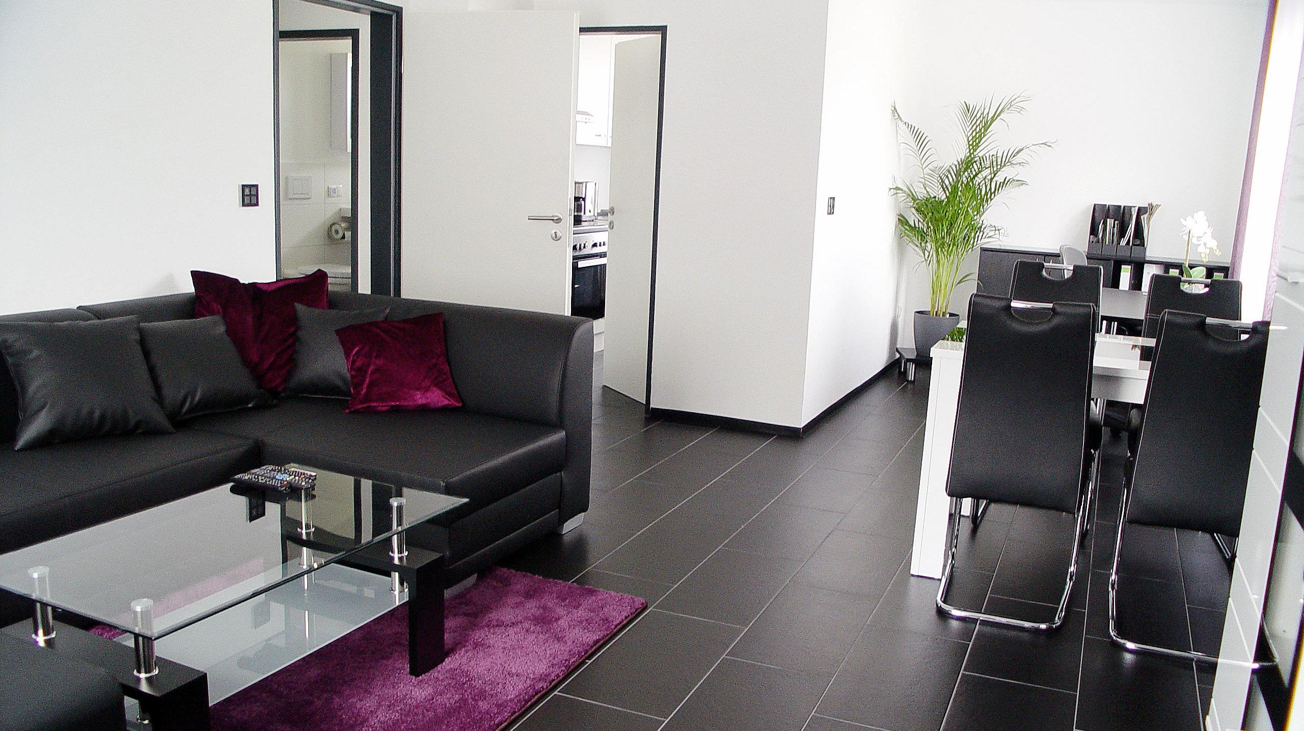 Das gesamte Wohnzimmer ist ca. 30 qm groß, wovon etwa 6 qm einen Büro-/Arbeitsbereich, in Form einer dezenten, offenen Nische, darstellen. Die restlichen 24 qm laden Sie ein, auf dem 50? Flachbildschirm, SAT TV oder einen spannenden BluRay 3D Film zu geniessen. Die Wohnwand ist mit einem LED-System ausgestattet, bei dem Sie Ihre Wunschfarbe frei einstellen können, um das optimale Wohlfühlambiente zu erhalten.