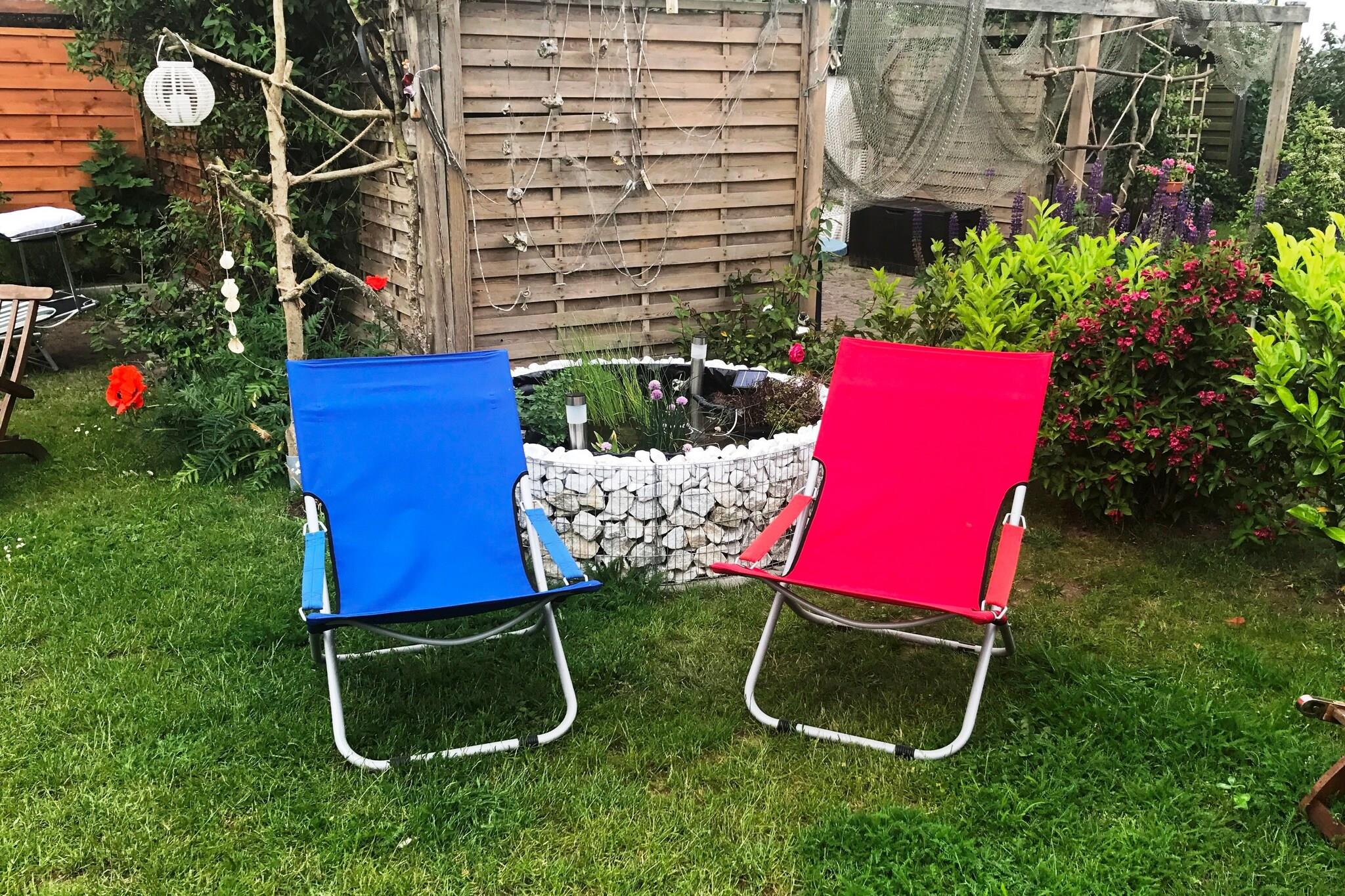 På 1. etage: (åbent køkken(spisebord(2 personer), kogeplade(Komfur med to kogeplader, glaskeramisk), elkedel, brødrister, kaffemaskine, opvaskemaskine , køleskab(+ fryser)), stue / spisestue(Fjernsyn(parabol), DVD-afspiller, CD-afspiller), soveværelse(enkeltsovesofa(90 x 200 cm), dobbeltseng(boxmadras, 180 x 200 cm)), badeværelse(bruser, håndvask, toilet), Repos, balkon, varme) have, havemøbler, grill, parkering, parkering, Parasol, Håndklæder/sengelinned (ekstra gebyr)