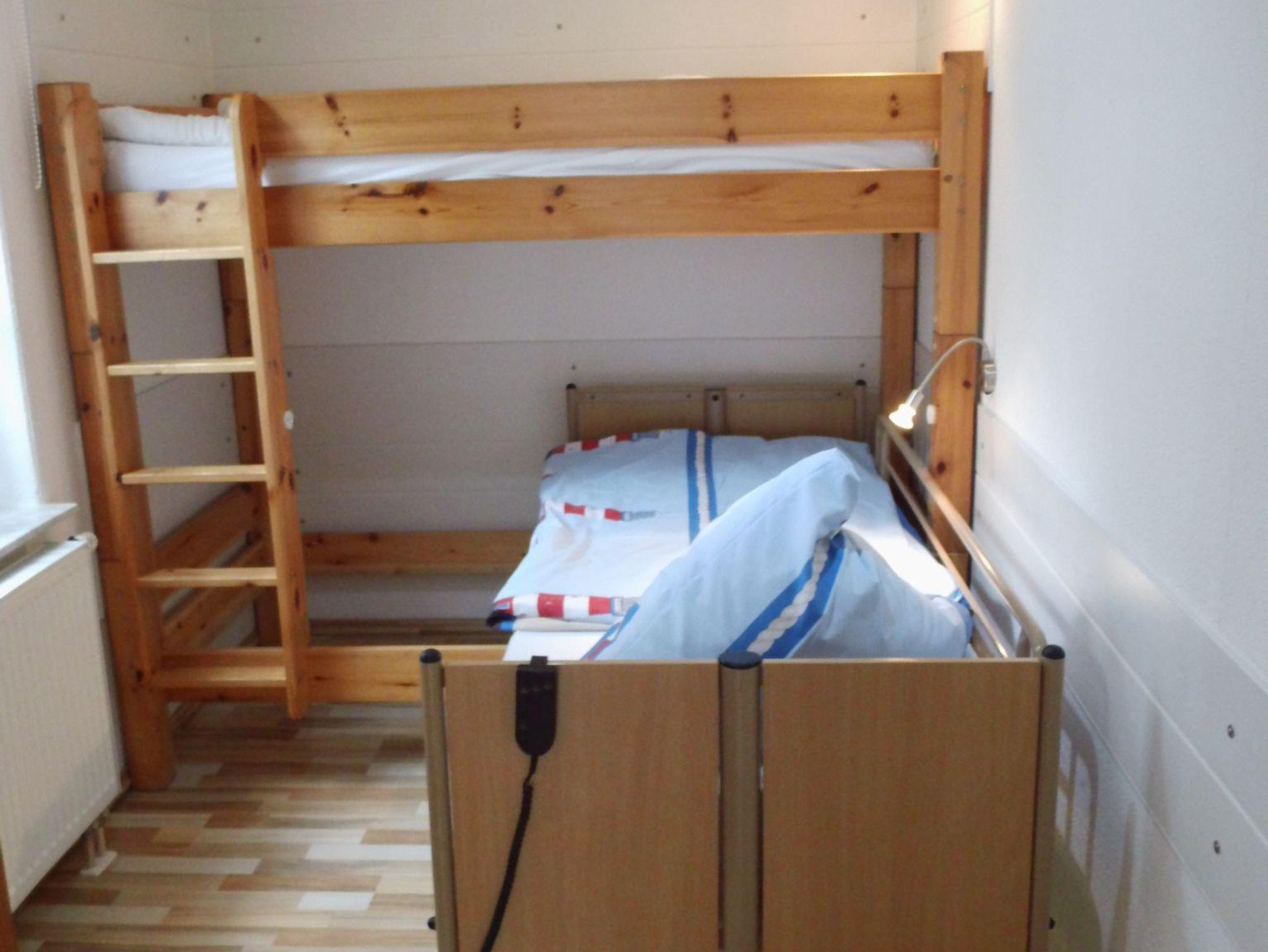 Dieser Schlafraum ist ausgestattet mit einem Etagenbett (195cm x 90cm), Leselampen & Bücherregalen (& Büchern :-) !) und einem Kleiderschrank.
