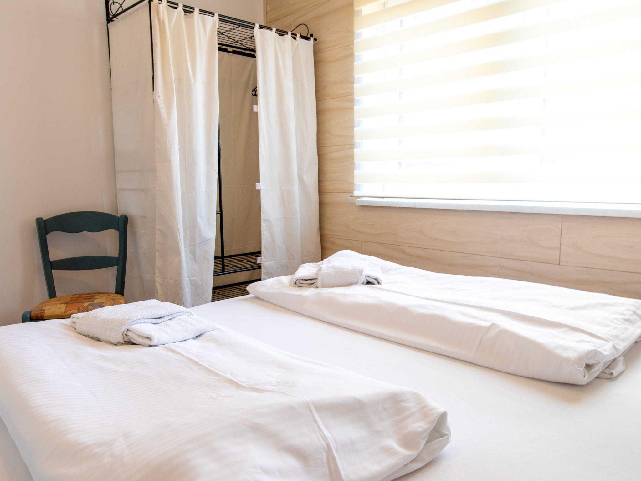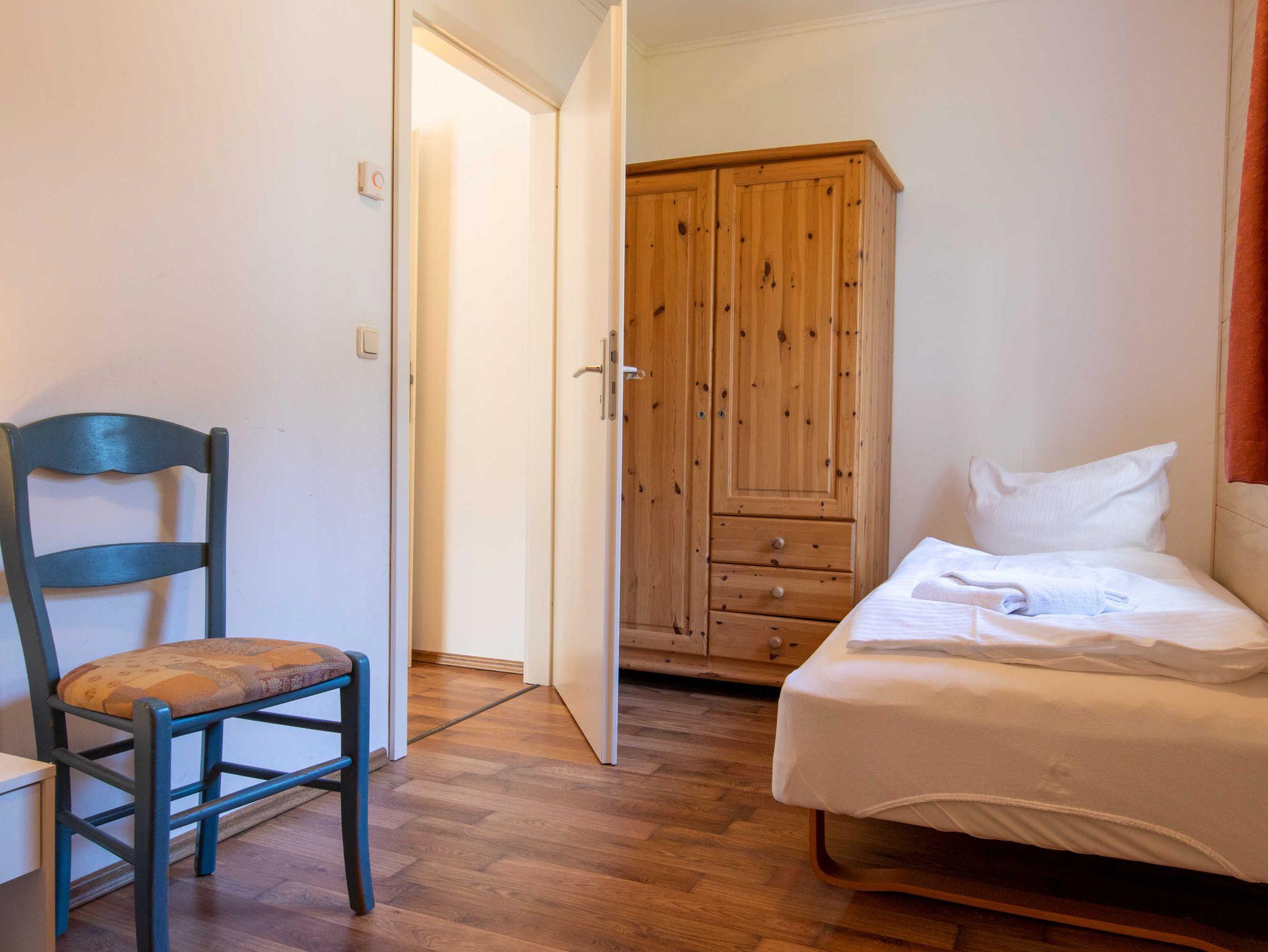 Das Wohnzimmer ist mit einer Schlafcouch (Aufbettung für 2 Personen), TV, einem Esstisch und einer Miniküche mit Kühlschrank und Mikrowelle eingerichtet. Im ersten Schlafzimmer befindet sich ein gemütliches Doppelbett mit Kleiderschrank. Das zweite Schlafzimmer beherbergt zwei Einzelbetten und einen Kleiderschrank. Das freundliche Tageslichtbad hat eine Dusche und ein WC. Zum Entspannen und Sonne tanken lädt die Terrasse ein. Sie ist vom Wohnzimmer aus begehbar.