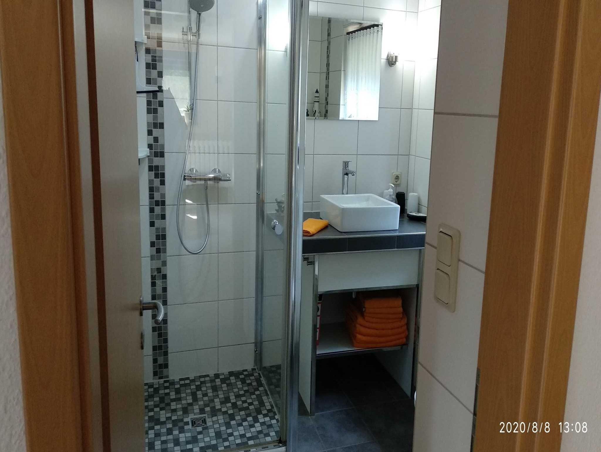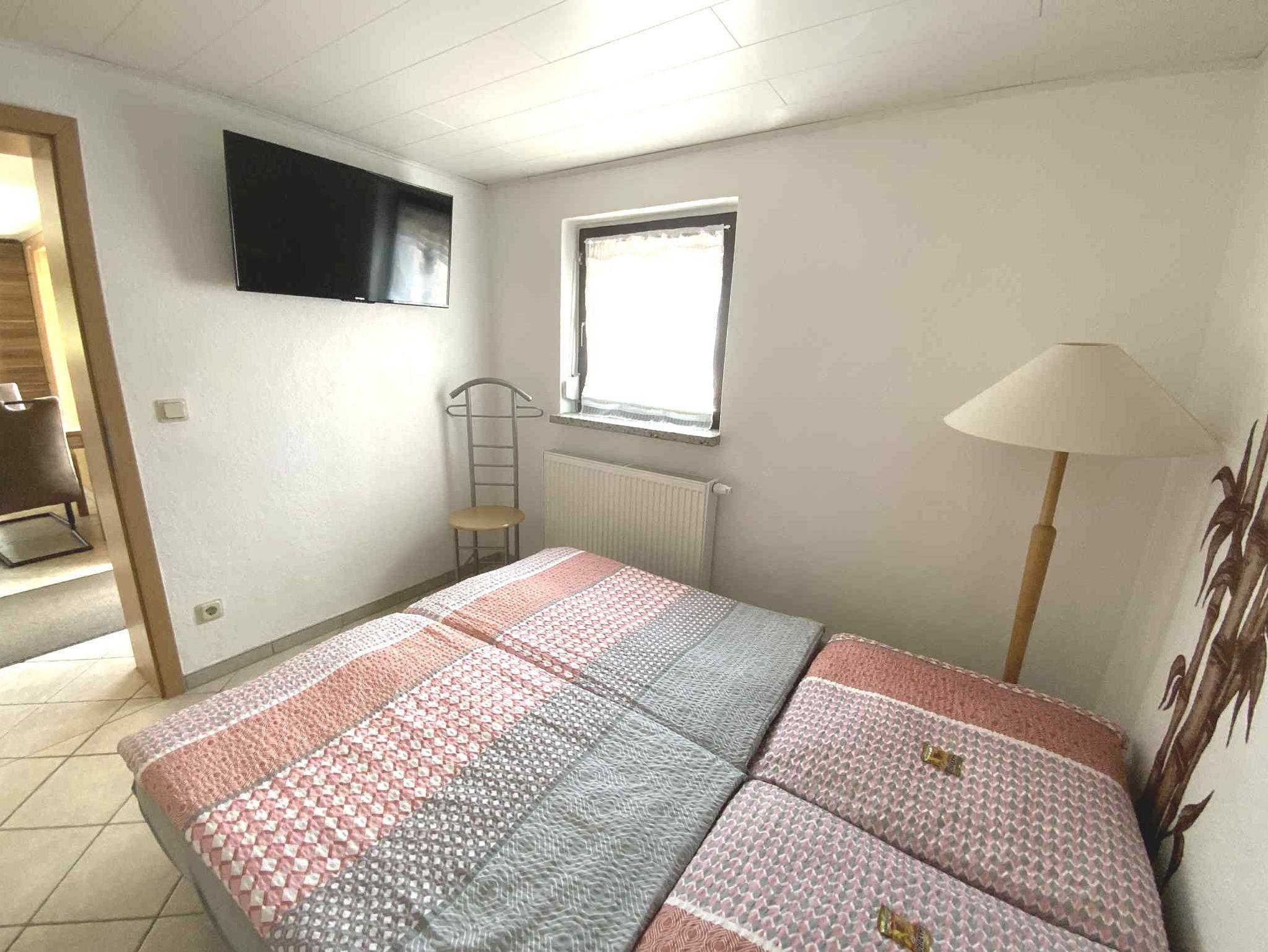 Zusätzlich gibt es 2 Schlafzimmer, 1 Zimmer ist mit Doppelbett ( 1,80 x 2,00 m ) und das andere Zimmer mit einem Bett (1,60 x 2,00 m) und einem LED- Fernseher ausgestattet. Im Bad gibt es WC und Dusche. Vor der Wohnung haben Sie eine offene Terrasse für sonnige Stunden zur Verfügung. Ein PKW- Stellplatz ist auf dem Grundstück ebenfalls vorhanden.