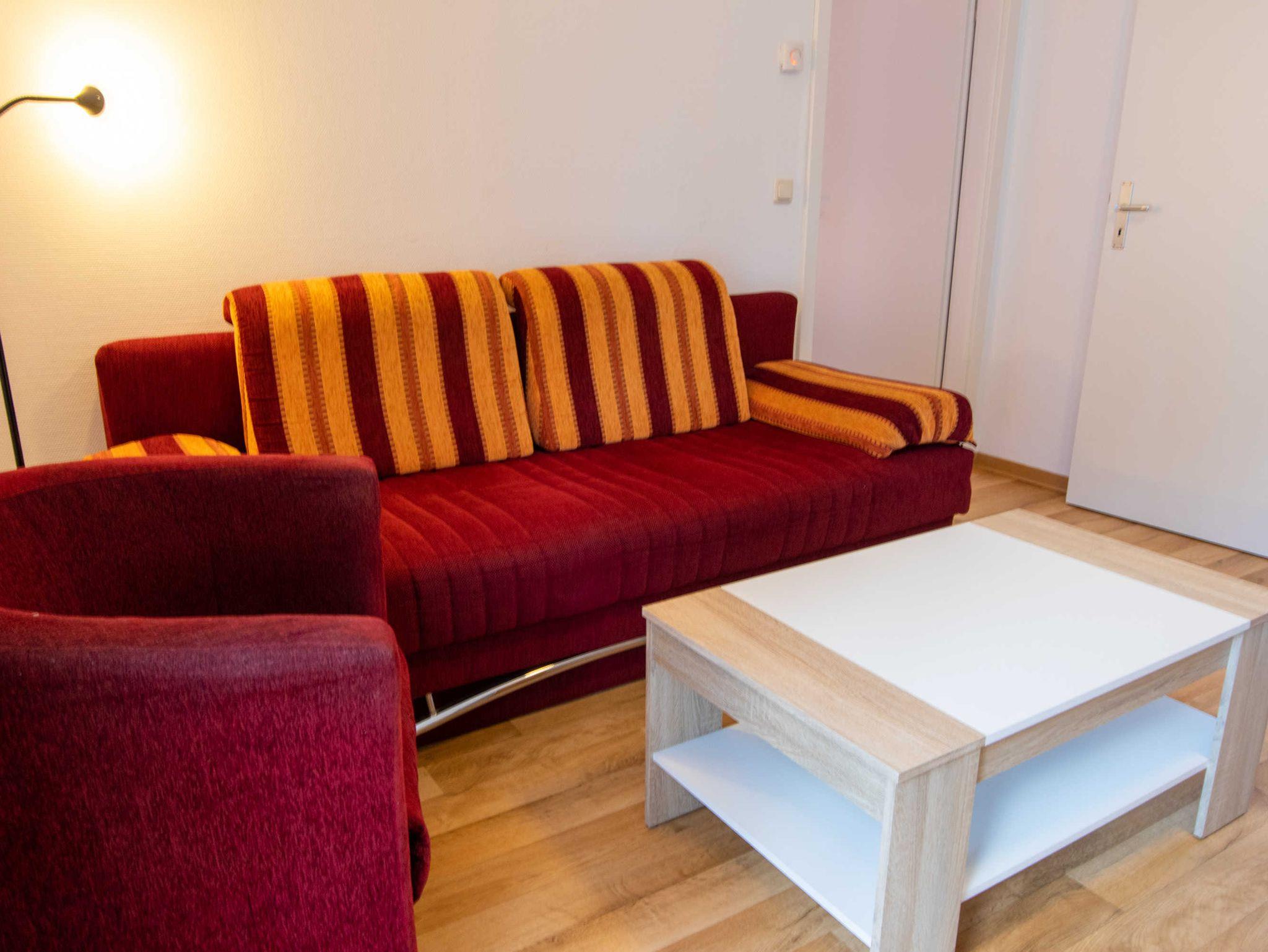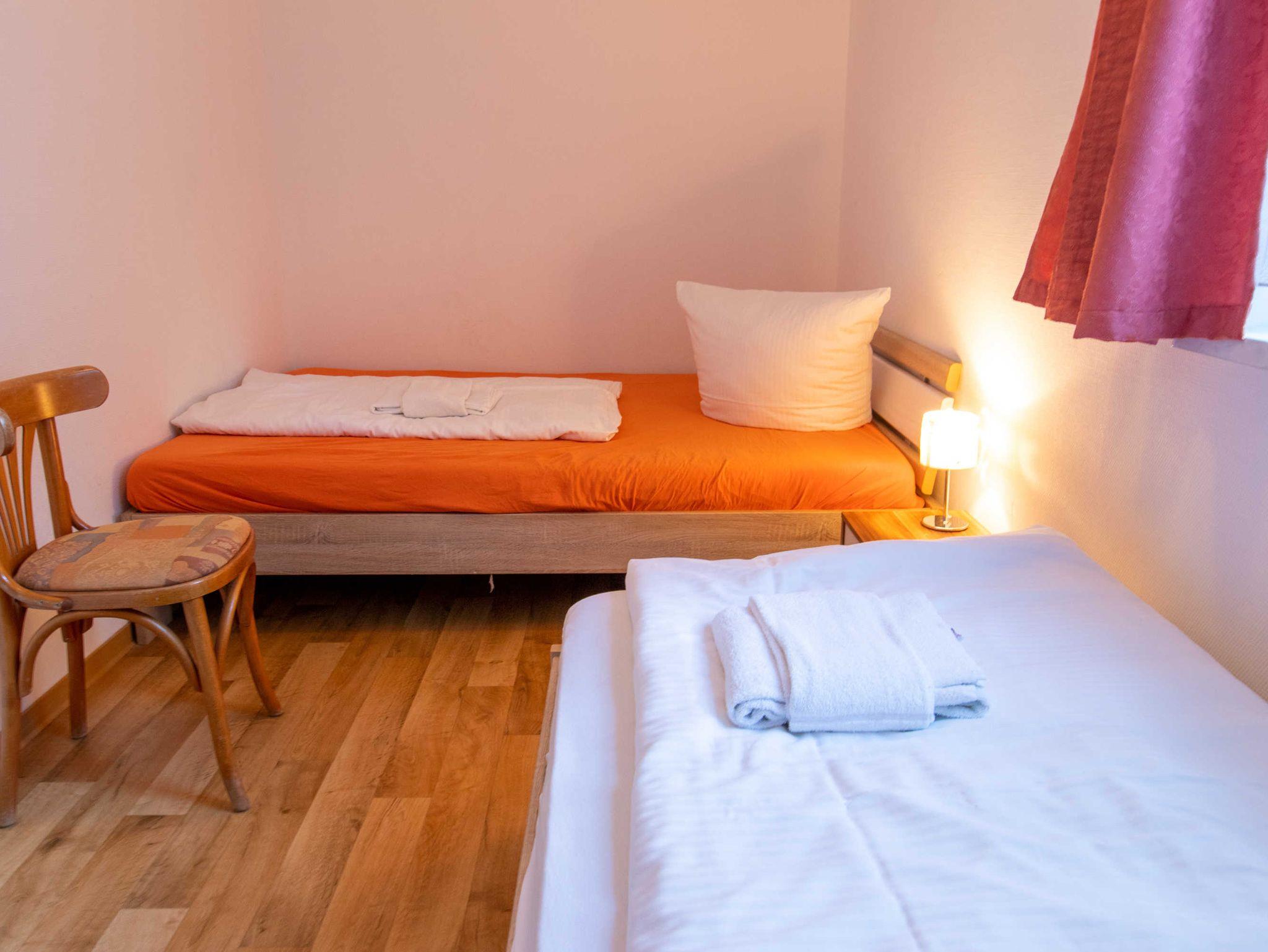 Das Wohnzimmer ist mit einer Schlafcouch (Aufbettung für 2 Personen), TV, einem Esstisch und einer Miniküche mit Kühlschrank und Mikrowelle eingerichtet. Im ersten Schlafzimmer befindet sich ein gemütliches Doppelbett mit Kleiderschrank. Das zweite Schlafzimmer beherbergt zwei Einzelbetten und einen Kleiderschrank. Das freundliche Tageslichtbad hat eine Dusche und ein WC. Zum Entspannen und Sonne tanken lädt die Terrasse ein. Sie ist vom Wohnzimmer aus begehbar.