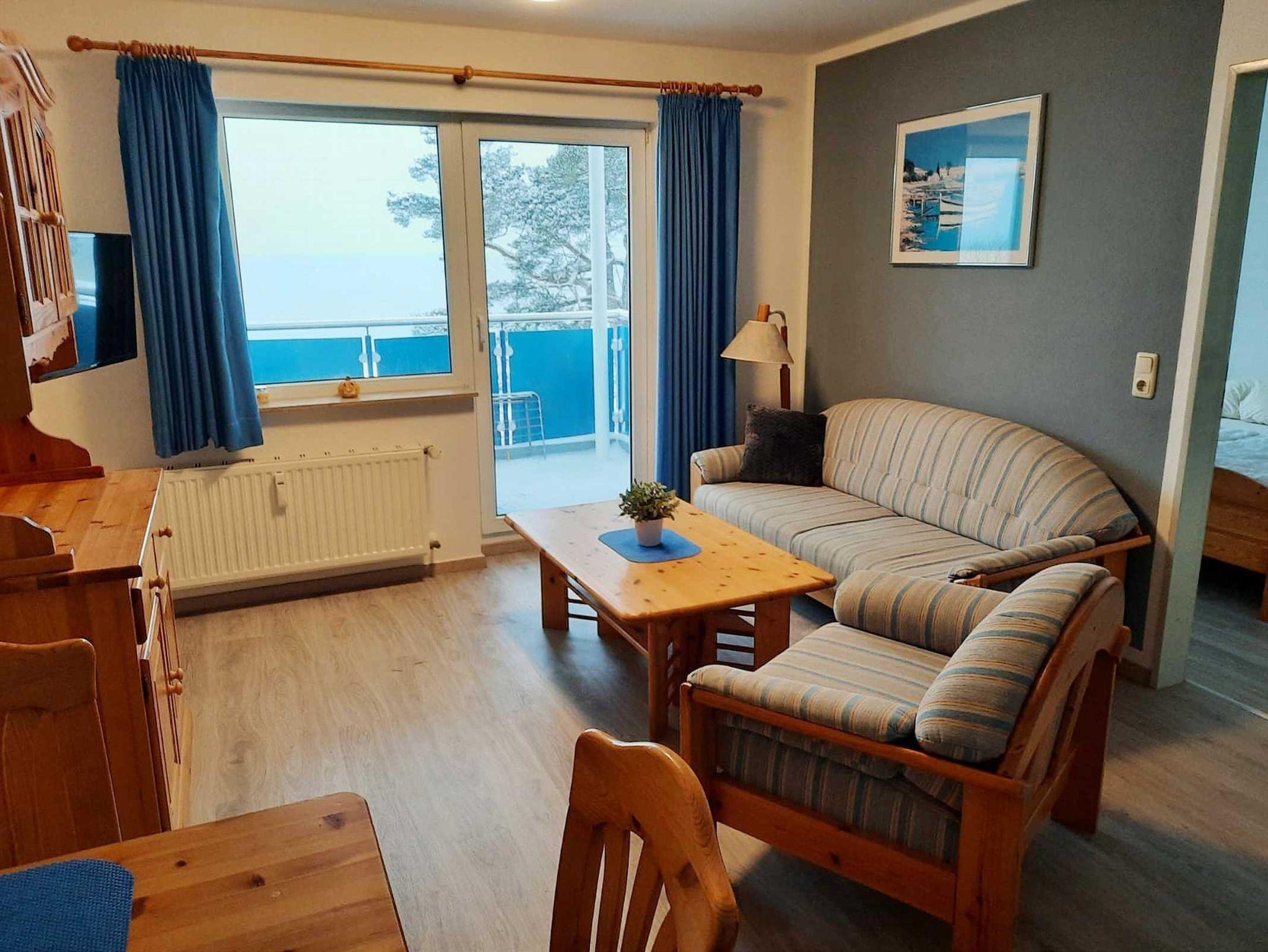 Die Ferienwohnung 10 befindet sich in der Ferienanlage Blaumuschel im 1. Obergeschoss und verfügt über direkten Meerblick. Sie ist geschmackvoll und modern eingerichtet und bietet außerdem einen Balkon.
