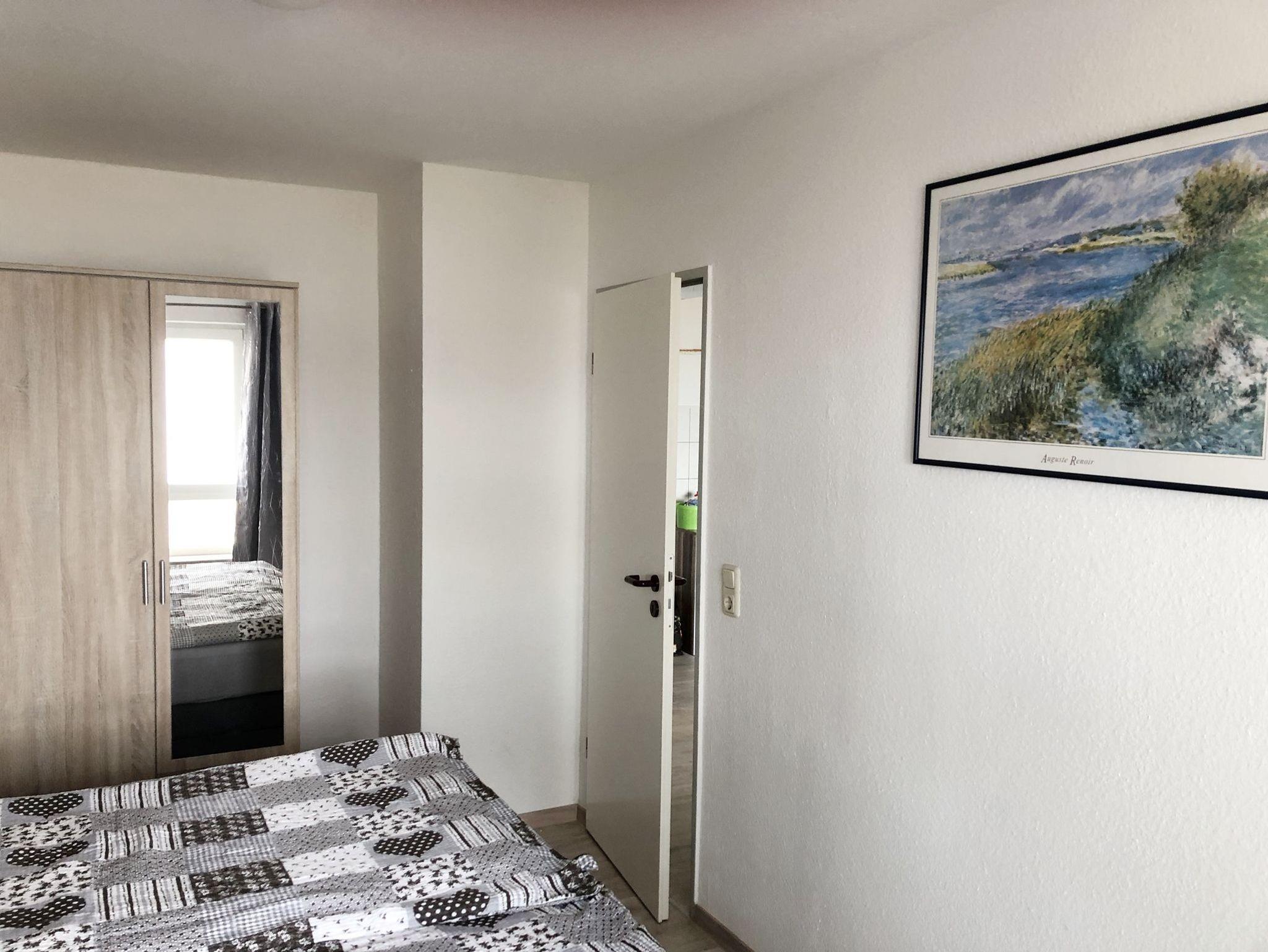 Doppelbett 1,80 x 2,00 m, 1 Kleiderschrank mit Spiegel, Stuhl