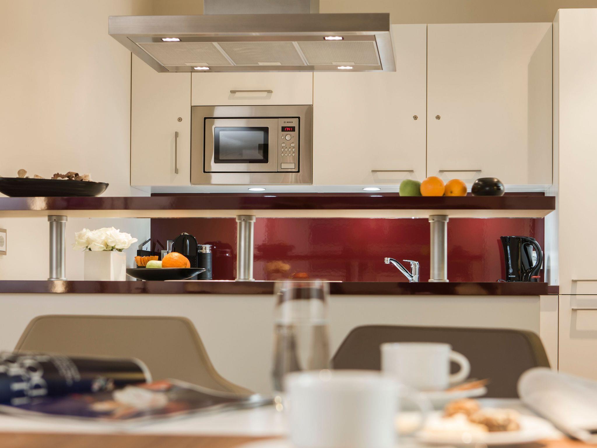 Hier finden Sie eine voll eingerichtete Küche die Ihren Aufenthalt zu einem wahren Erlebnis werden lässt. Genießen Sie den Morgen bei einem frisch zubereiten Frühstück im großen und offenen Essbereich oder auf dem Balkon der sich direkt an das Wohn-Esszimmer anschließt. Aber auch für ein vollendetes Dinner für bis zu 4 Personen bietet das Apartment Platz.