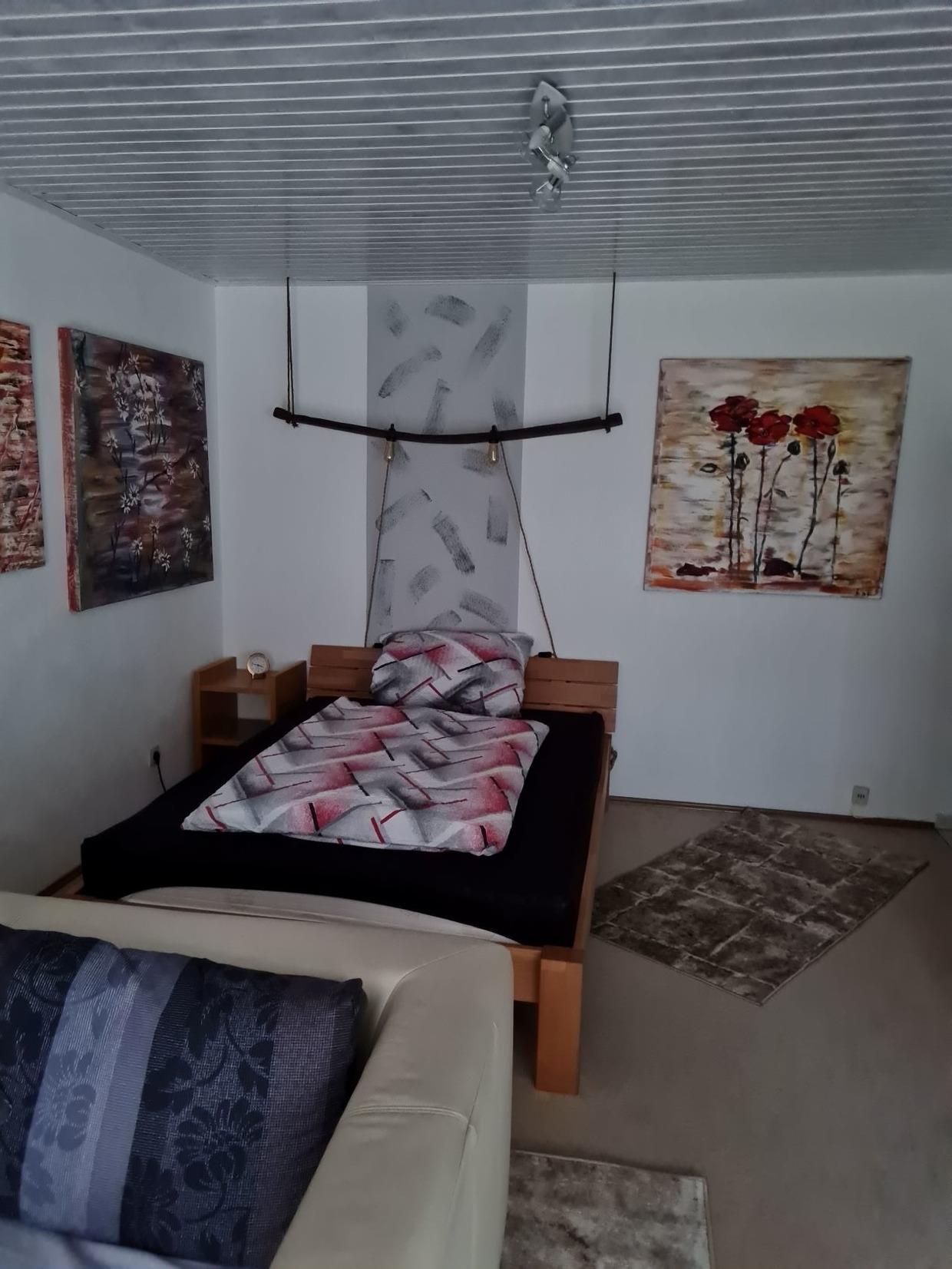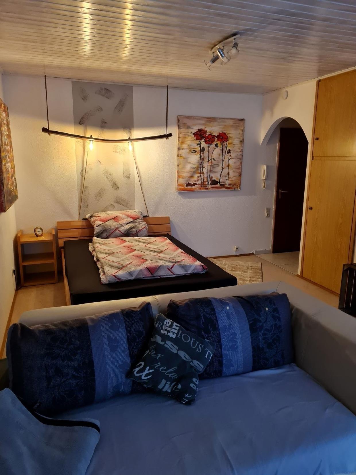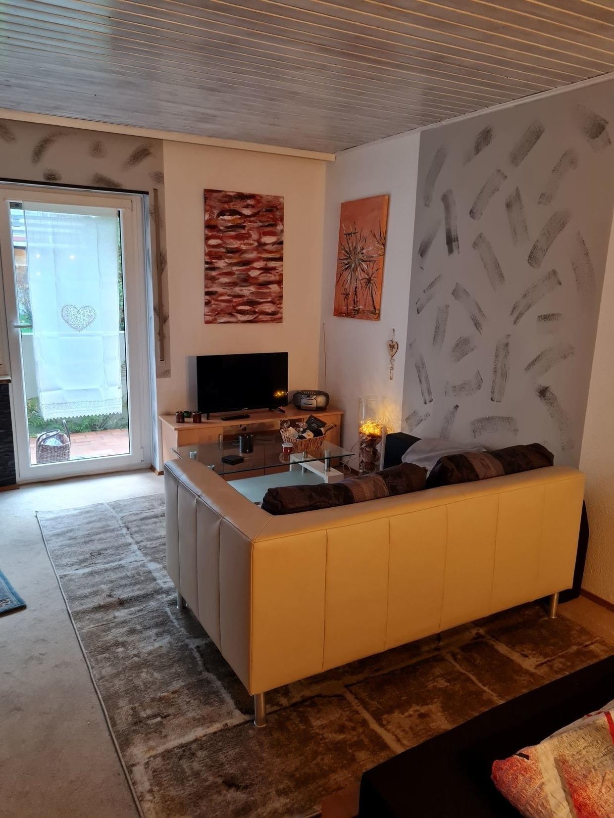 Gemütlich und geschmackvoll zum Wohlfühlen eingerichtete Ein-Zimmer-Ferienwohnung mit Küchenzeile, Essbereich im Erdgeschoss mit großer überdachter Terasse und separatem (verschließbaren ) Zugang von außen zur Terasse.