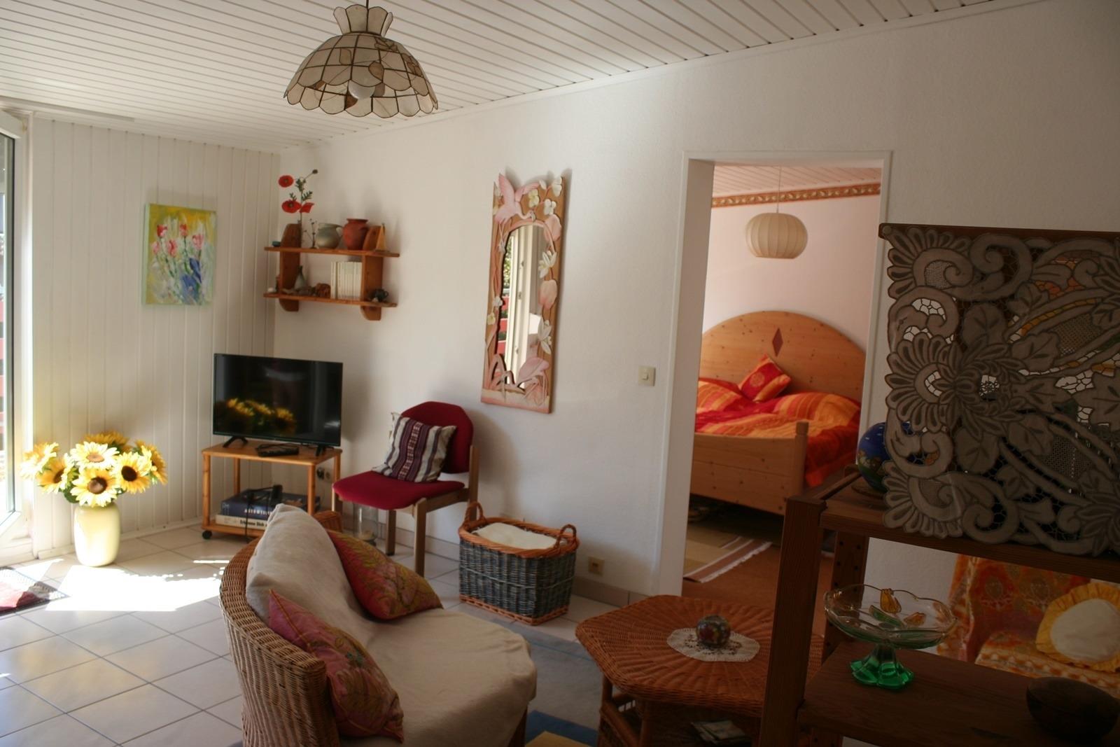 Für gemütliche Abende ist die Ferienwohnung mit einem Fernseher ausgestattet.