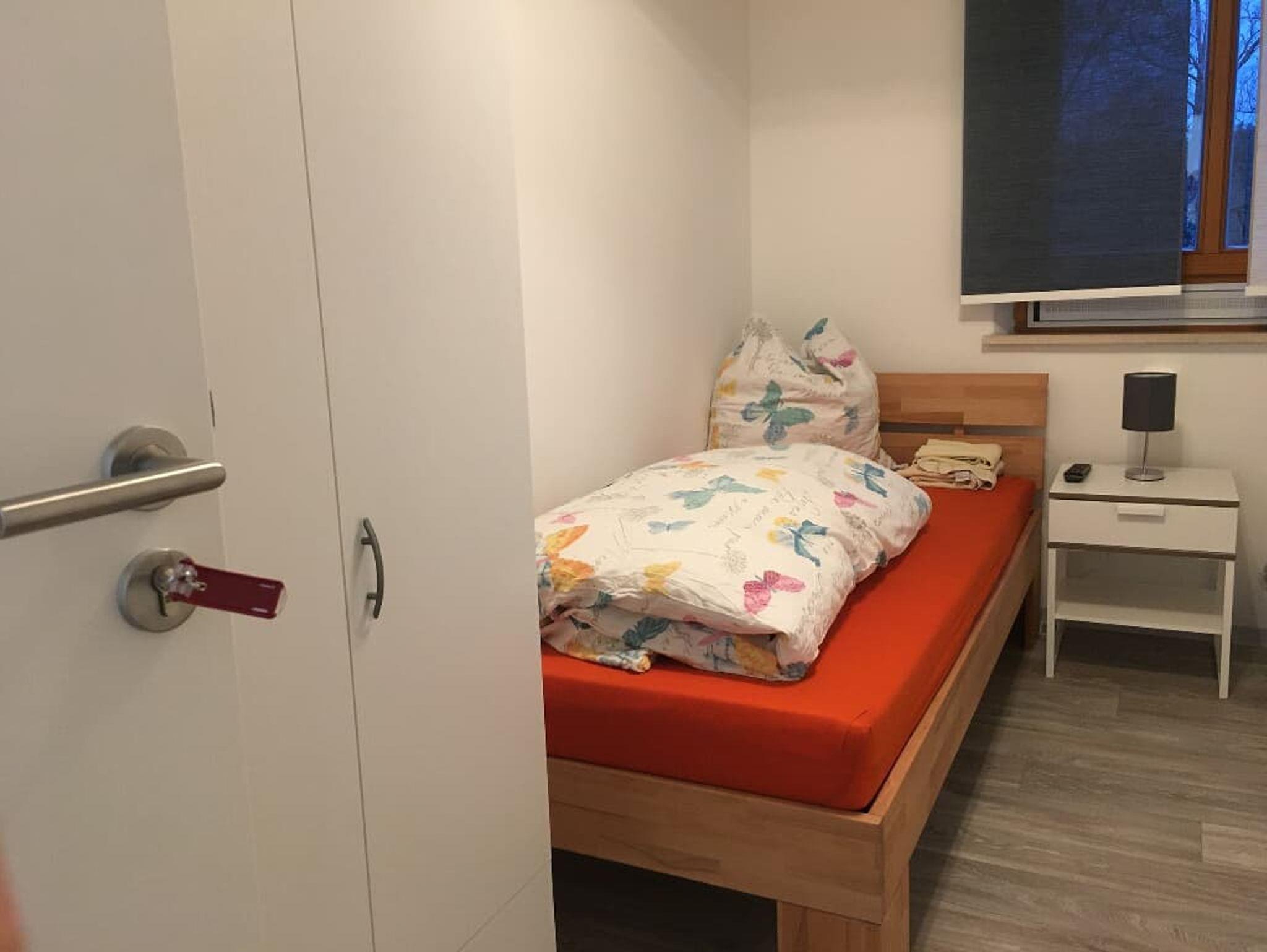 Das Zimmer teilt sich ein Gemeinschaftsbad am Flur je nach Buchung nutzen max. 3 Personen zusammen das Bad.