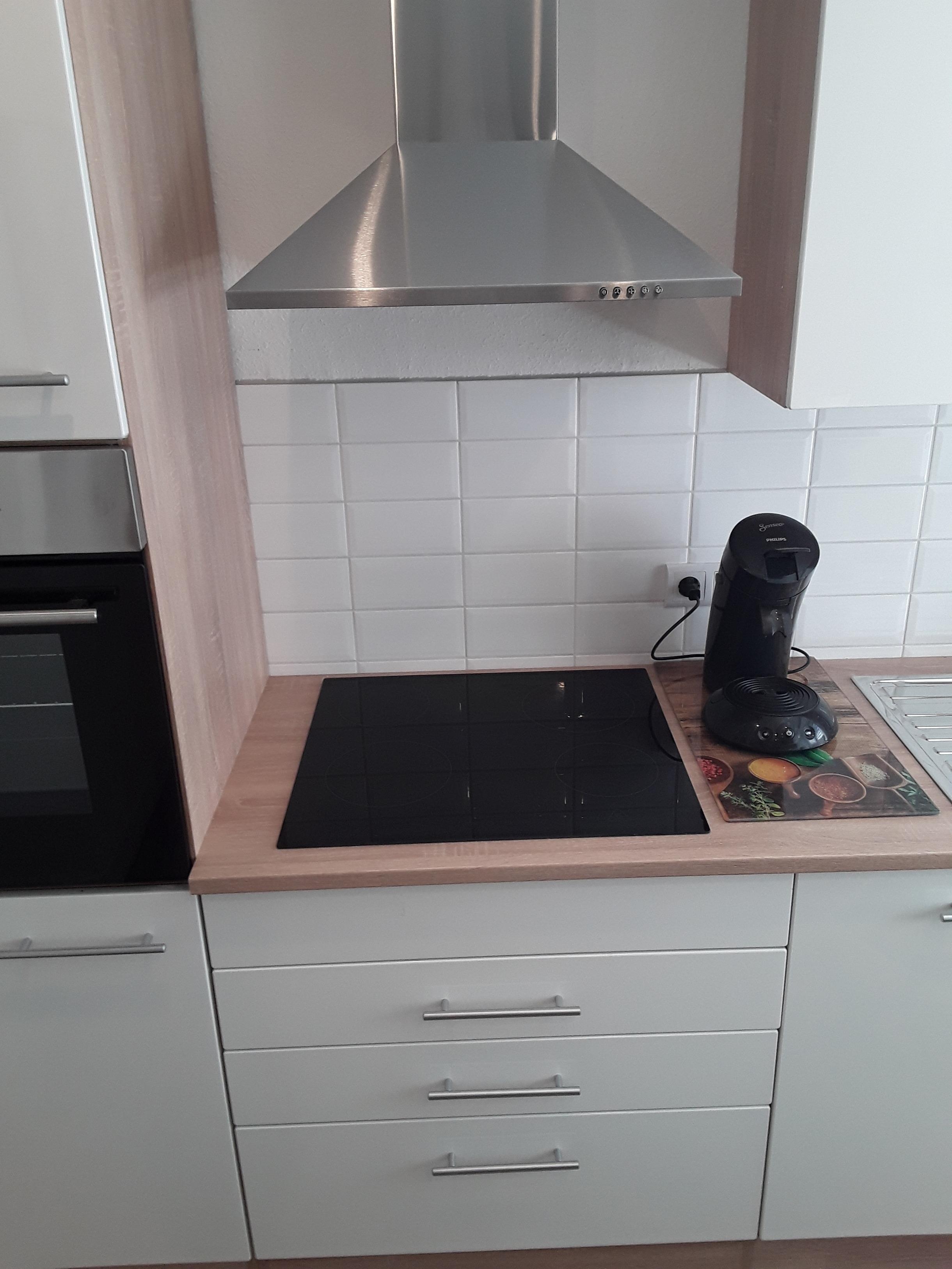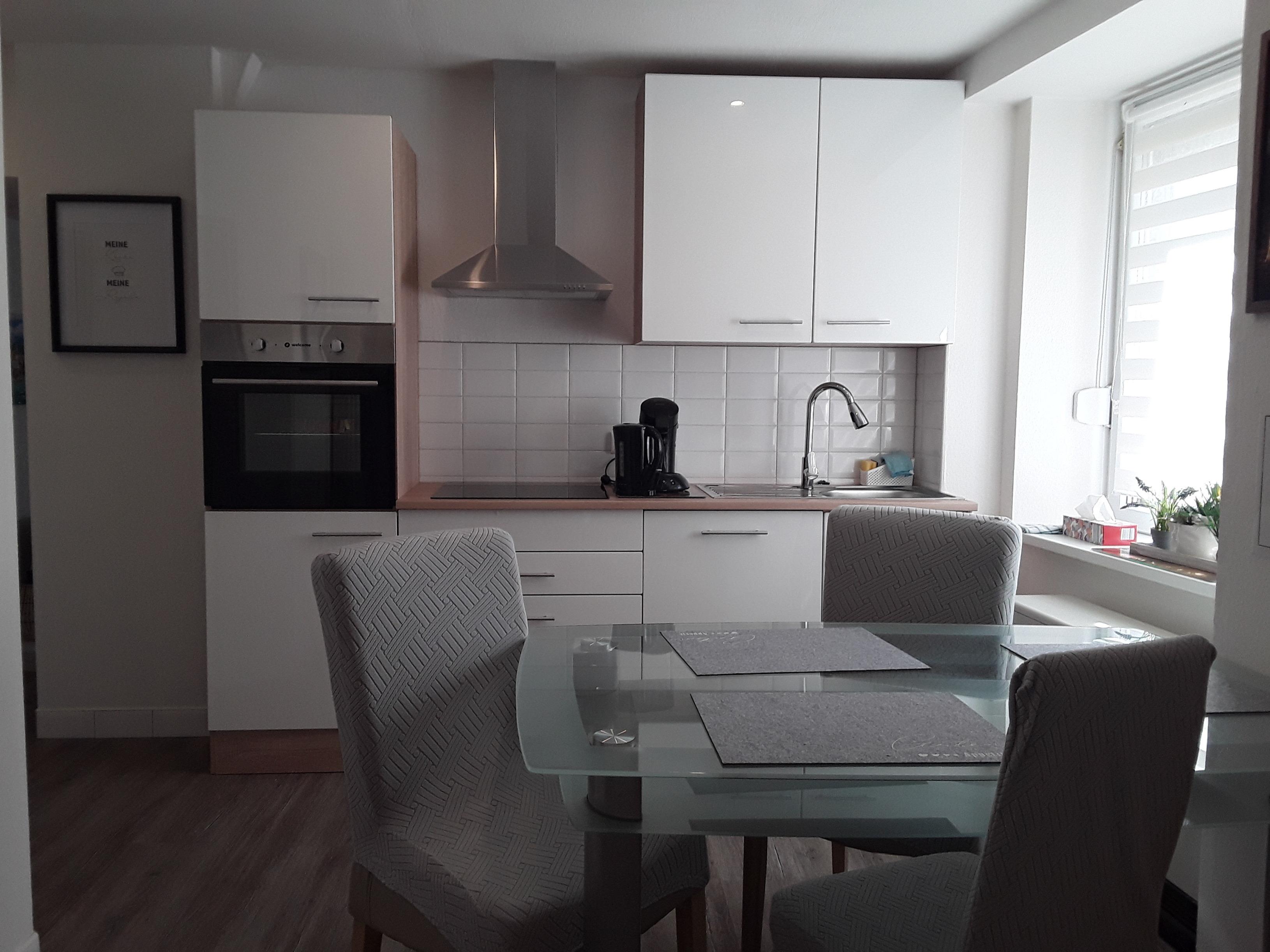 Küche voll ausgestattet mit Herd,Kühlschrank,Gefrierschrank, Spüle,Geschirrspüler sowie Kaffeemaschiene,Wasserkocher,Mikrowelle ,Töpfe,Pfannen und Geschirr,Teller