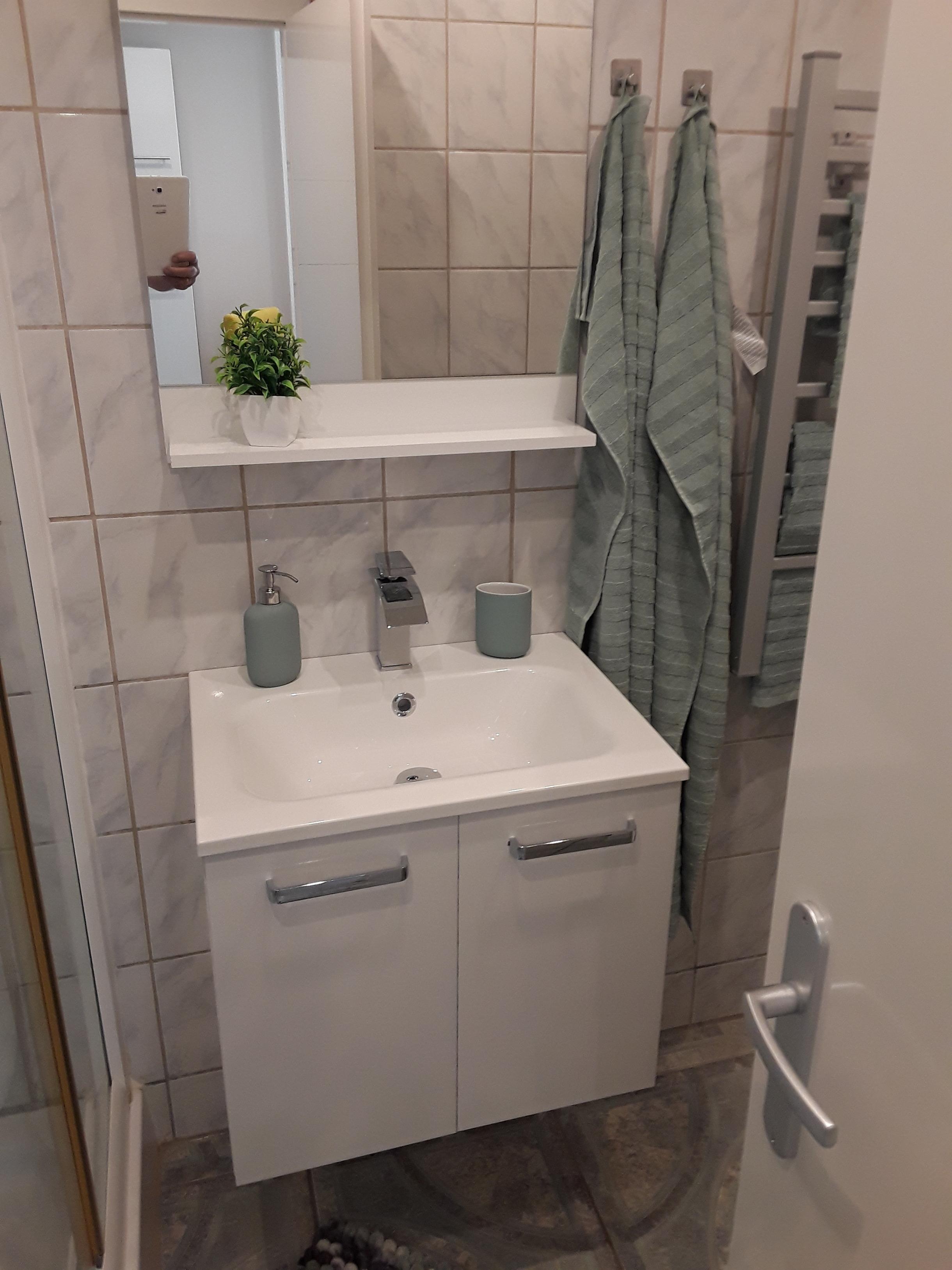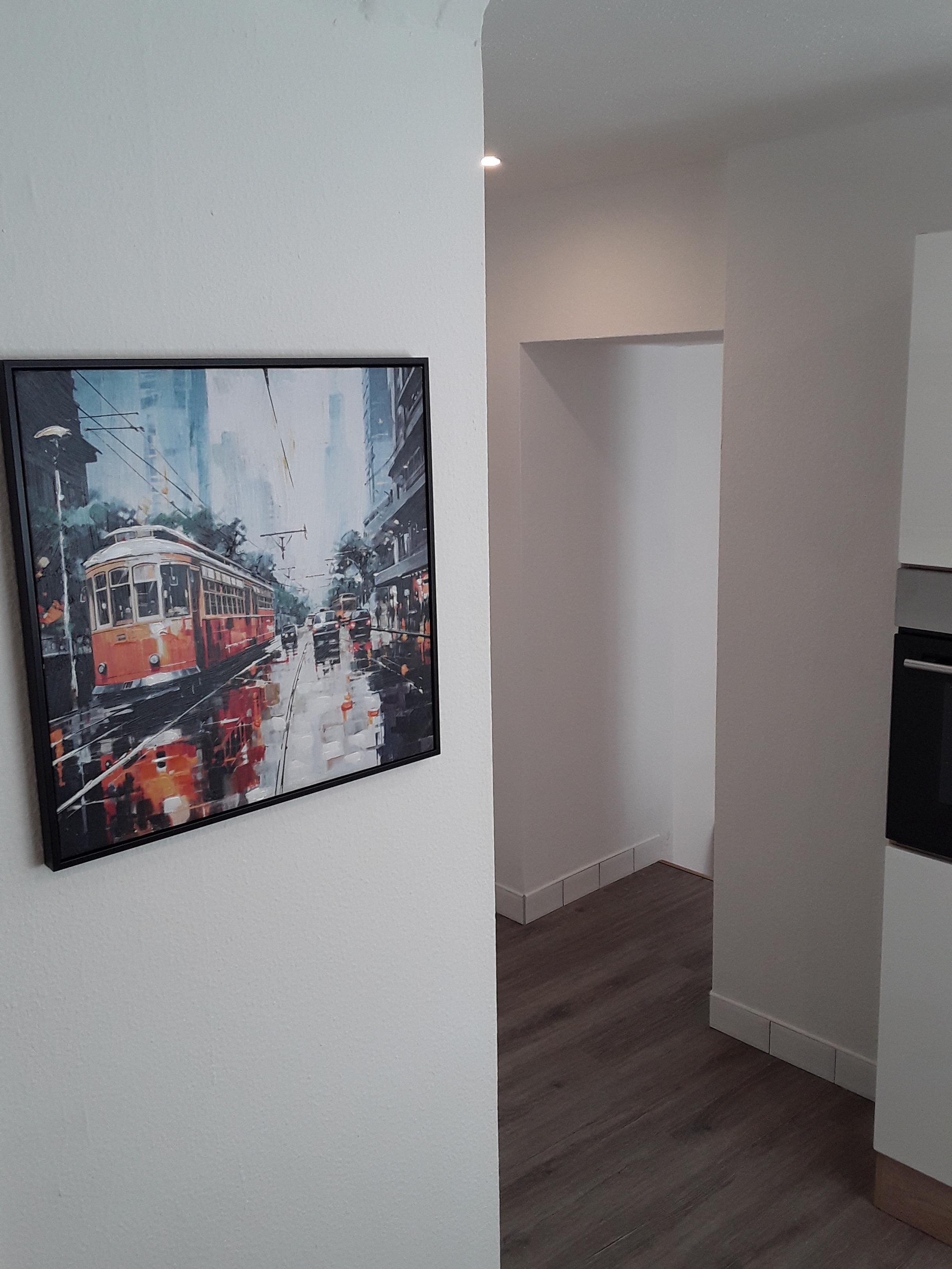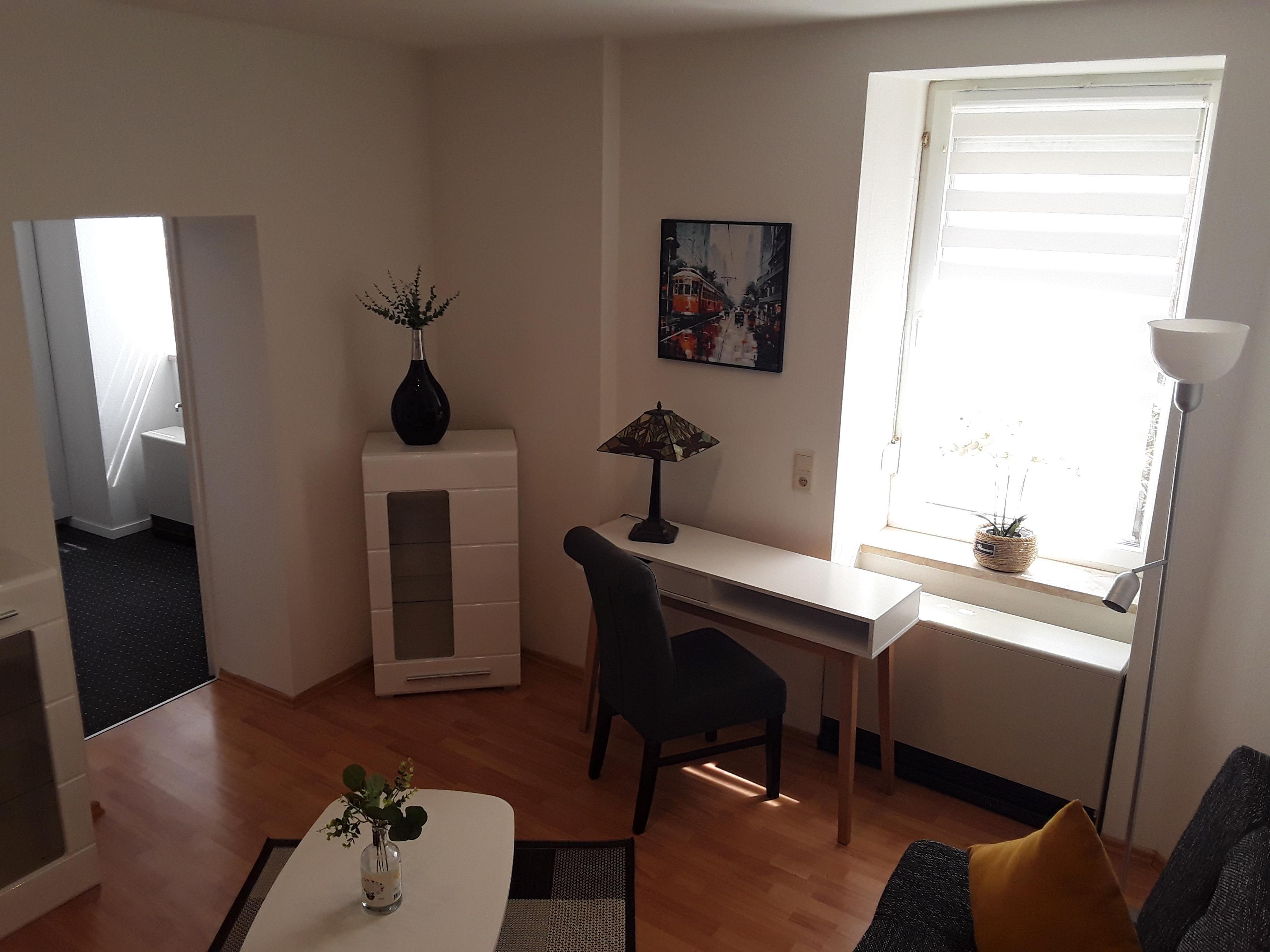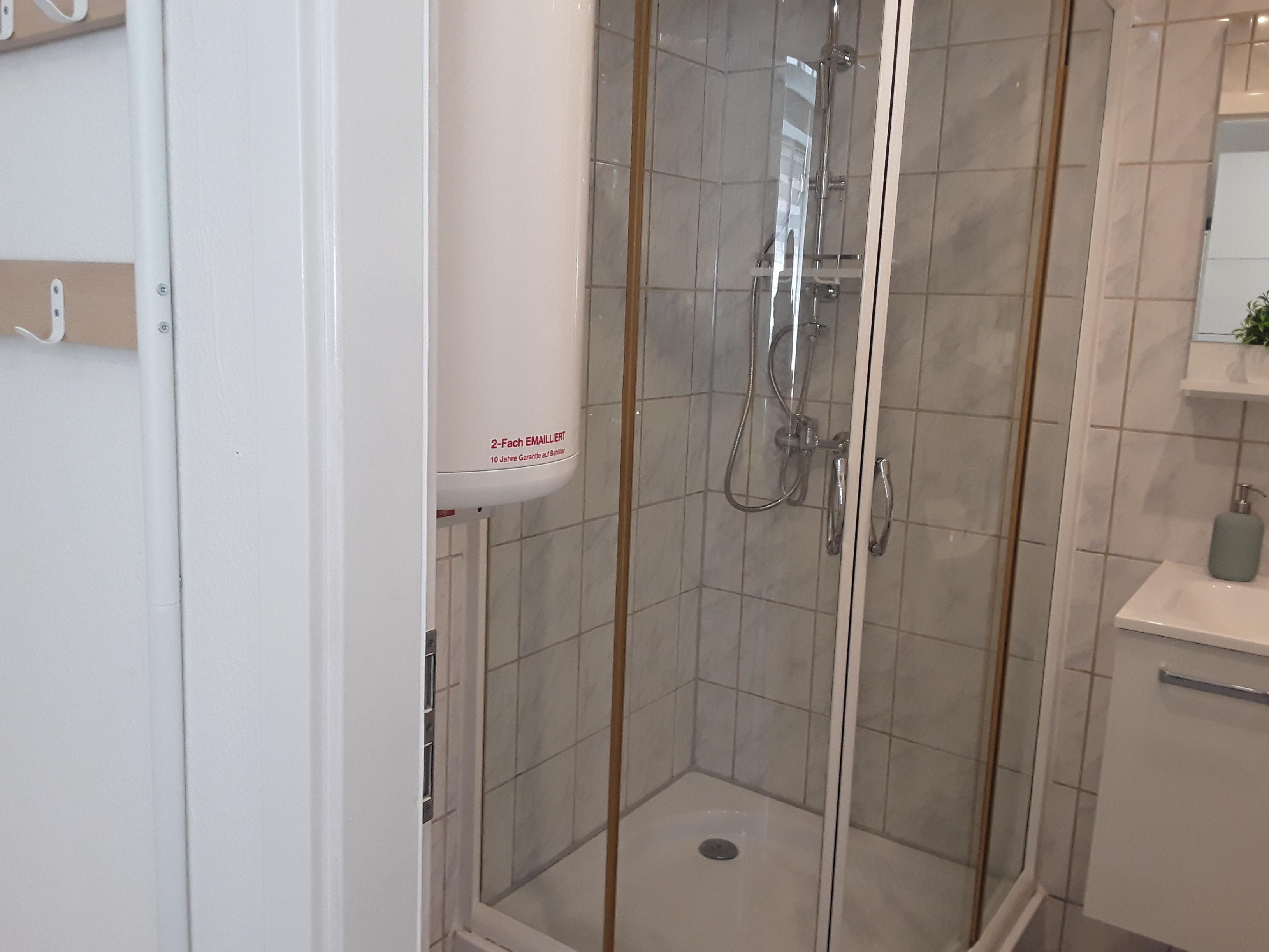 Sie bexteht aus einer Küche,einem Wohnzimmer und einem Schlafzimmer sowie Badezimmer mit WC,Waschtisch und Eckdusche.