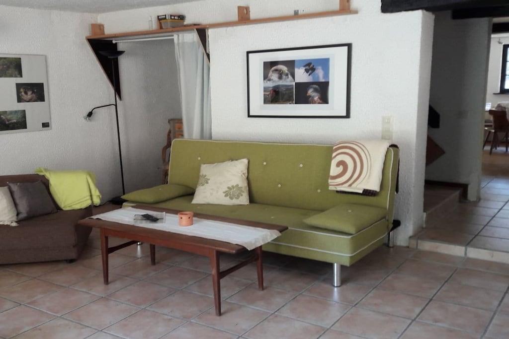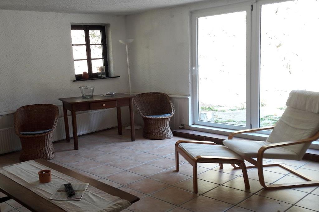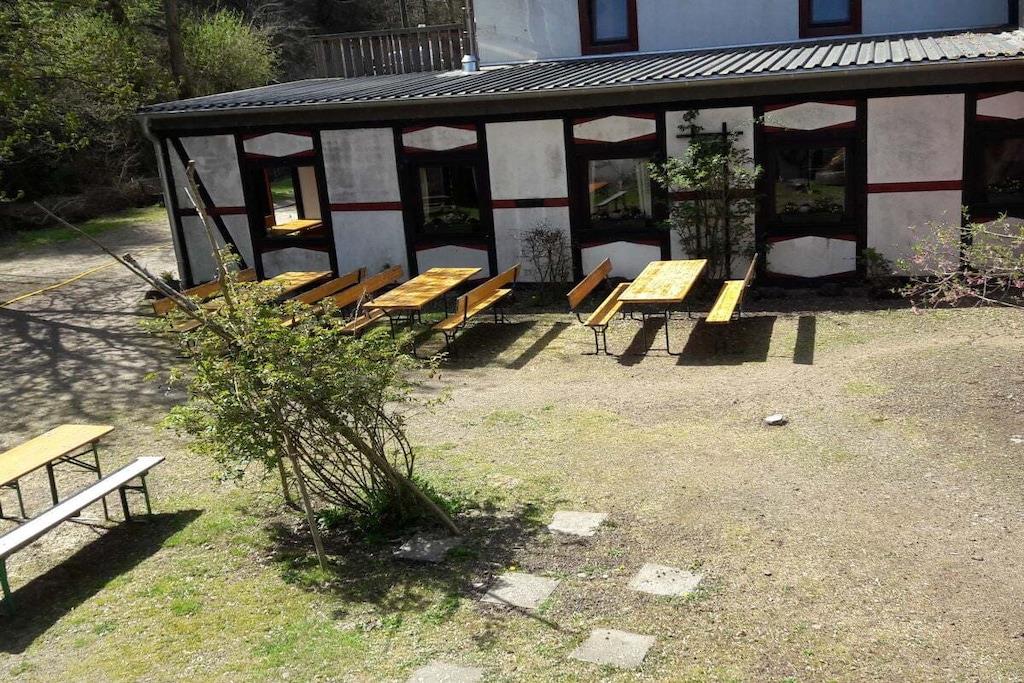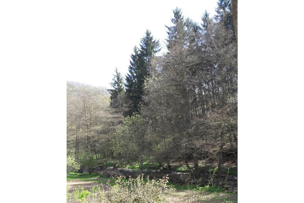 Das Ferienhaus ist das ehemalige Haupthaus der alten Wassermühle. Es liegt direkt am Üßbach, hat eine geräumige Küche mit Essbereich, ein grosses Wohnzimmer mit Terasse, vier Schlafzimmer und zwei Bäder. Die Bäder verfügen über einmal Dusche und einmal eine Badewanne. Für die etwas kälteren Tage sorgen zwei Kaminöfen im Erdgeschoß ebenso wie die rustikale Einrichtung für Gemütlichkeit. Ideal für Großfamilien, Monteuere oder auch Ferien mit Freunden geeignet. Bitte beachten: kaum Handyempfang und kein Internet direkt im Haus! Die Anfahrt ist nur über einen 1 km langen Waldweg möglich und nicht für tierfergelegte Fahrzeuge geeignet!!