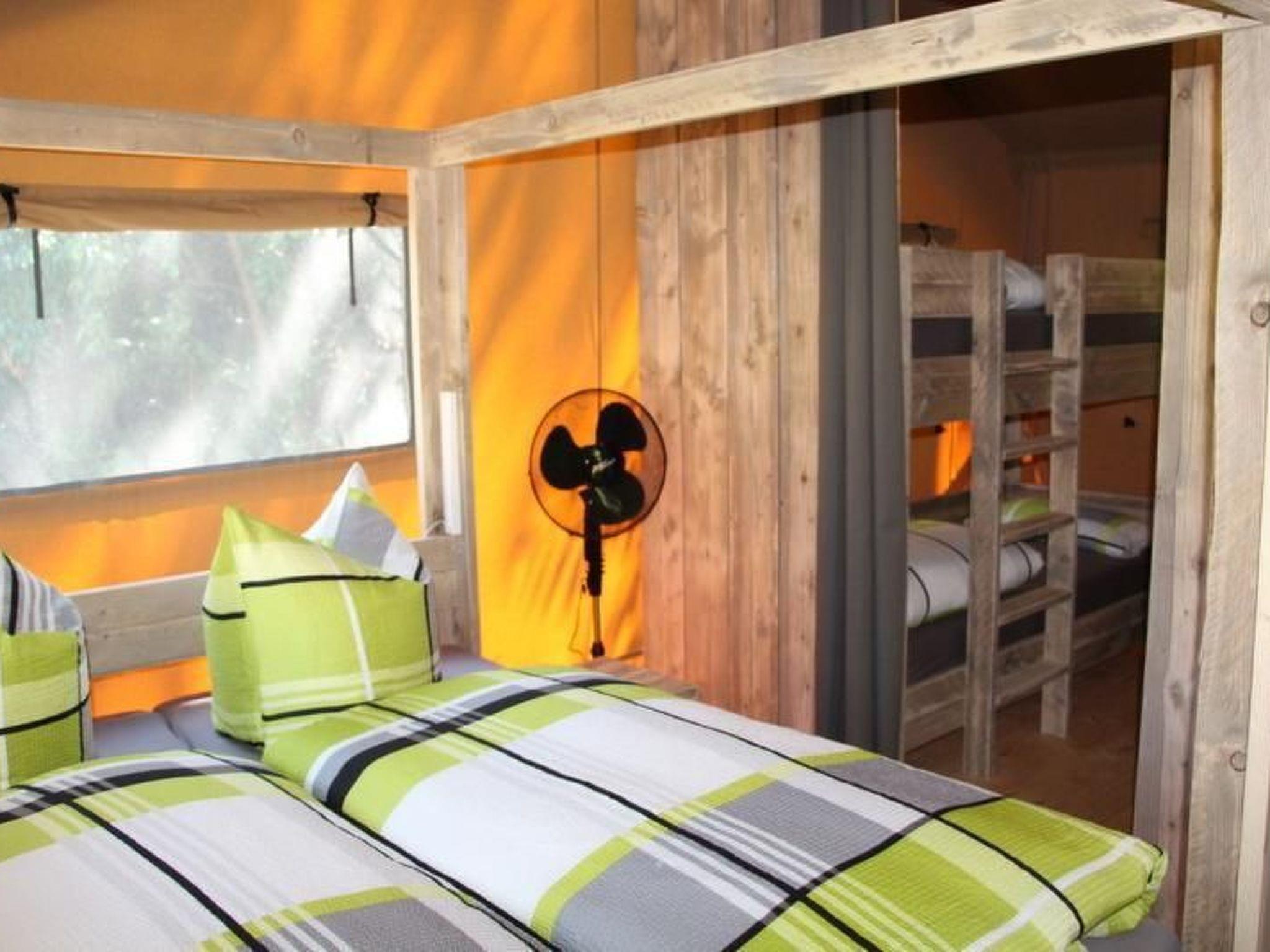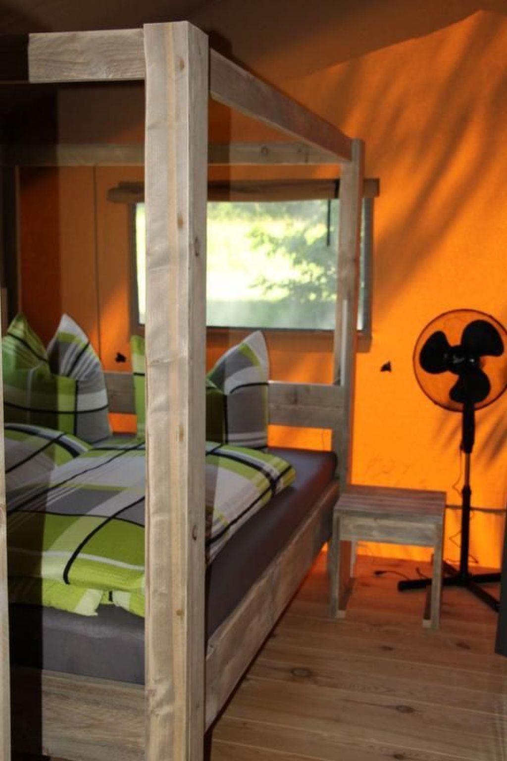 Location: The climatic health resort and state-recognised resort of Lychen is located in the Uckermark and borders the Feldberg lake district and the Havel-Wasser-Strasse. Lychen is situated between extensive forests and in the middle of an attractive lake district with access to the public waterway to the Havel waters, the "Mecklenburg Brandenburg Lake District", as well as the North and Baltic Seas. Situated on the north-western edge of the Uckermark, the small border town to Mecklenburg-Vorpommern has become a popular holiday resort. Lychen rightly has the nickname "Märkisches Interlaken", which alludes to the town's exposed island location at the Lychener Seenkreuz and the countless bodies of water in the surrounding area. Lychen rightly bears the nickname "climatic health resort", as critics can still measure and enjoy inhaling the clean air today. Situated in the middle of this charming water- and forest-rich environment, Lychen is an ideal starting point for hiking, mushroom hunting, swimming, cycling tours and boat excursions. The Woblitz river and the Himmelpforter lock provide connections to the Stolpsee lake and the Havel waterway. To the south of the town is an extensive wooded area that extends far beyond the Havel and Bredereiche. This area, like the northern wide forest area up to Feldberg, is intended for nature conservation. The medieval town lies between Templin or Prenzlau and Fürstenberg or Feldberg in Mecklenburg-Western Pomerania. Lychen is an up-and-coming spa and tourist town with no industry, but is open to crafts and service providers. Enterprises that do not harm the natural resources, but are dependent on them, such as the Flöser, the Draisienenlinie are supported by the city fathers! Lychen is also connected to the public network of regular bus routes.tent lodges at the lido Großer Lychensee.the tent lodges fulfil dreams! Fully equipped with kitchen, dining table, shower and cosy lounge furniture. On the terrace you can sit in the middle of nature - and almost smell the vastness of Africa.equipment: two sleeping areas, 1 double bed, 1 bunk bed and a single bed, so the tent lodge offers space for up to 5 people, Bed linen available, kitchen and household utensils, 2-zone hob, coffee machine, fridge, microwave, toaster, kettle, bathroom with shower, WC & washbasin, living area with dining table, seating area and chairs, TV, radio, satellite system, terrace, garden, lounge furniture, swimming in the lido in the immediate vicinity, minimum stay 3 days in the low seasons and minimum stay 7 days in the high seasonShort descriptionOther : Non-smoking houseShort description 1Number of kitchens : 1SurroundingsLeisure facilities : Boat hire, Bicycle hireSports facilities in the area : Fishing, Canoeing, Cycling, Horse riding, RowingGarden and outdoor facilitiesRecreational facilities at the property : PlaygroundGarden equipment : Garden furniture available, Barbecue