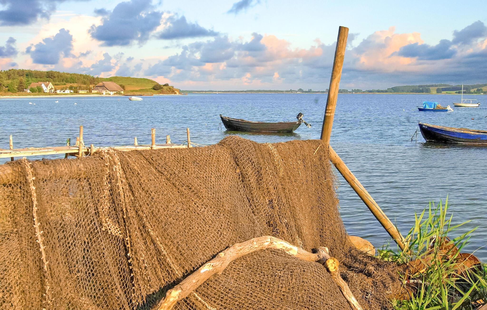 Kun ca. 50 m fra Greifswalder Bodden ligger to moderne ferielejligheder til hver to personer på en velholdt gård i et historisk hus. Restauranter, fiskemuligheder, bådudlejning, en legeplads og en ridestald ligger i umiddelbar nærhed, og den smukke Østersøstrand Lobbe ligger kun få skridt væk (ca. 4 km væk). Cykeludlejning kan arrangeres gennem ejeren. (På gården er der også et separat stråtagsferiehus med tre ferielejligheder til to til fire personer, DZV537, DZV538 og DZV539). De cirka 40 kvadratmeter store ikke-ryger lejligheder ligger på første sal og kan nås via en fælles trappe. De har stor stue med polstrede møbler, fladskærms-tv, køleskab og kaffemaskine, stort soveværelse og badeværelse med brus/toilet. Derudover har gæsterne adgang til en lounge i stueetagen (som også fungerer som morgenmadslokale), en fælles terrasse med havemøbler og en grill, en parkeringsplads, en cykelkælder og gratis trådløst internet. Rygning er tilladt udendørs. Den samlede pris inkluderer morgenmad, slutrengøring, sengelinned, håndklæder samt vand- og energiforbrug. Betales på stedet: turistskat. Kæledyr er ikke tilladt. Alt Reddevitz er en tidligere fiskerby på Tysklands største ø, Rügen, og ligger på halvøen Mönchgut, på et cirka 5 km langt næs i biosfærereservatet Sydøst Rügen, direkte på Rügisches Bodden, en forlængelse af Greifswalder Bodden. Bademuligheder findes allerede her på den flade naturstrand eller på den fine sandede Østersøstrand i Lobbe Stedet byder på de bedste betingelser for cykling, vandreture, fiskeri (fiskekort fås direkte i landsbyen), ridning og svømning og er kendt for sin lille kagefabrik i cafeen “Moccavino”. De velkendte Østersøferiesteder Baabe, Sellin og Binz ligger omkring 6 km, 8 km og 18 km væk.