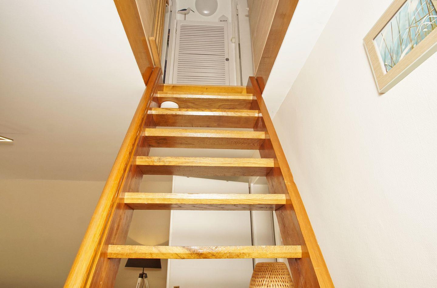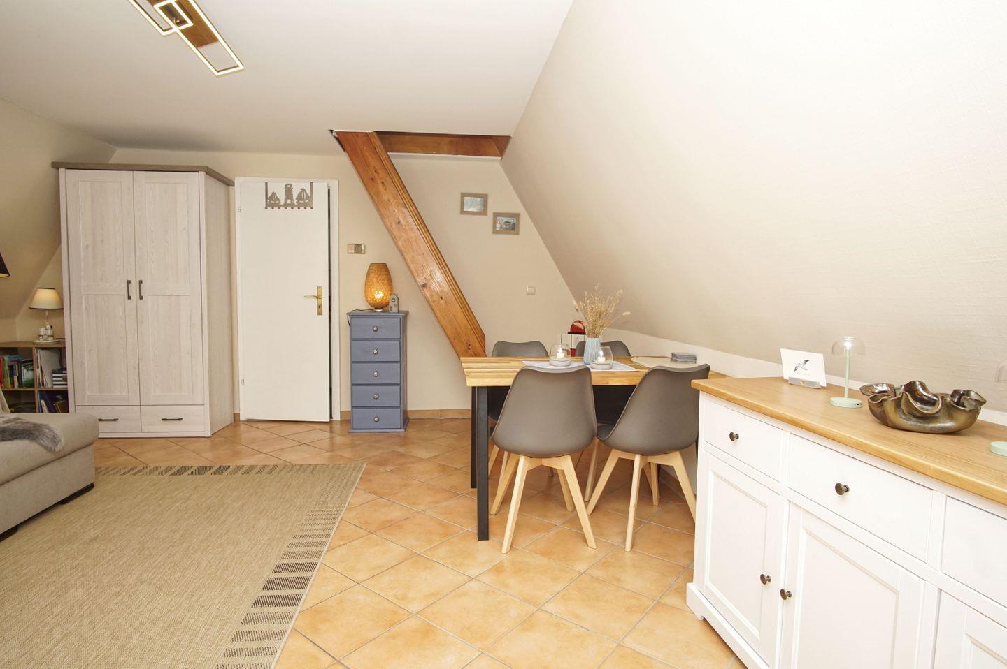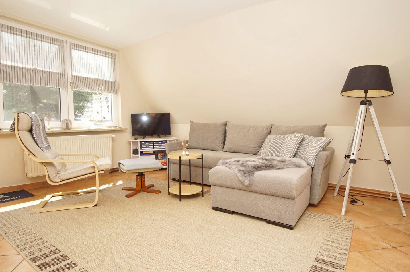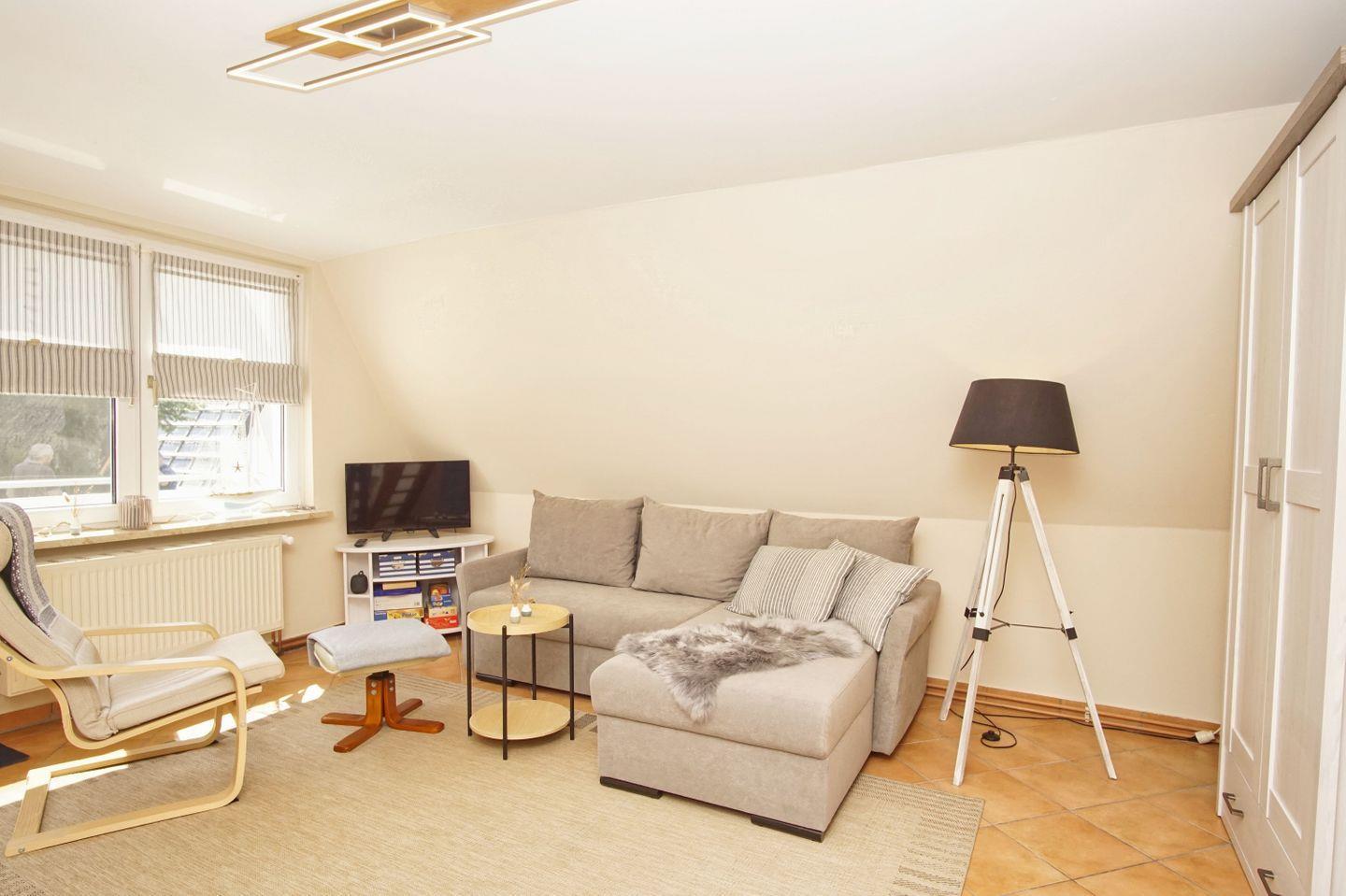 SCHLAFEN // ein Schlafzimmer mit zwei Einzelbetten, ein Schlafzimmer mit einem Einzelbett, (Schlafzimmer sind über eine steile Treppe zu erreichen, Dachschrägen in den Schlafzimmern), Schlafcouch im Wohnzimmer ++